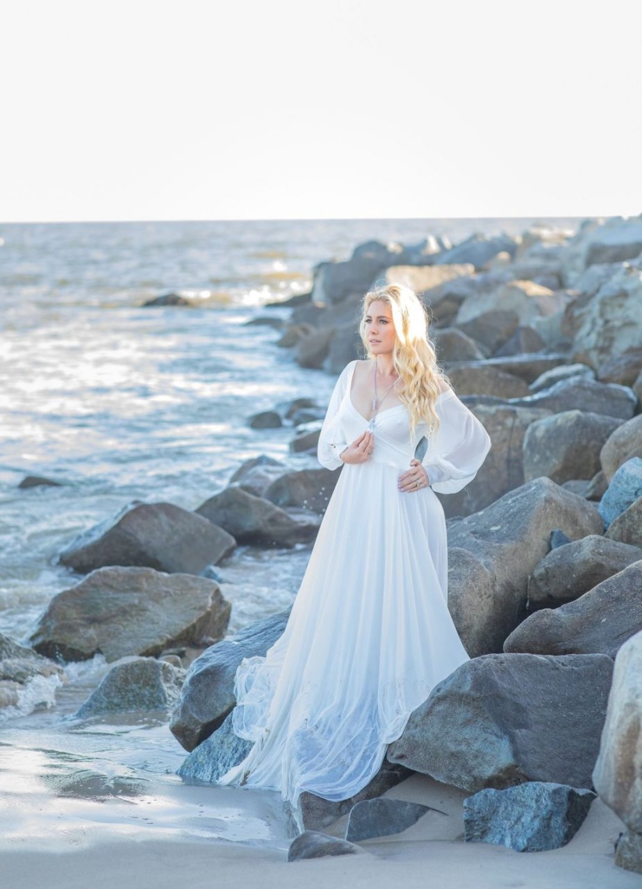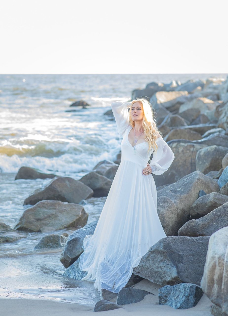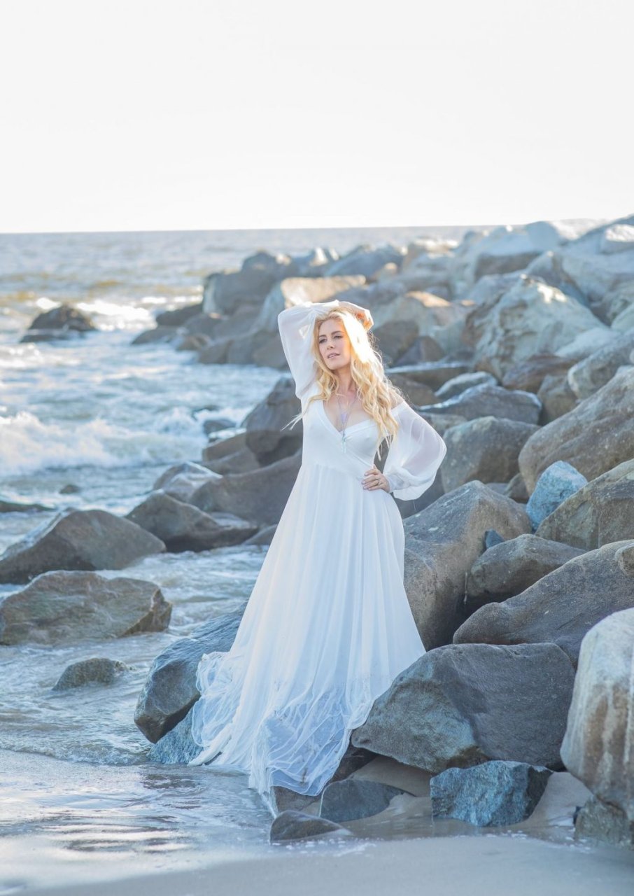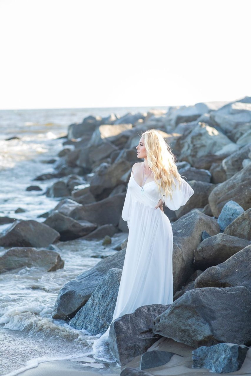 Este podría ser el conjunto de fotos más aburrido de todo este sitio. Apenas una foto de escote. Al menos podría saltar al agua y mojar el vestido para que se pegara. 0/10