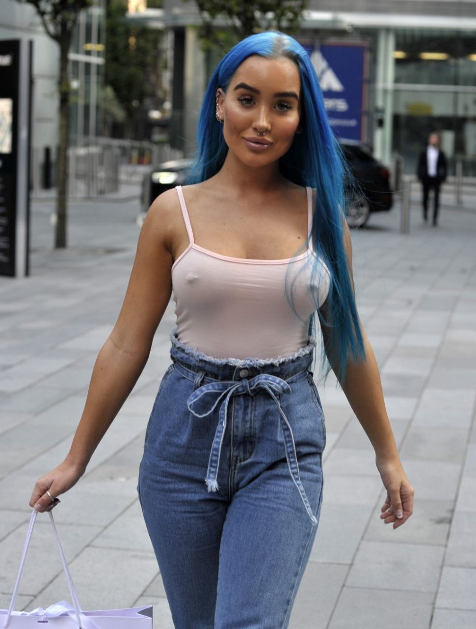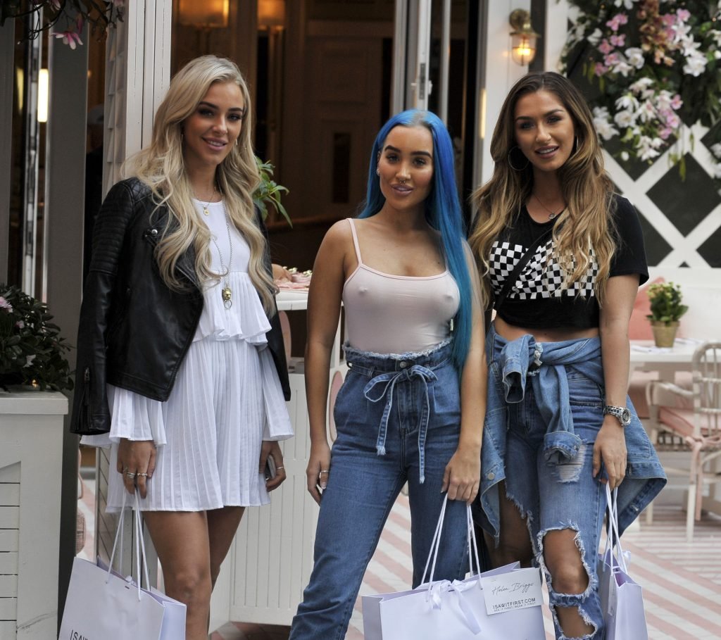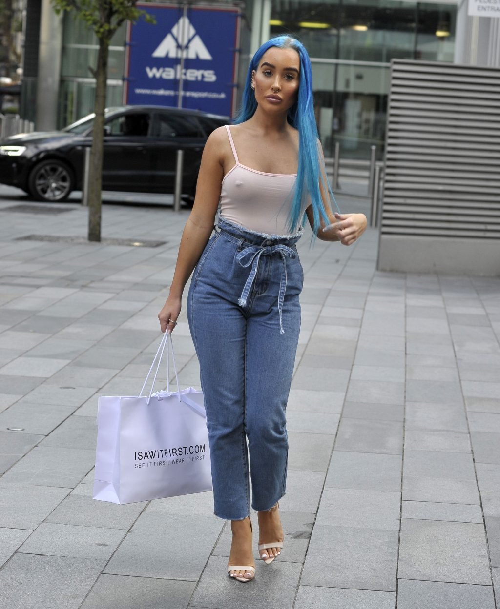 ‘Ex on the Beach’ estrella Helen Briggs muestra sus pezones con una camiseta transparente mientras es fotografiada llegando a Sunset by Austrlasia con Taylor y Darby Ward en Manchester, 09/06/2018.