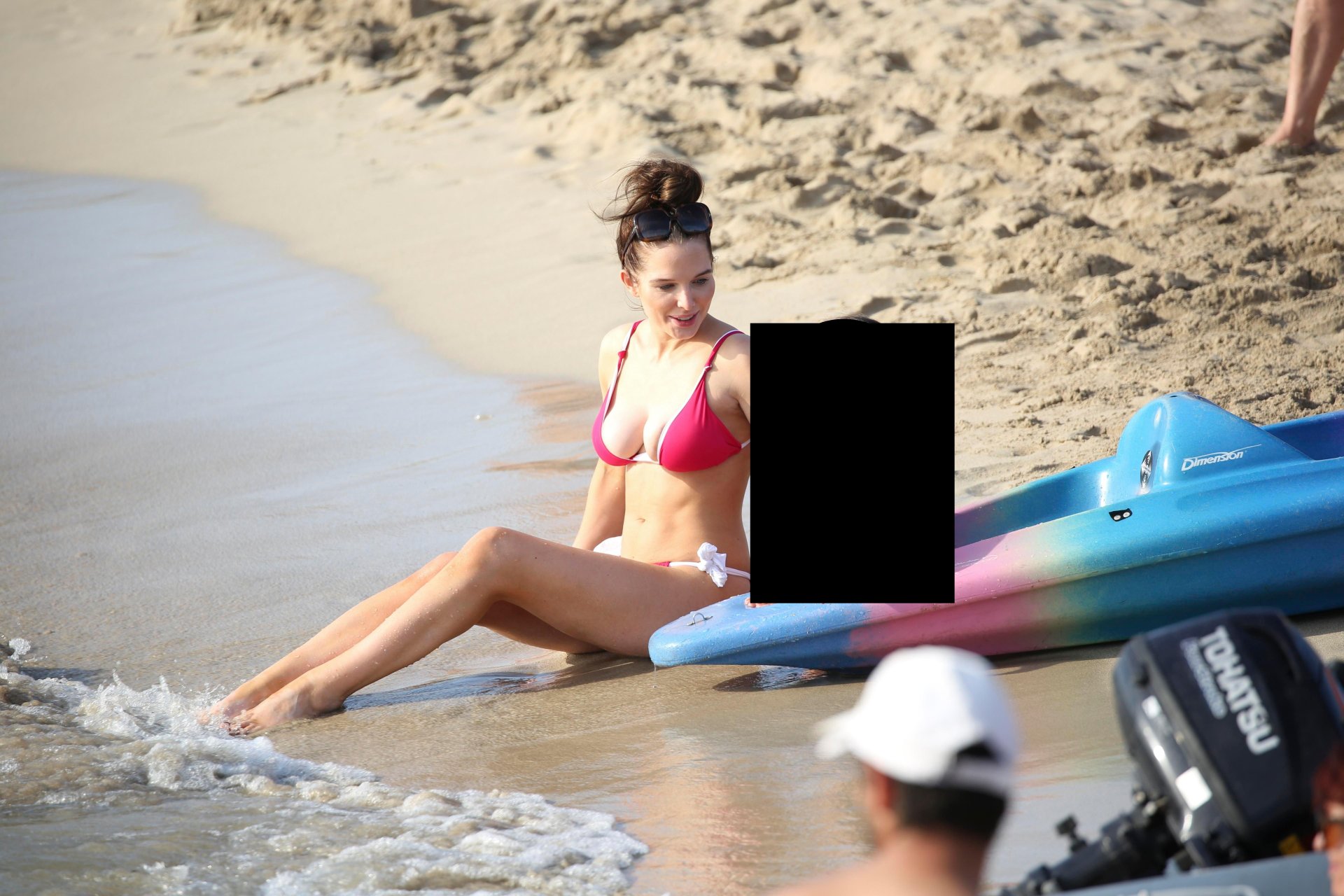 Helen Flanagan fue vista en un bikini rojo en Ibiza, 16/09/2018. La modelo y actriz británica de 28 años pasó un buen rato en la playa con su familia.