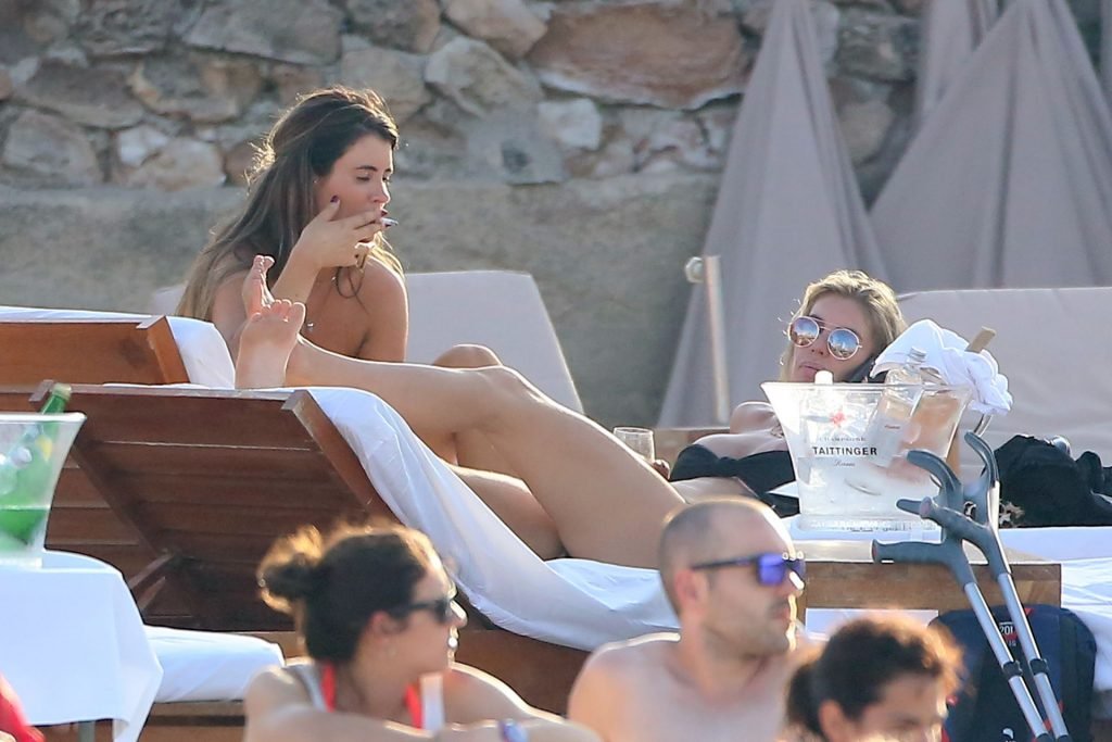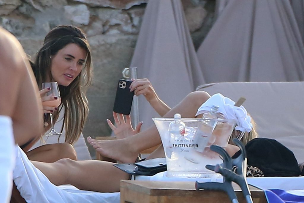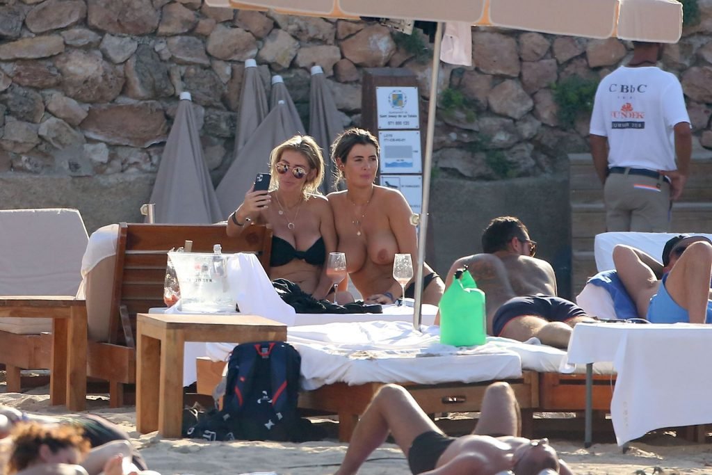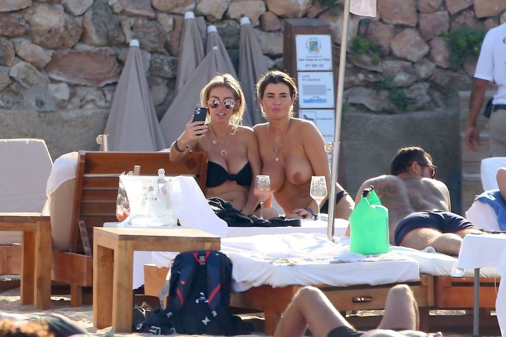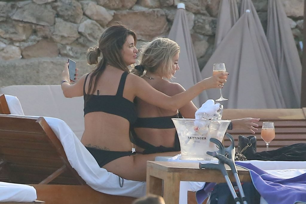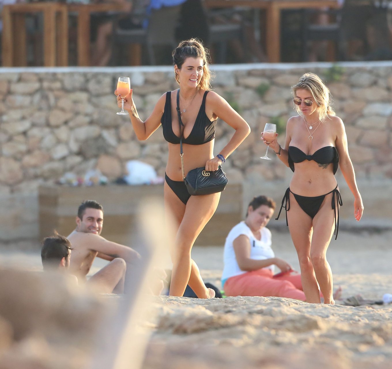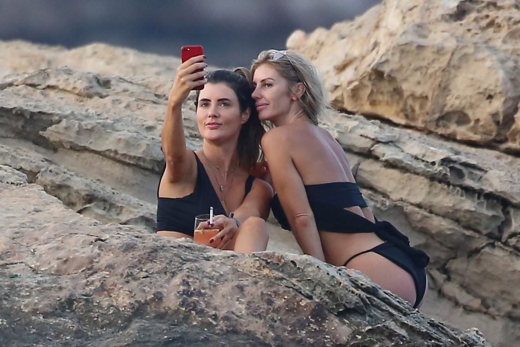 Modelo inglesa con busto, personalidad de televisión, columnista y ex escort Helen Wood y una amiga fueron vistas disfrutando de un día en la playa en Ibiza, 01/10/2019. Fueron fotografiadas bebiendo cócteles y haciéndose selfies.