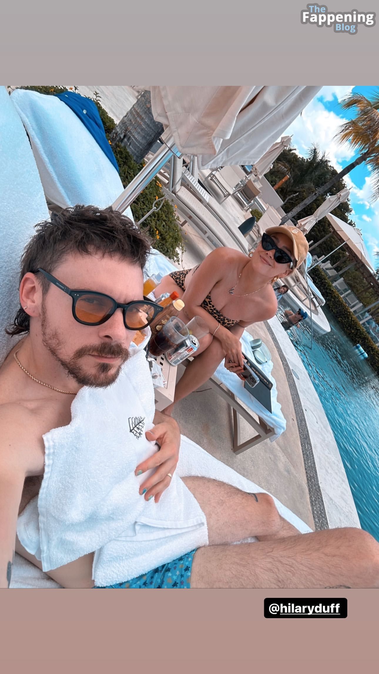 Mira esta foto de la impresionante actriz Hilary Duff, luciendo un escote serio con sus abundantes atributos a la vista en un bikini ardiente mientras adopta una pose seductora junto a la piscina.