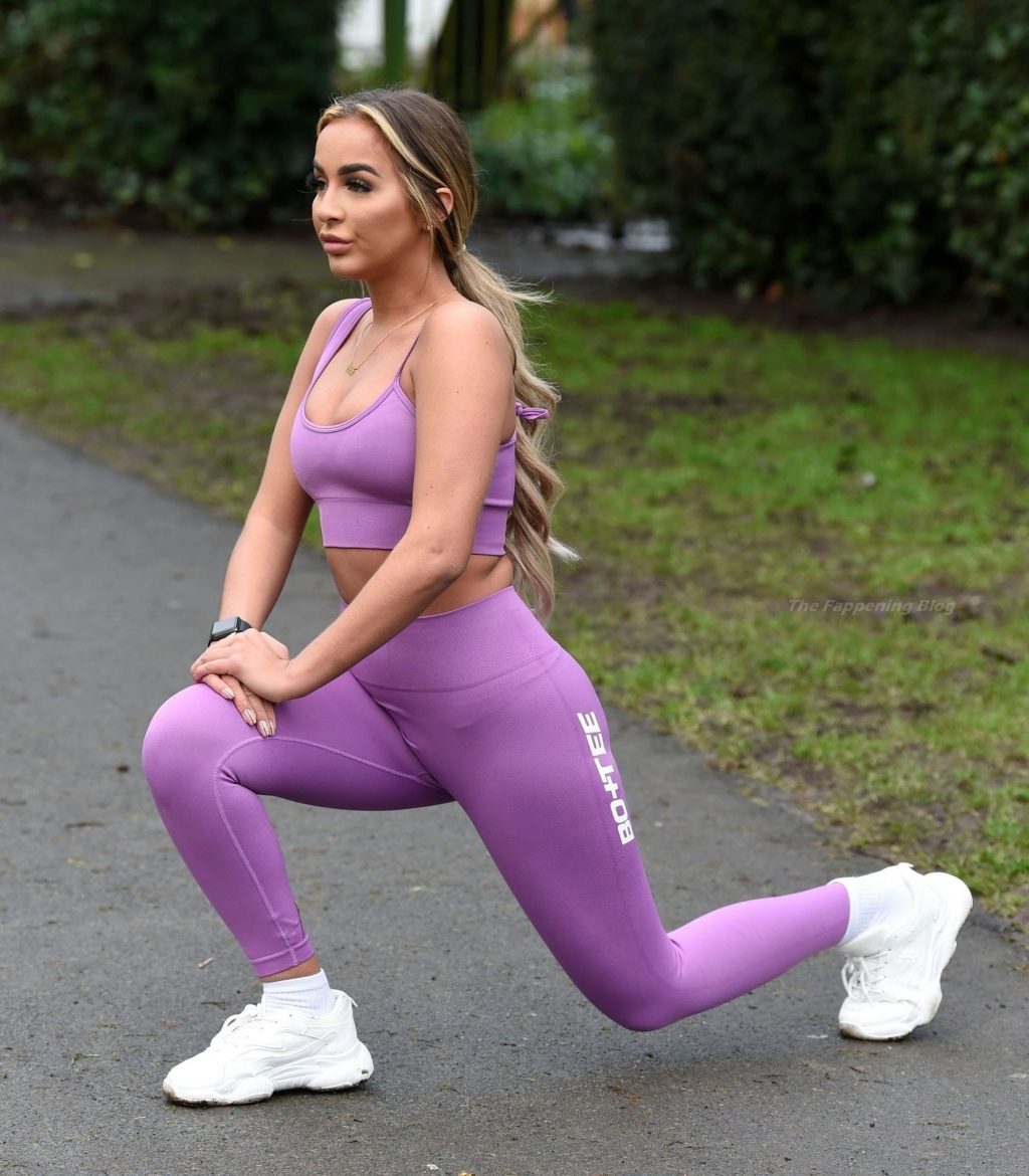 Holly Burns del nuevo programa de ITV ‘The Cabins’ muestra un despliegue voluptuoso en un entrenamiento temprano en Birmingham, 28/01/2021.