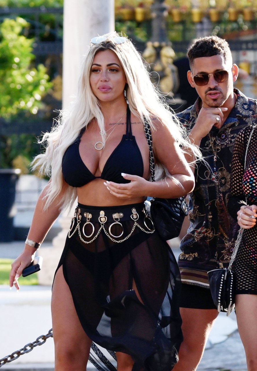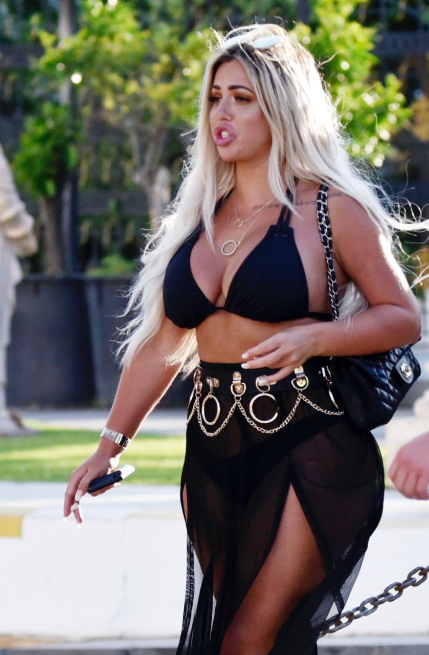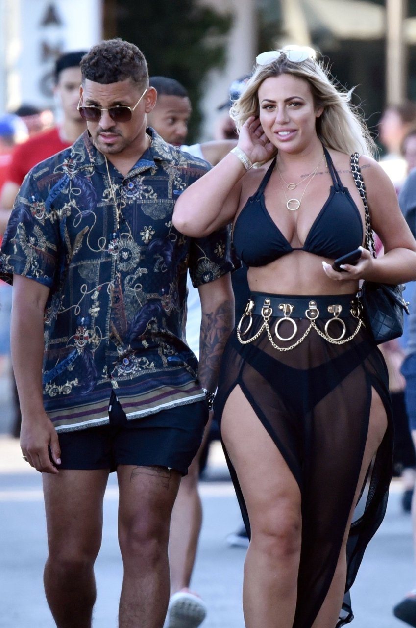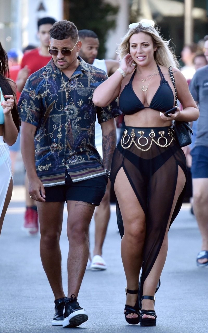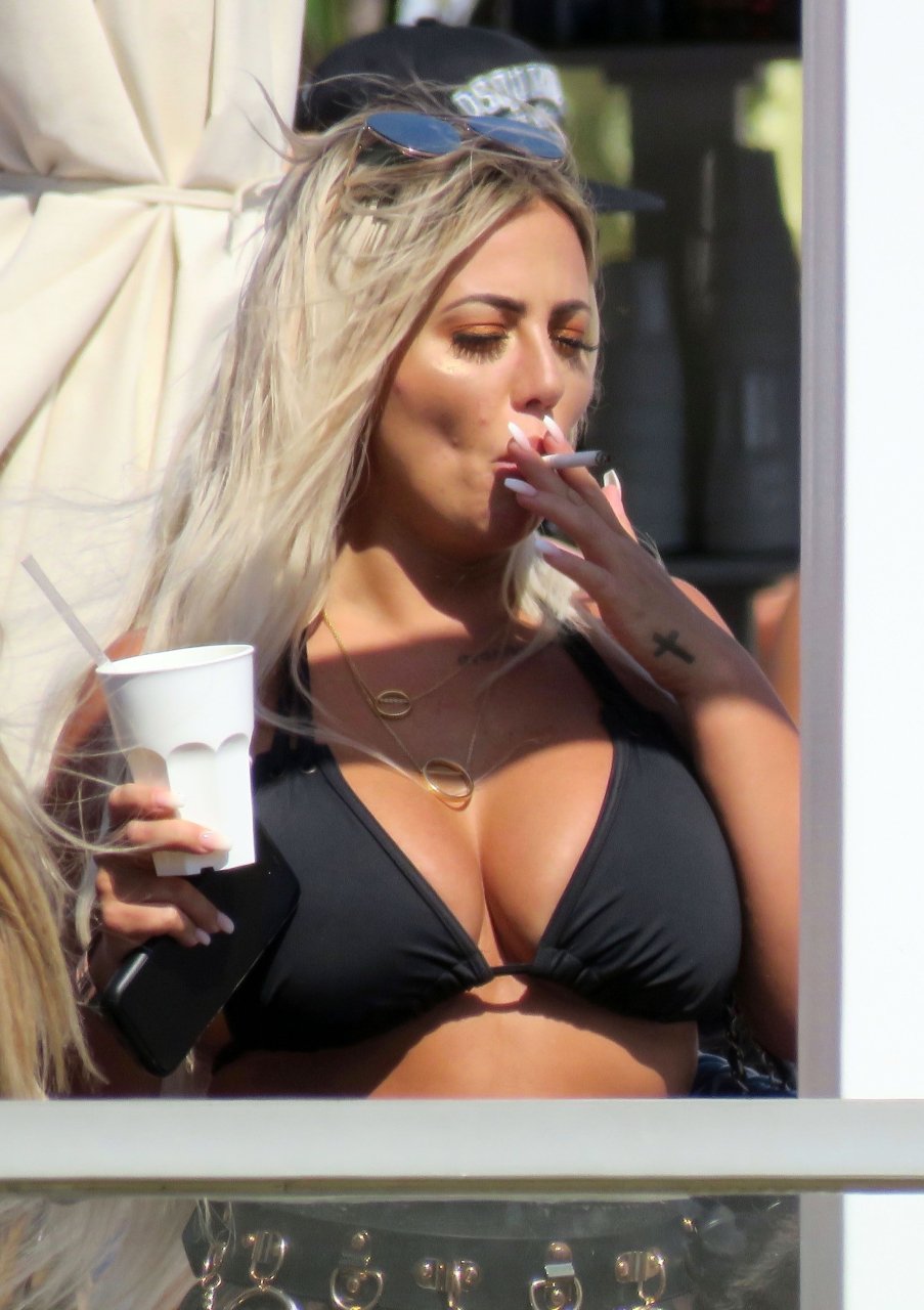Geordie Shore la estrella Holly Hagan (25) fotografiada mostrando sus envidiables curvas con un bikini de cuello halter y falda de gasa mientras estaba con amigos de vacaciones en Marbella, 28/05/2018. La estrella de la televisión reality parecía de buen ánimo mientras se la veía de fiesta con sus amigos fumando en cadena mientras disfrutaba con sus compañeros.
