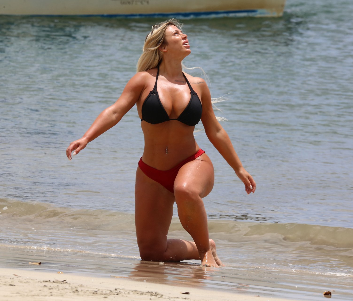 La estrella de MTV Geordie Shore Holly Hagan se ve en la playa mientras está de vacaciones en Santa Lucía. La rubia curvilínea mostró sus grandes pechos y su trasero con celulitis para los paparazzi. Holly Hagan es una estrella de reality TV y modelo de 25 años de Inglaterra.