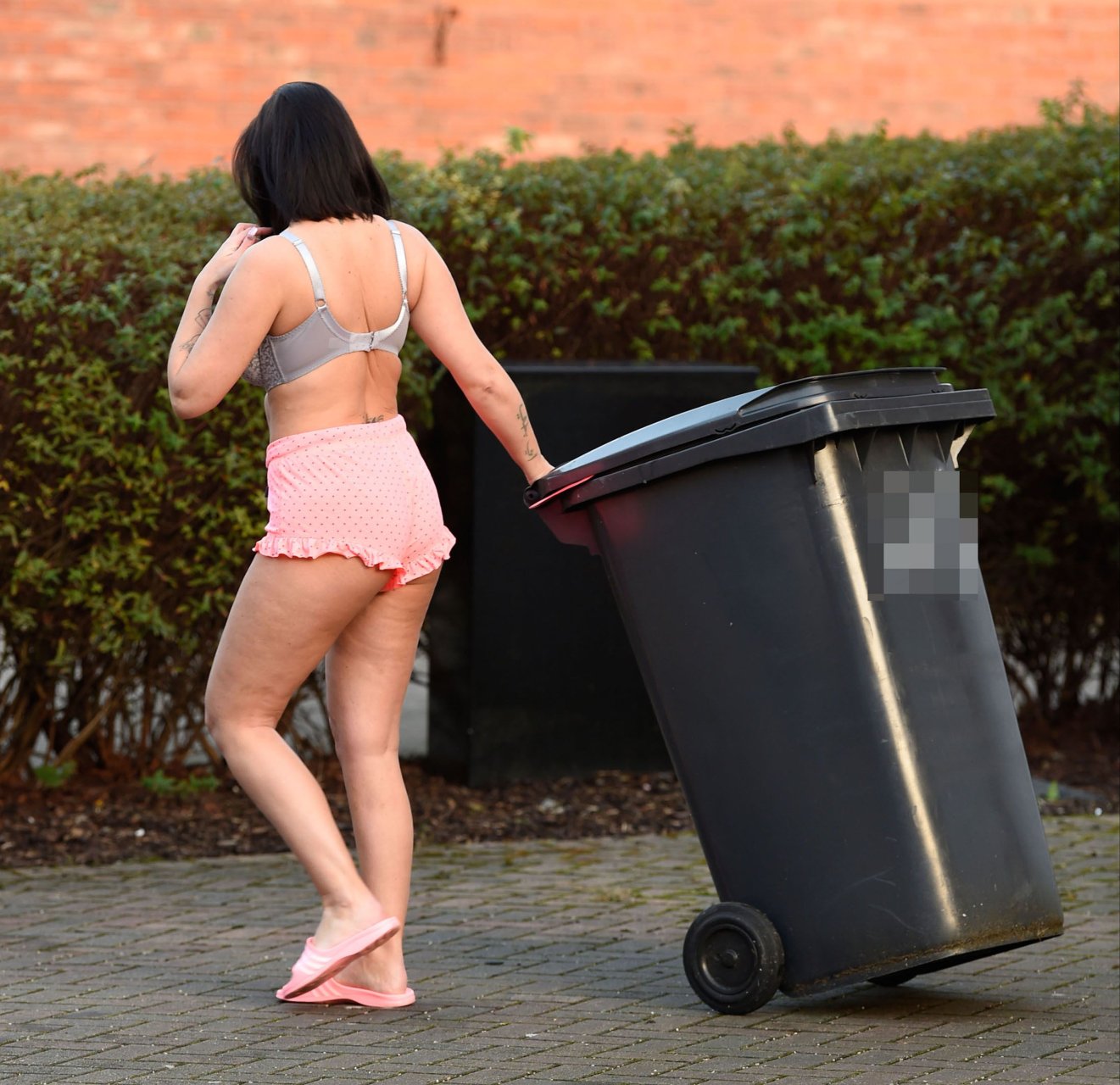 Holly Henderson sacó la basura con un sujetador azul y bragas rosas en Manchester, 01/04/2017. Holly Henderson es una actriz británica, personalidad de televisión, MD, escritora, bloguera, modelo. Edad: 38 (21 de noviembre de 1978).