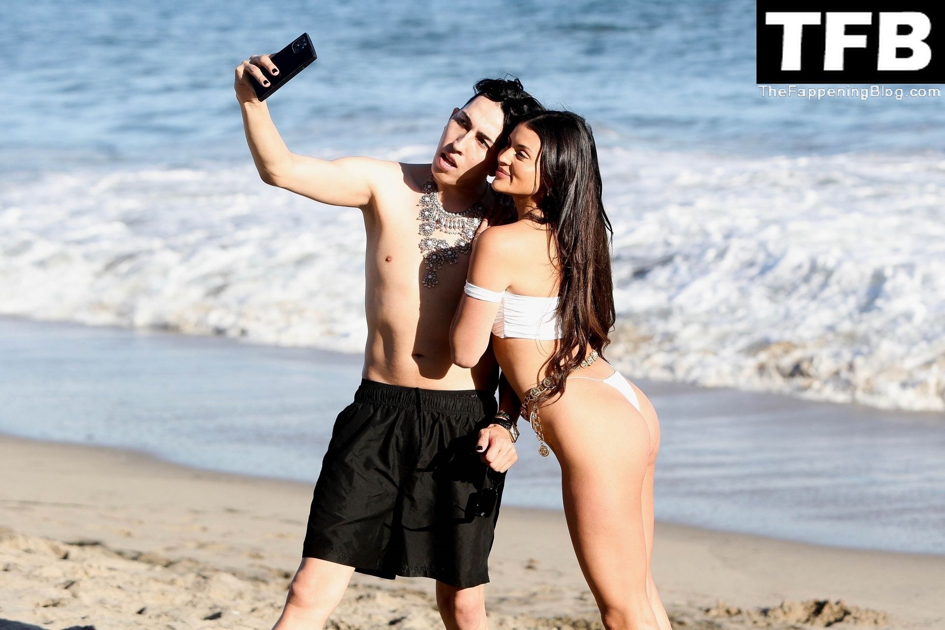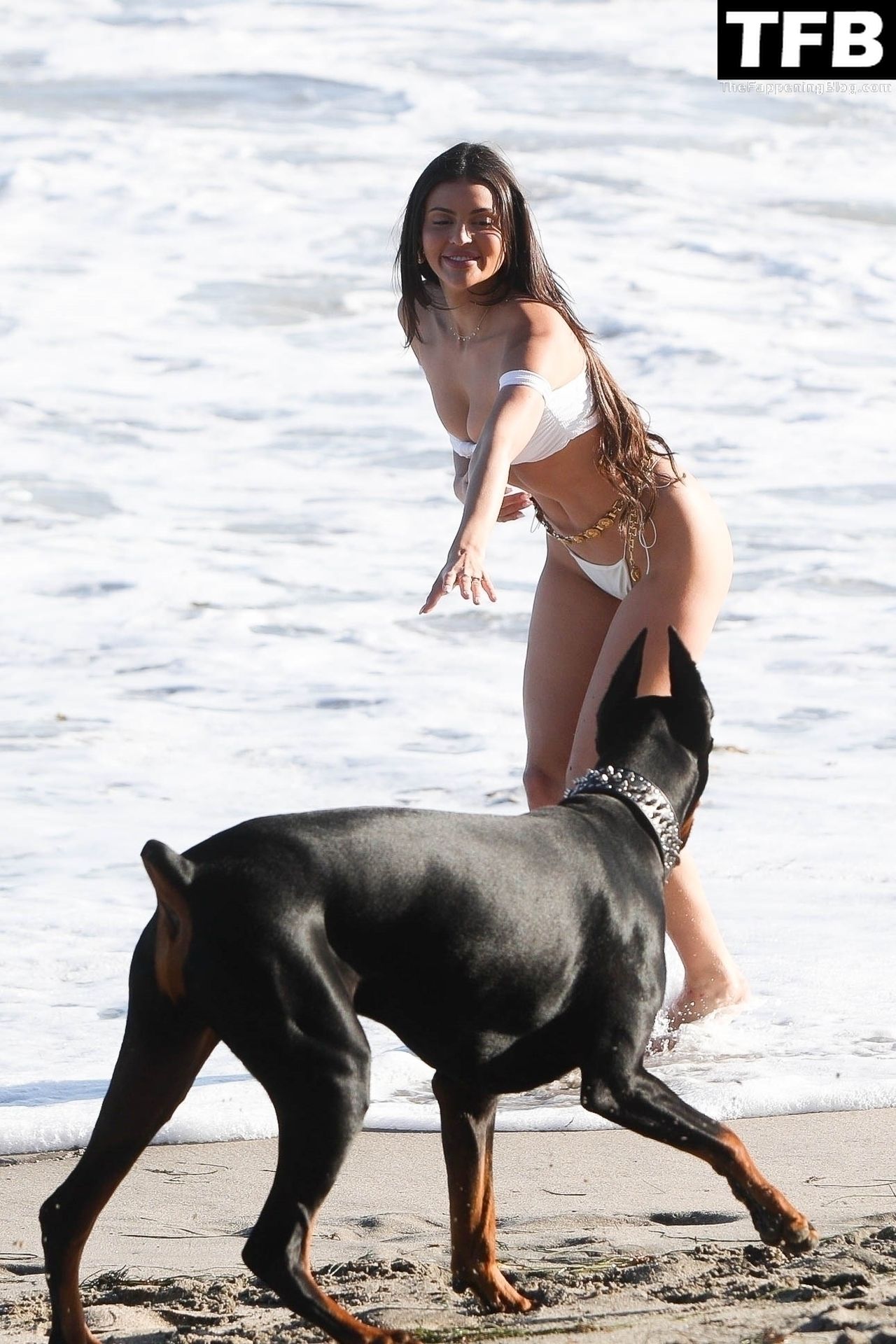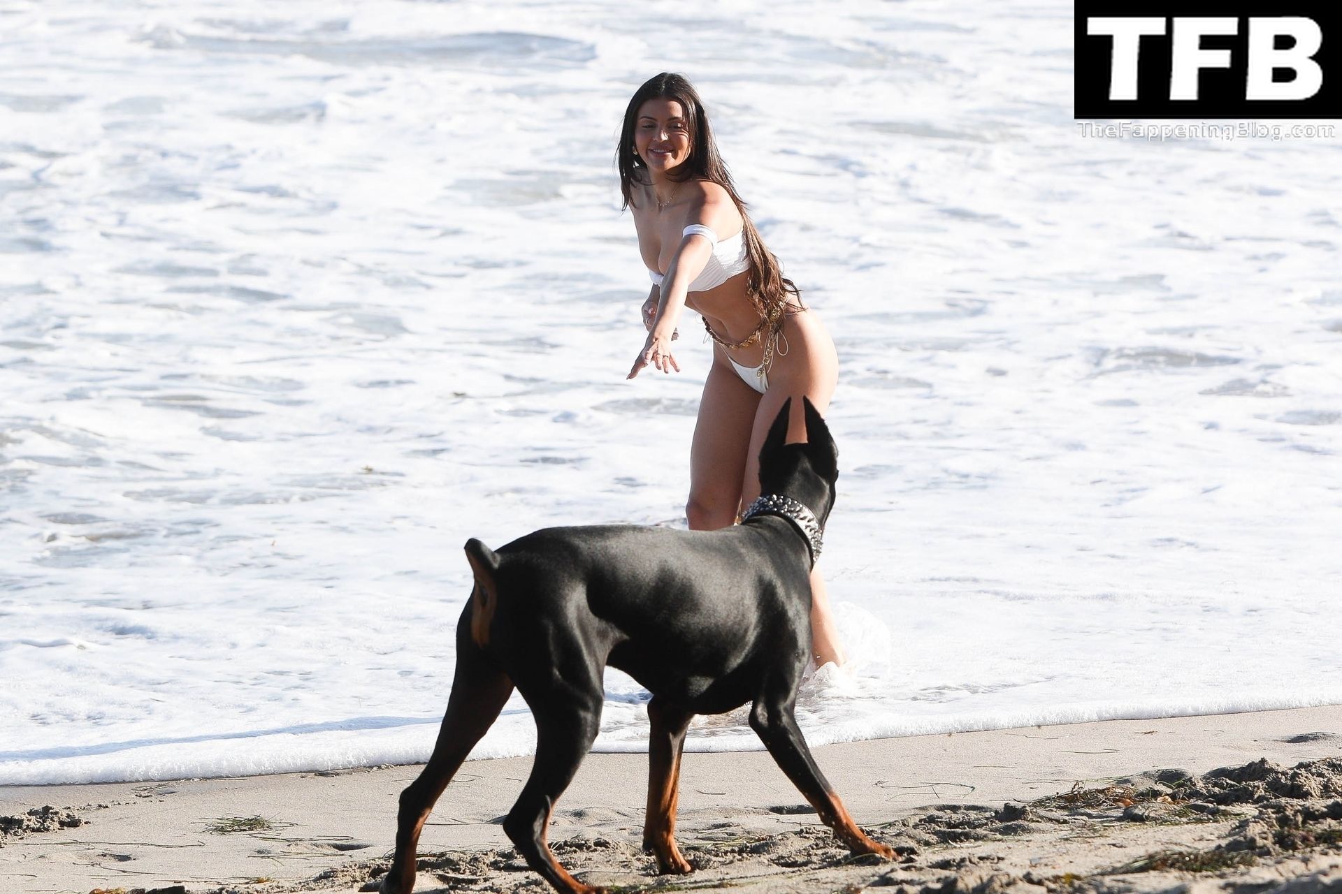 Holly Scarfone no se aleja de una buena oportunidad para fotos mientras se la ve retozando en el océano y descansando en la playa de Malibu, 07/06/2022. Holly está de buen ánimo después de haber sido vista con el supuesto ex romance Scott Disick apenas unos días antes.