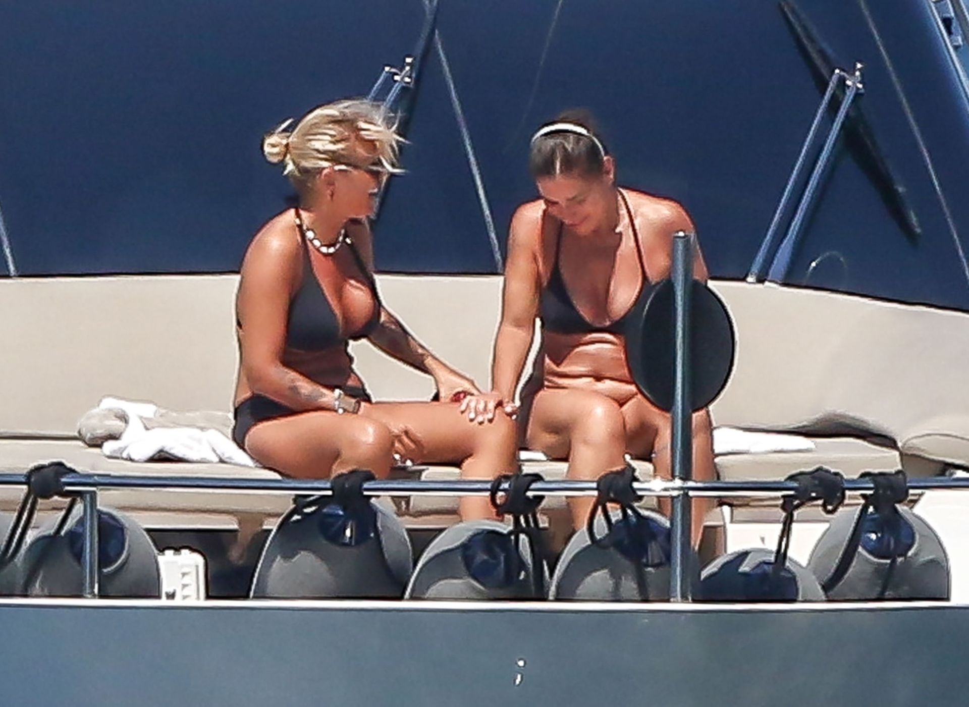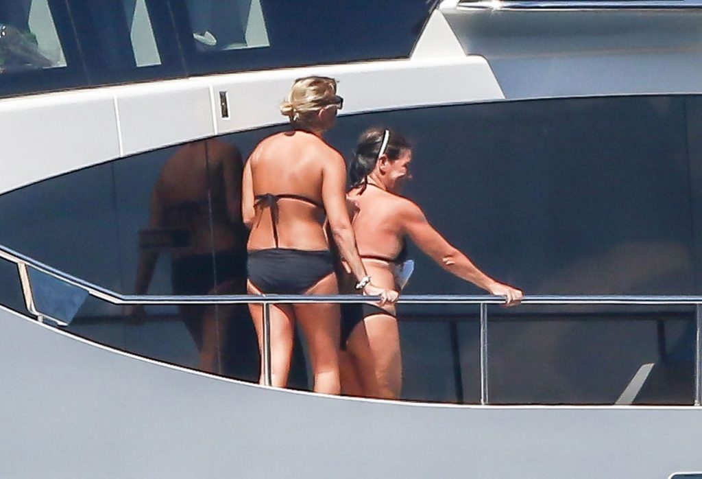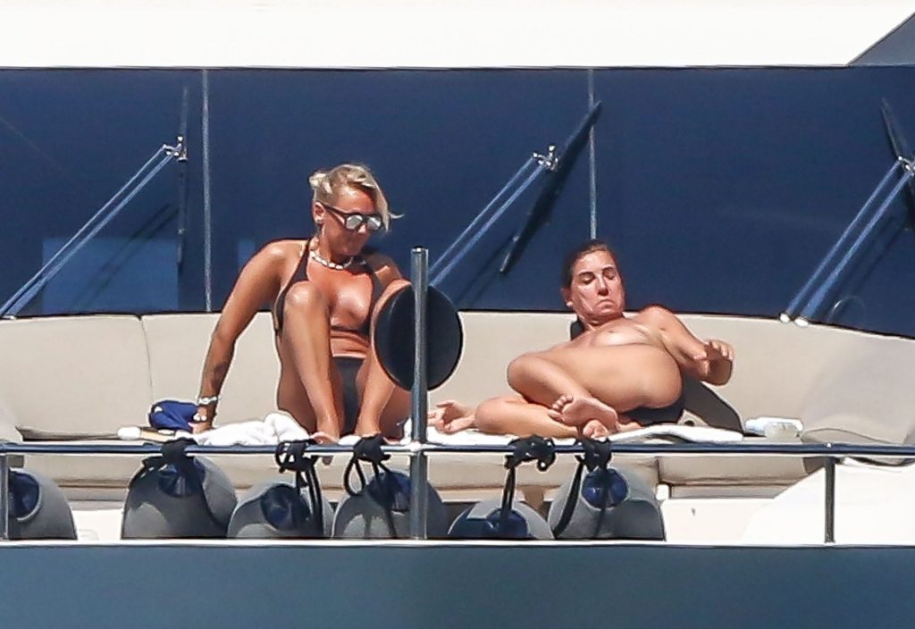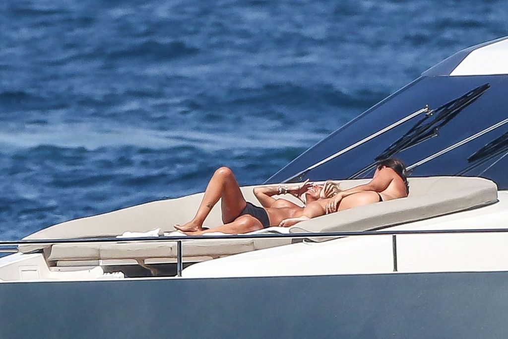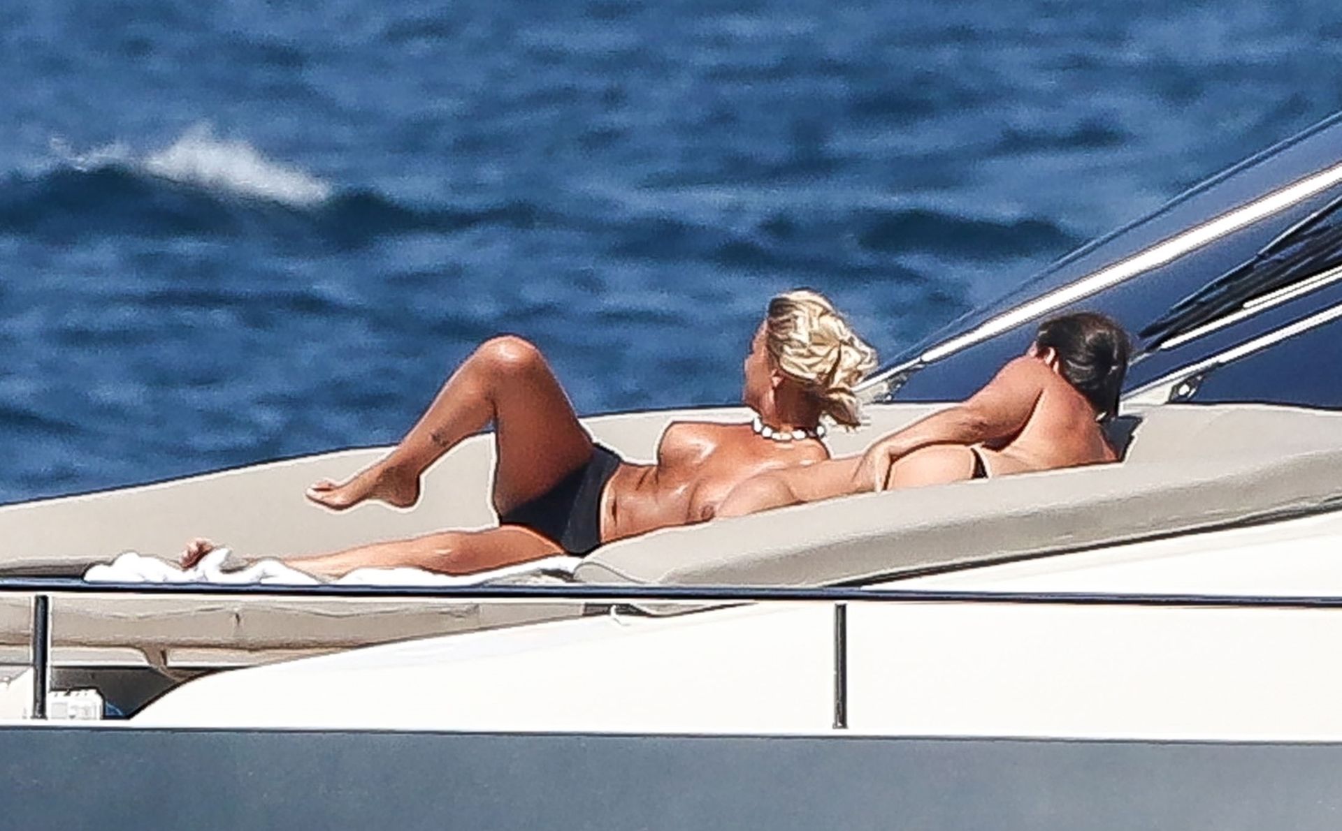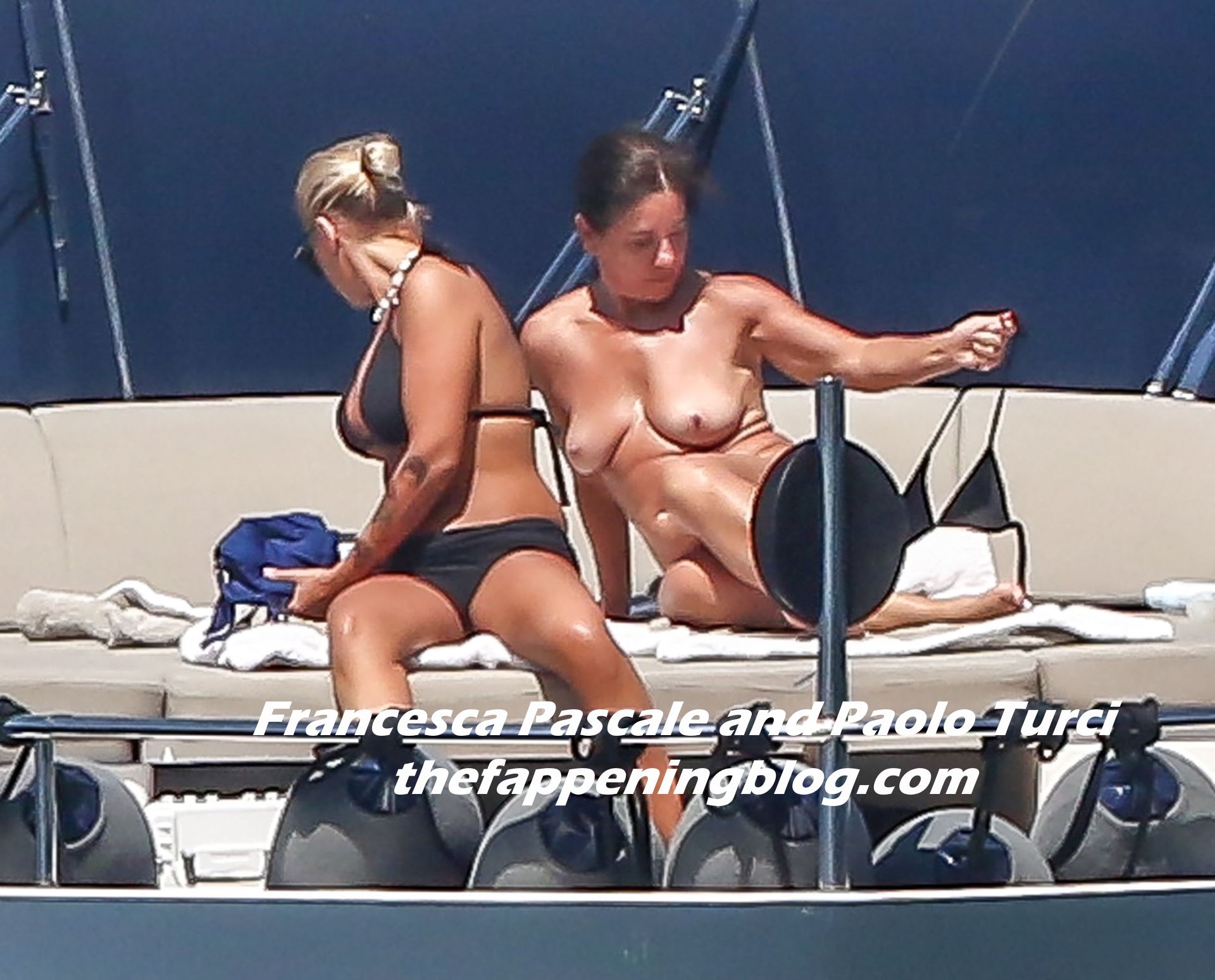 Silvio Berlusconi ex Francesca Pascale y la cantante Paola Turci se broncean y van sin parte superior en sus vacaciones bañadas por el sol en su yate de lujo en la Costiera Sorrentina en Italia, 13/08/2020.