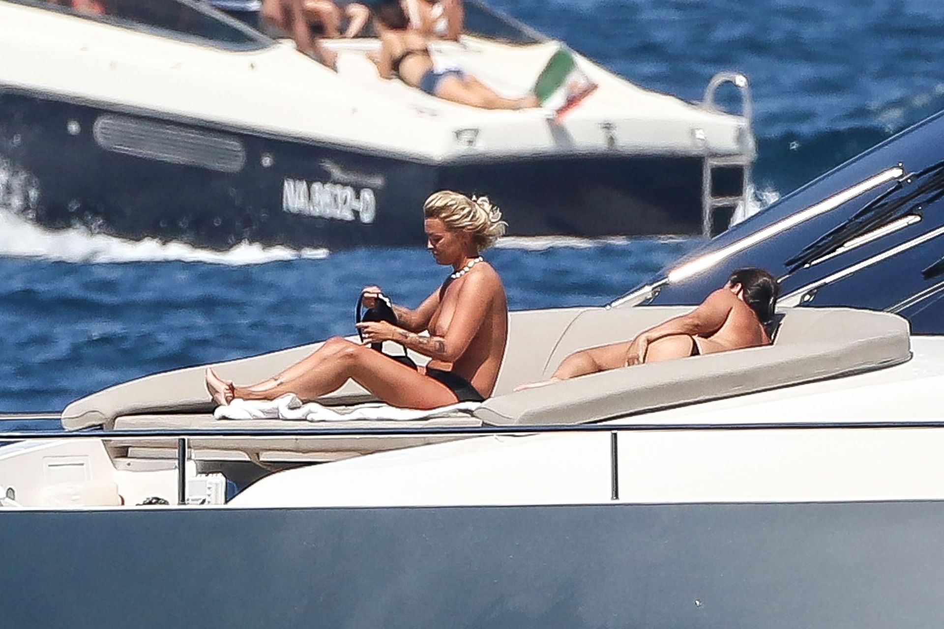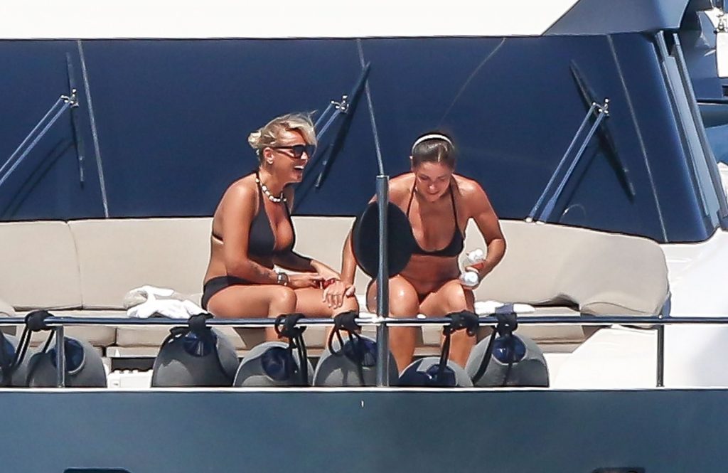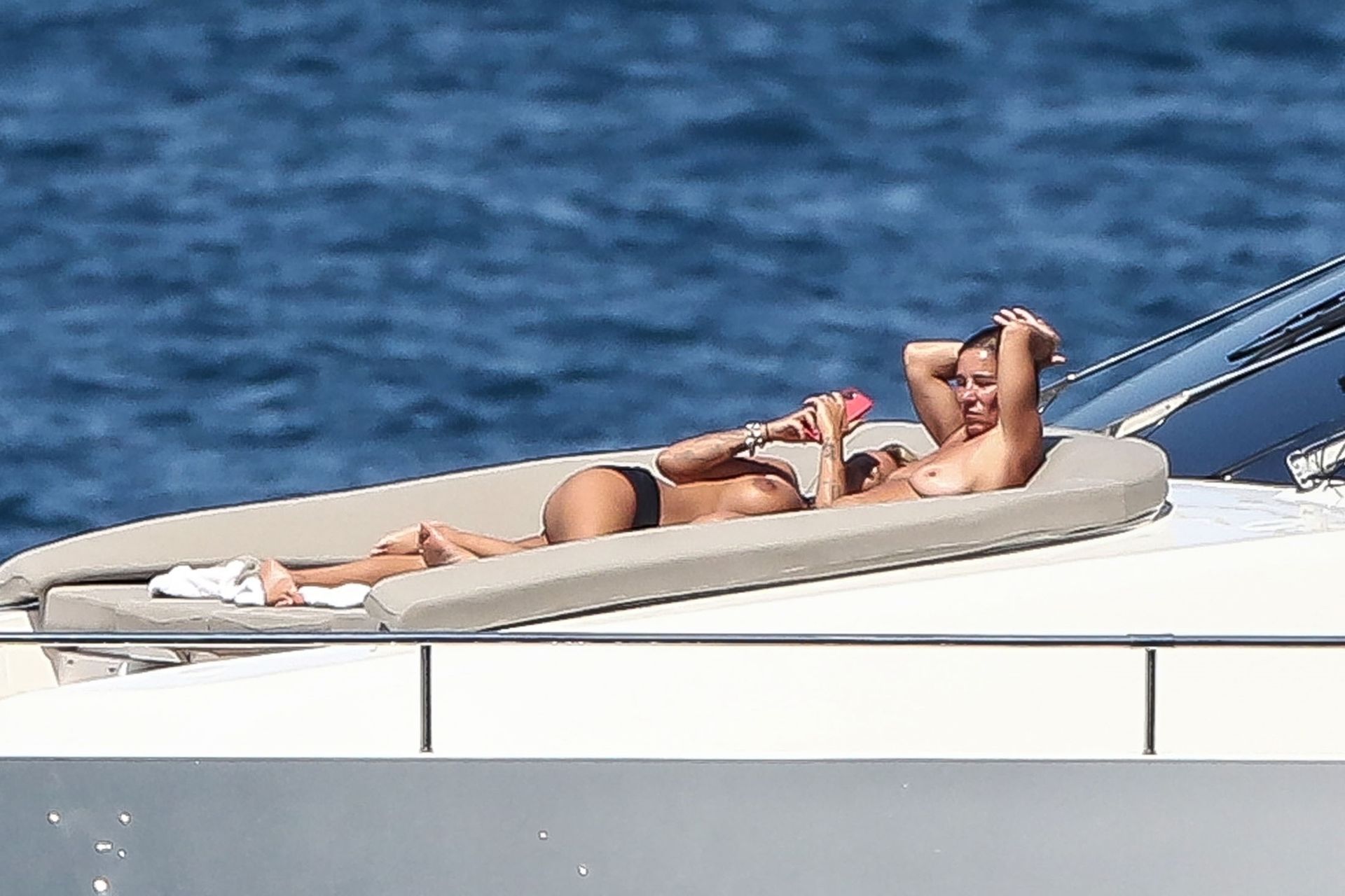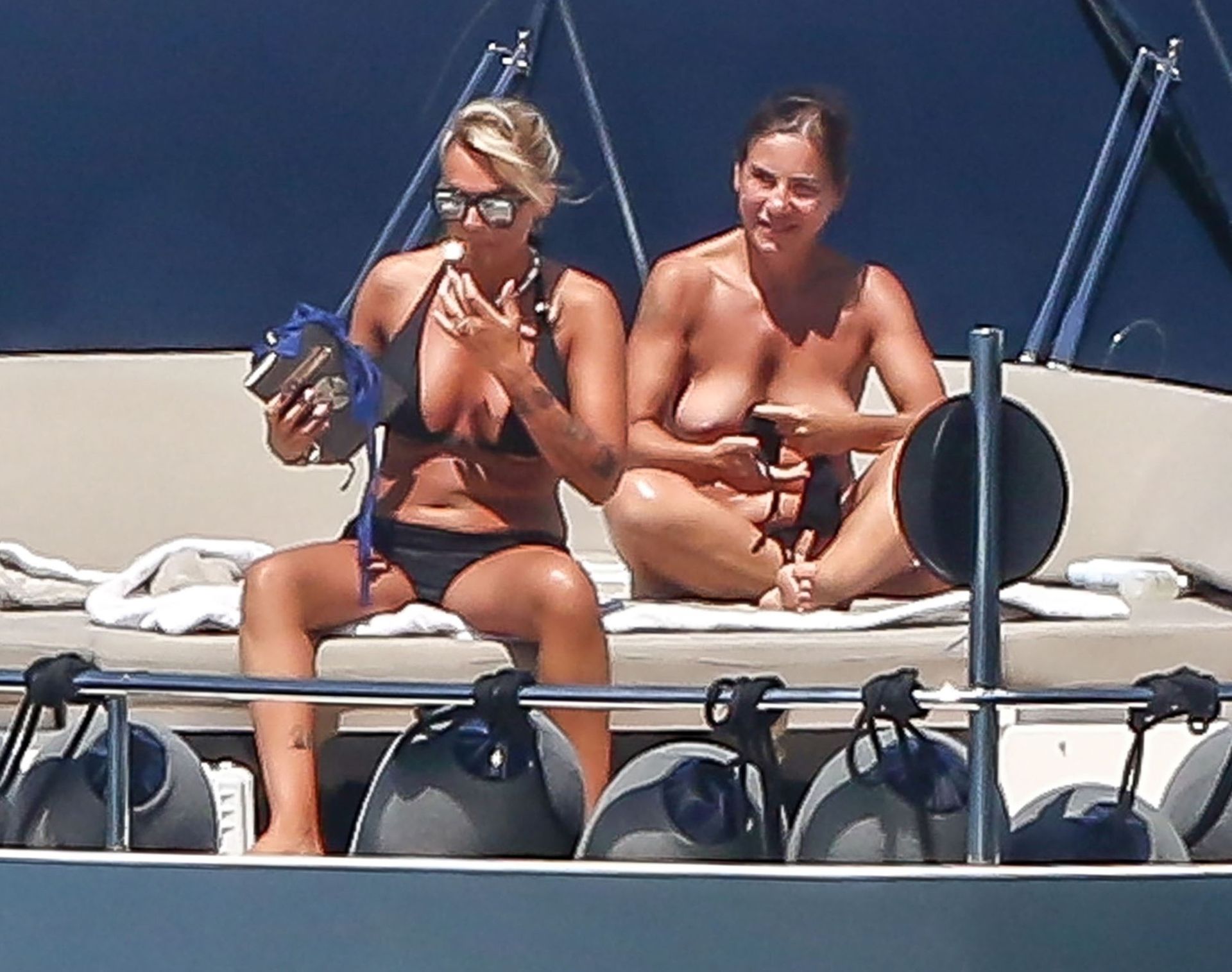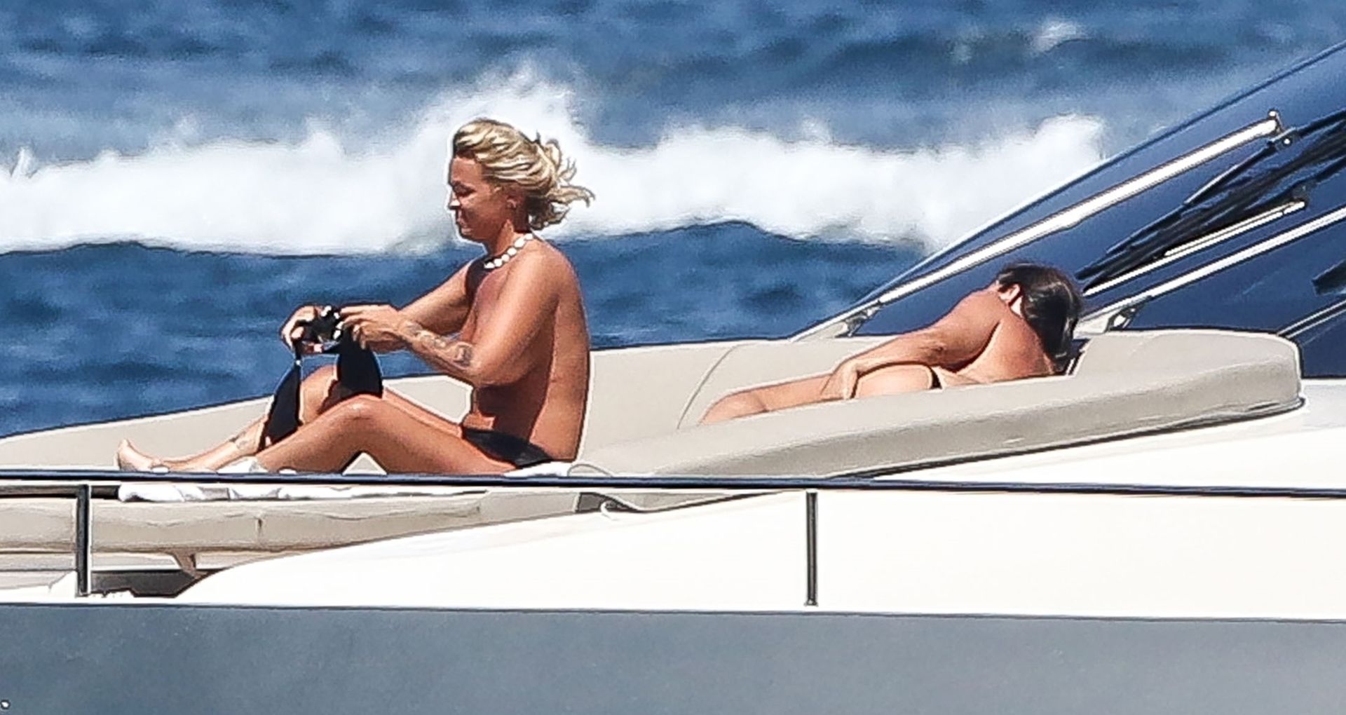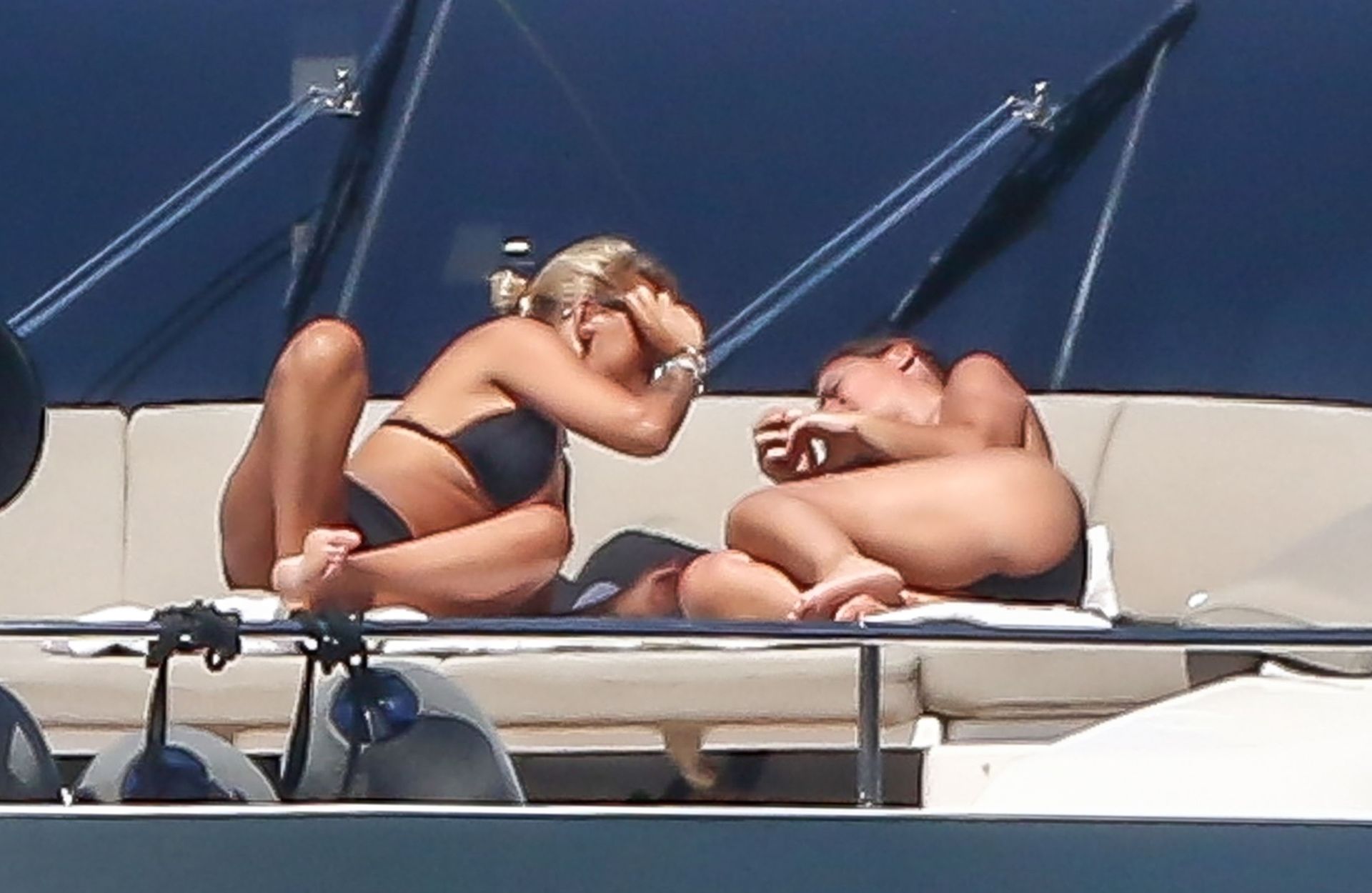 Silvio Berlusconi ex Francesca Pascale y la cantante Paola Turci se broncean y van sin parte superior en sus vacaciones bañadas por el sol en su yate de lujo en la Costiera Sorrentina en Italia, 13/08/2020.