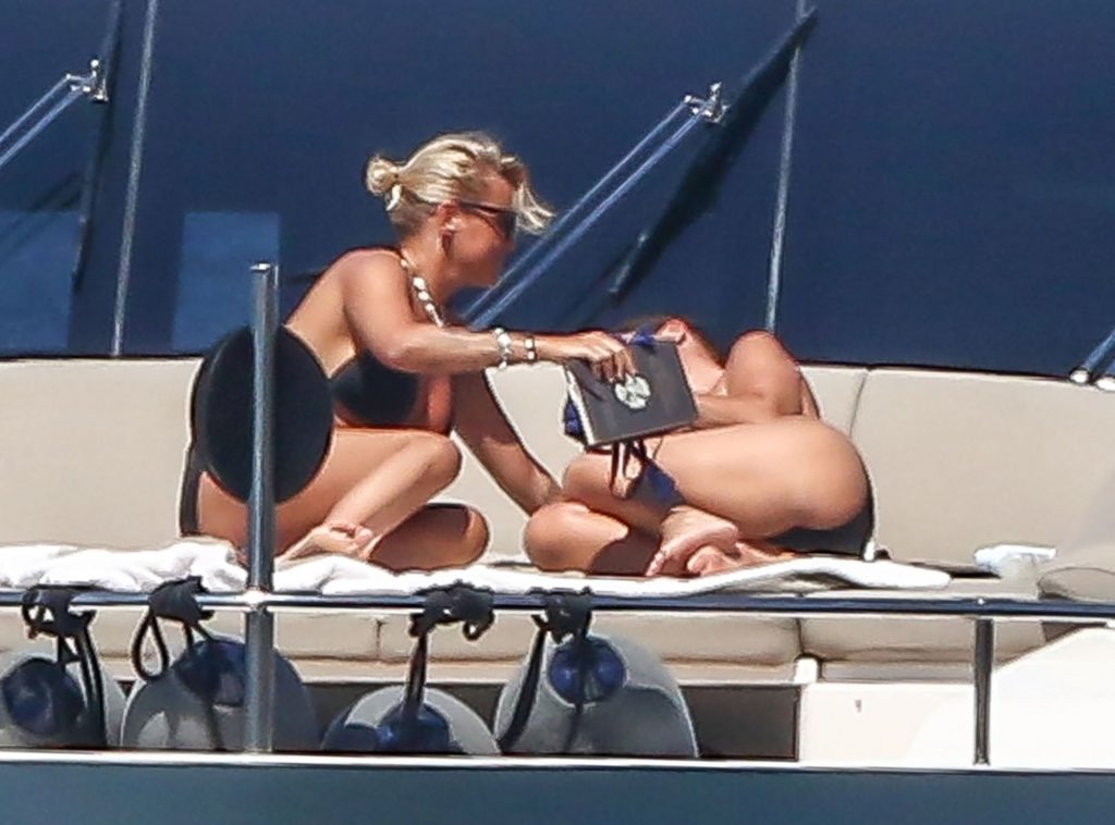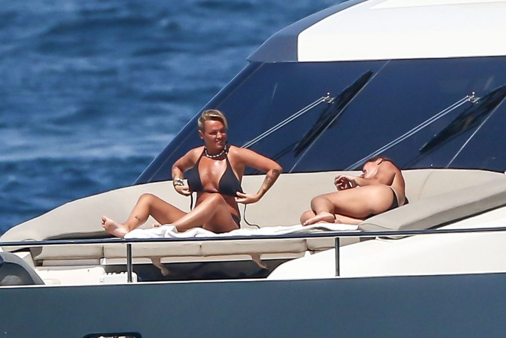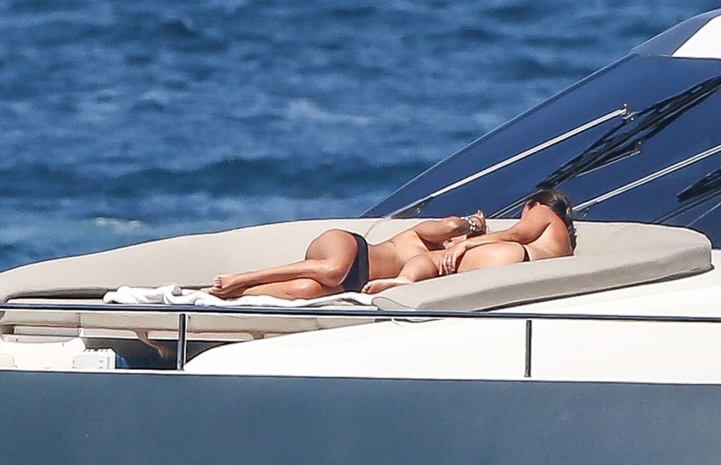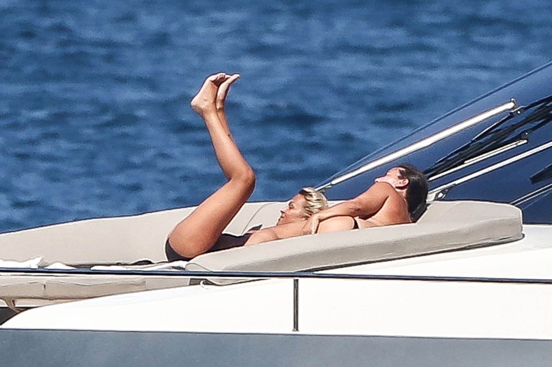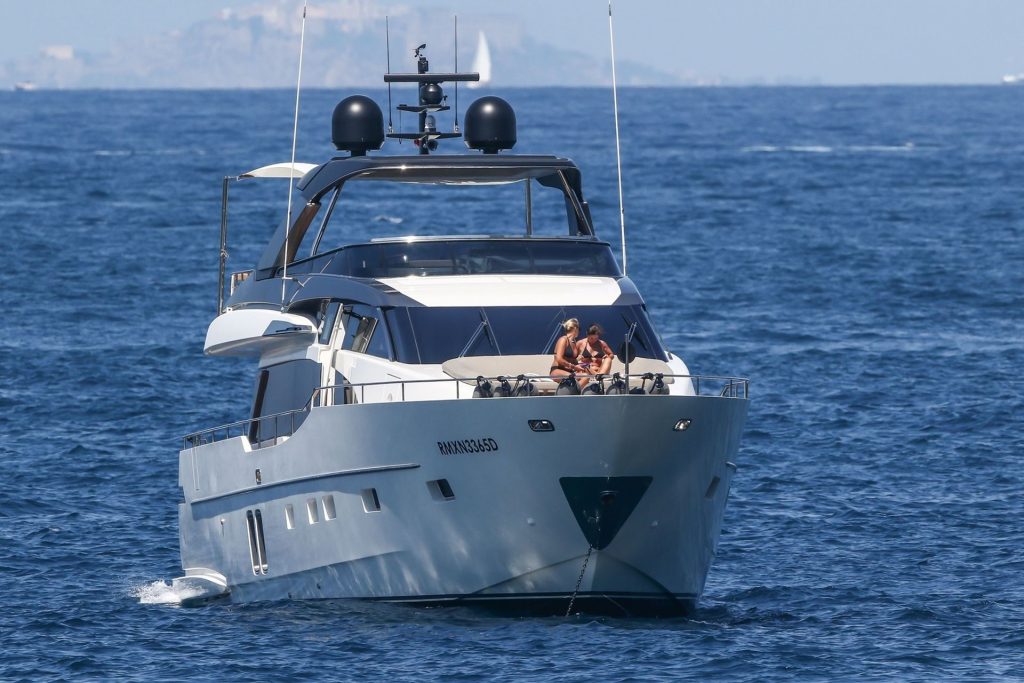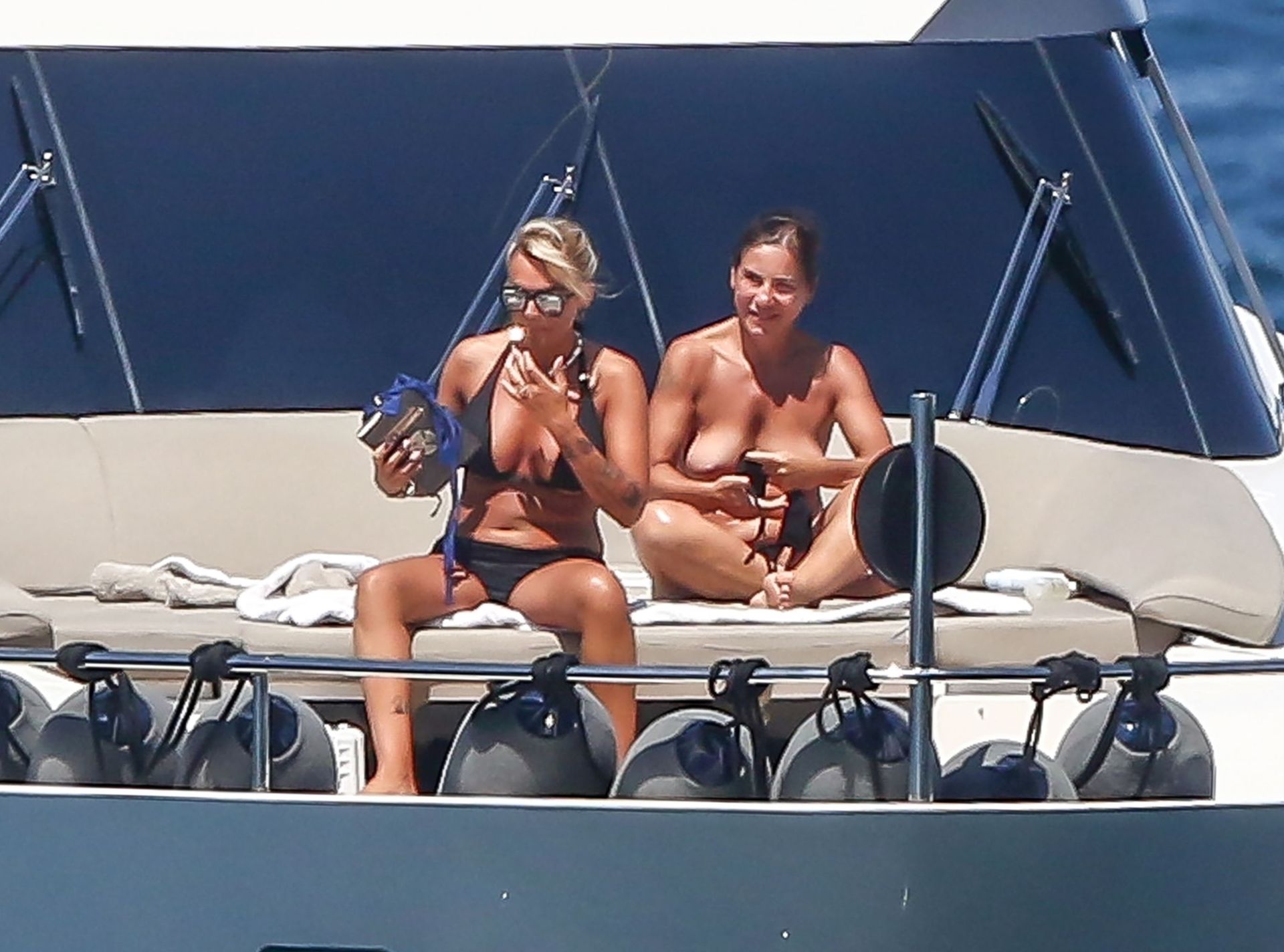 Silvio Berlusconi ex Francesca Pascale y la cantante Paola Turci se broncean y van sin parte superior en sus vacaciones bañadas por el sol en su yate de lujo en la Costiera Sorrentina en Italia, 13/08/2020.