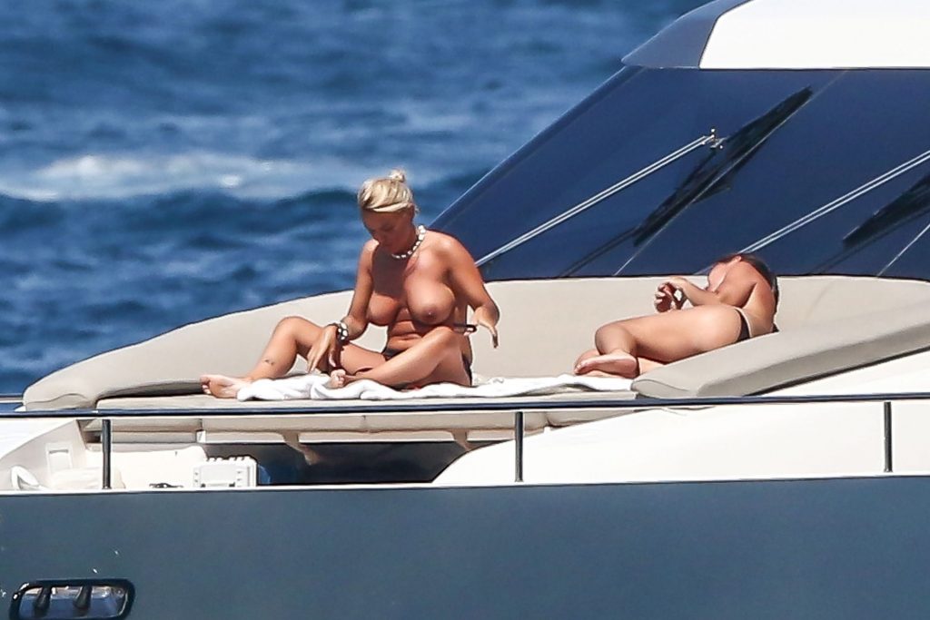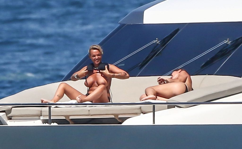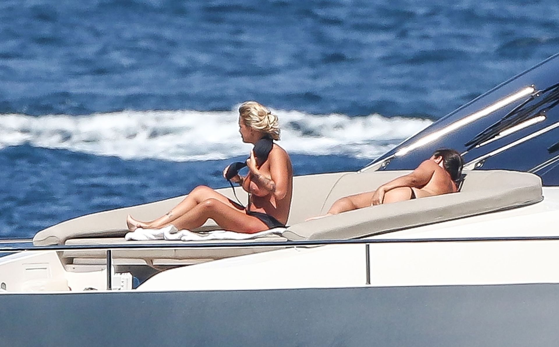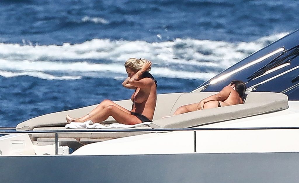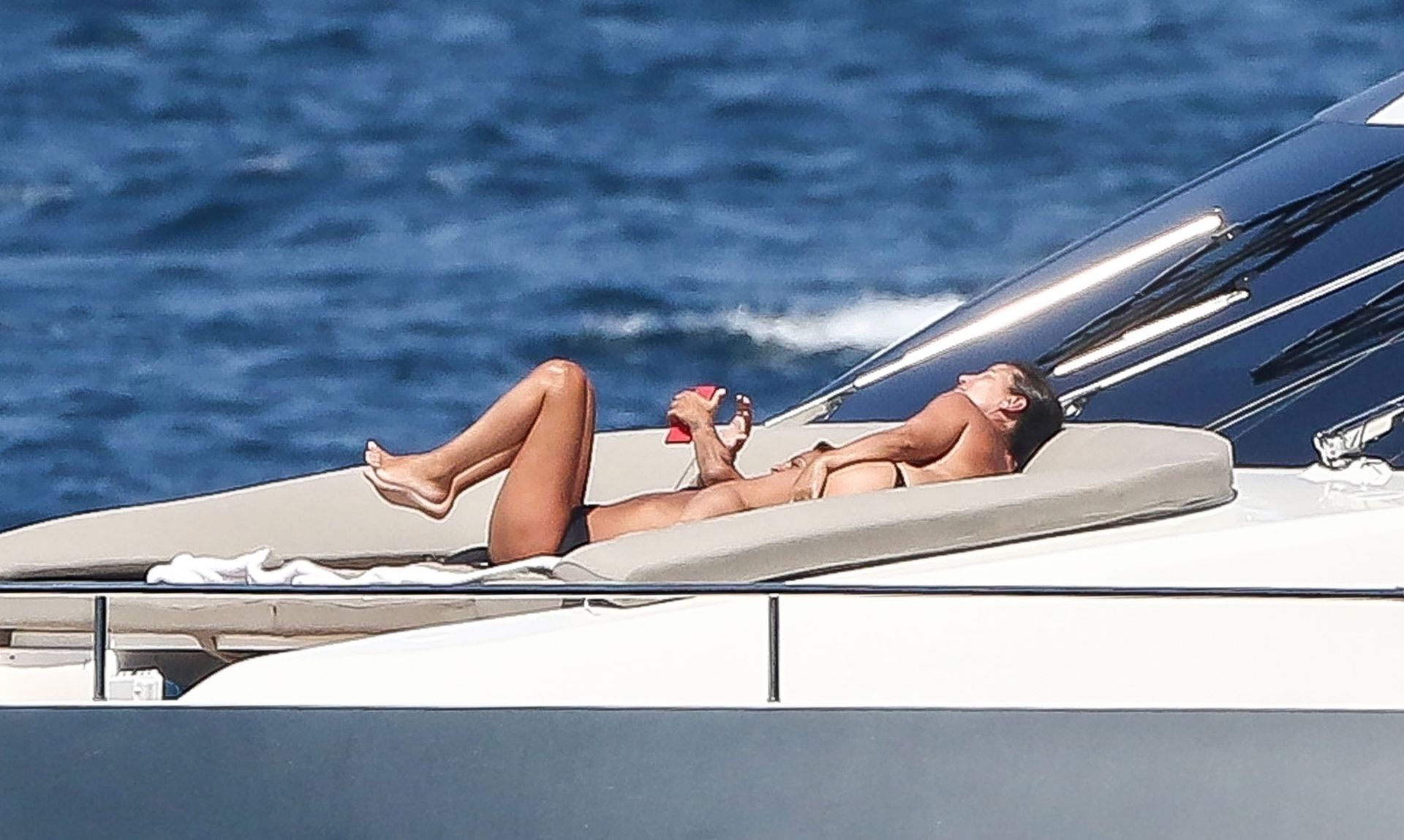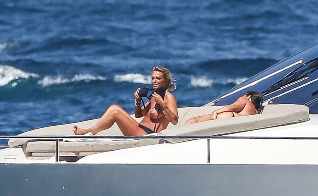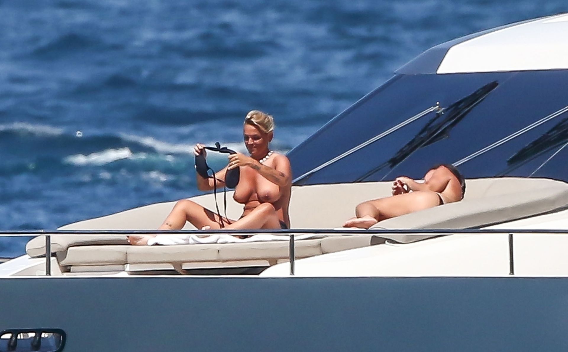 Silvio Berlusconi ex Francesca Pascale y la cantante Paola Turci se broncean y van sin parte superior en sus vacaciones bañadas por el sol en su yate de lujo en la Costiera Sorrentina en Italia, 13/08/2020.