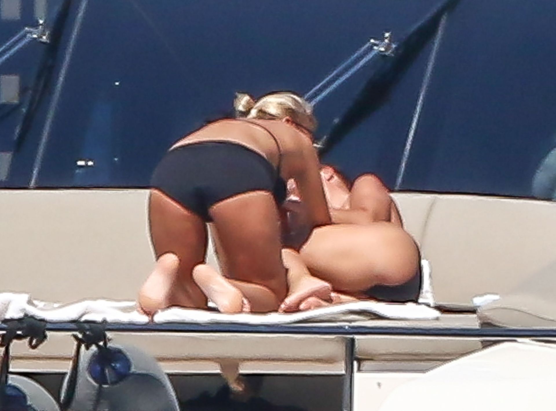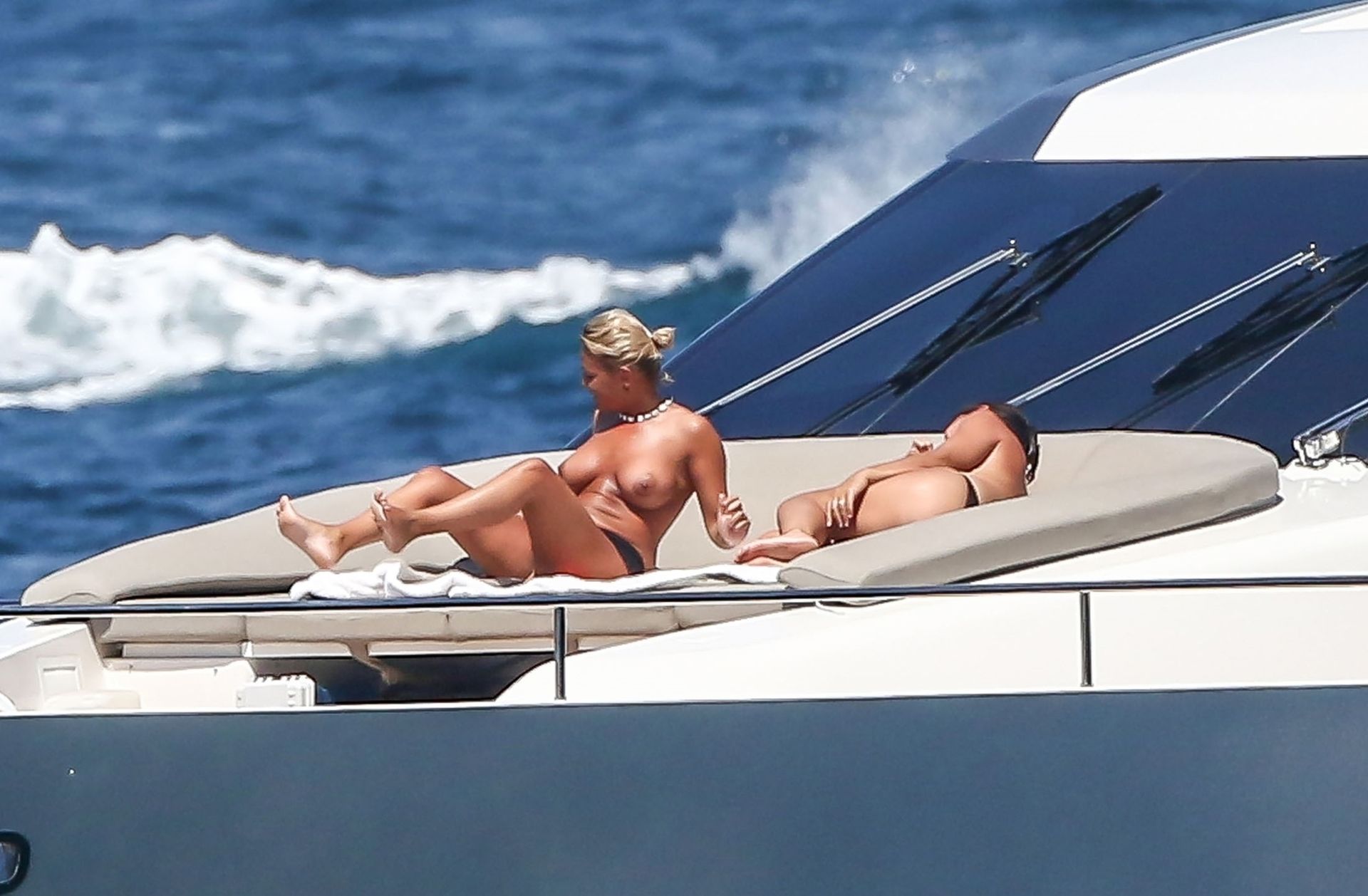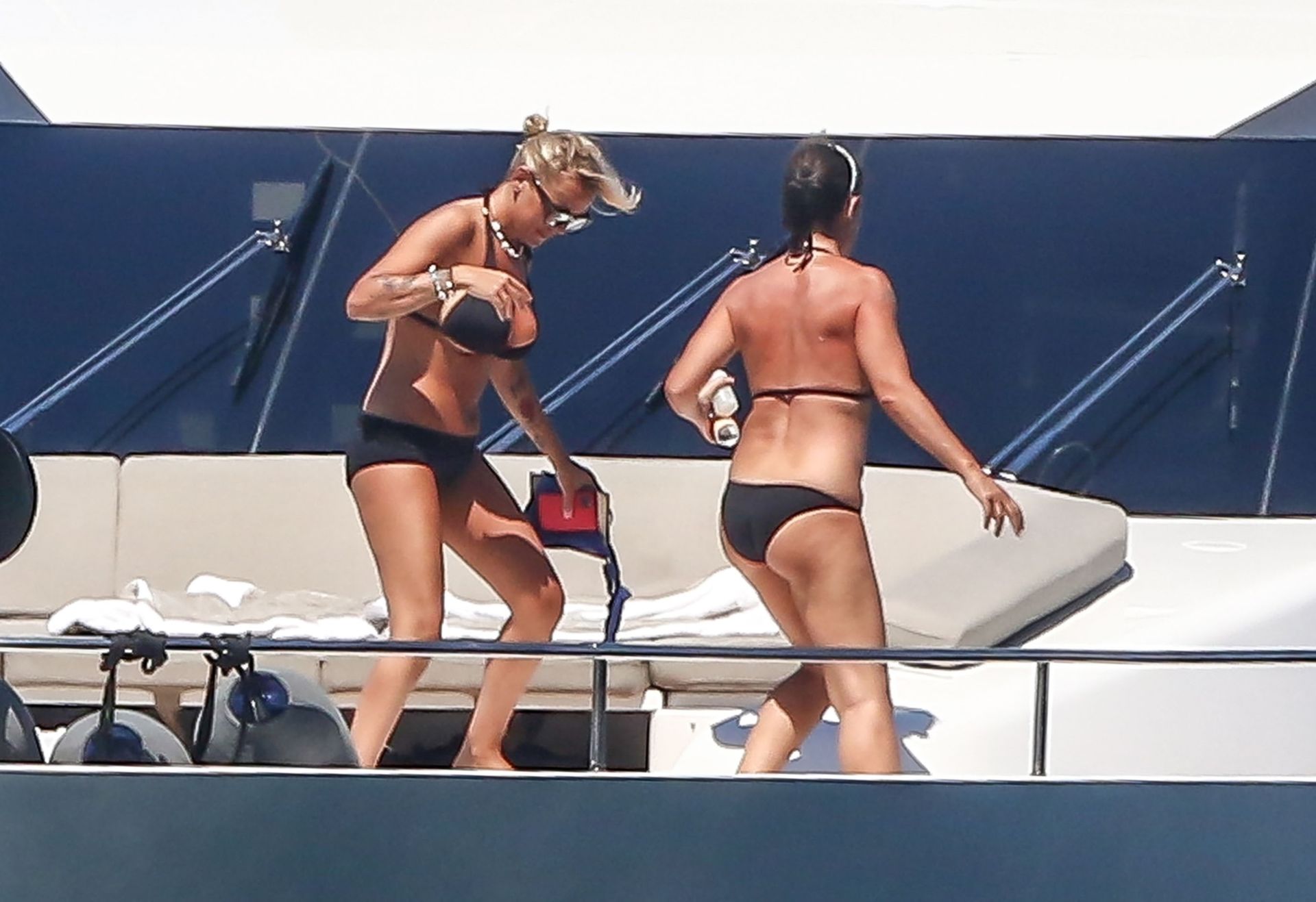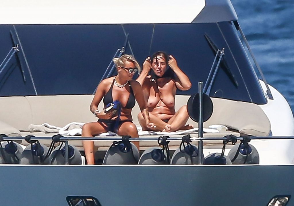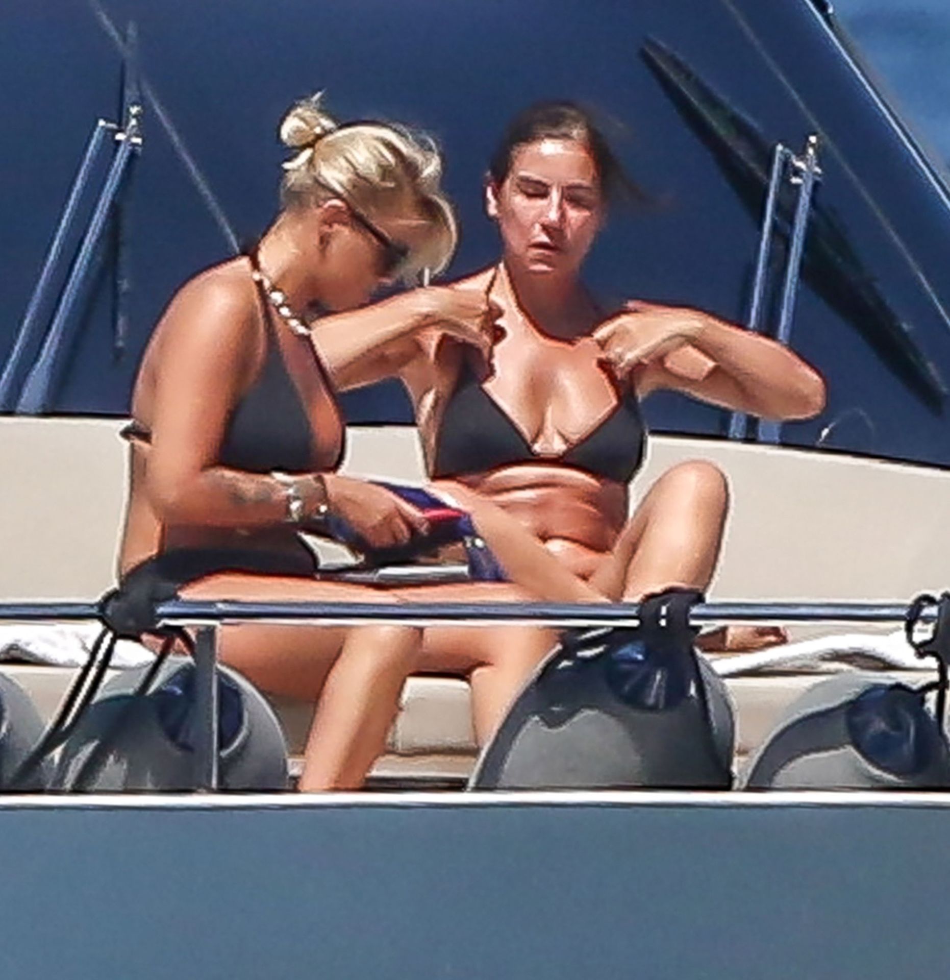 Silvio Berlusconi ex Francesca Pascale y la cantante Paola Turci se broncean y van sin parte superior en sus vacaciones bañadas por el sol en su yate de lujo en la Costiera Sorrentina en Italia, 13/08/2020.