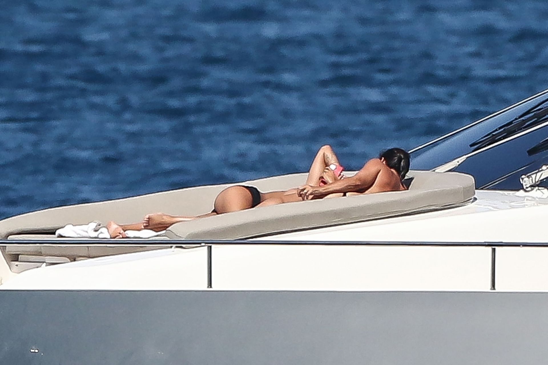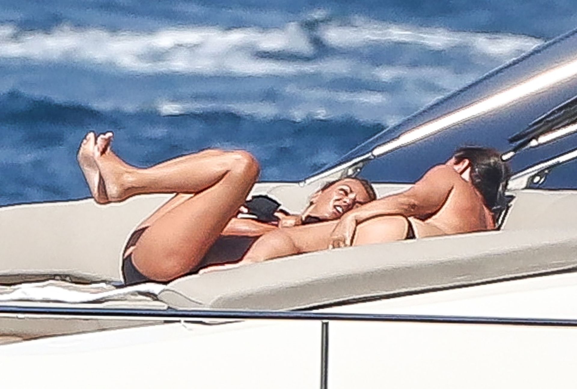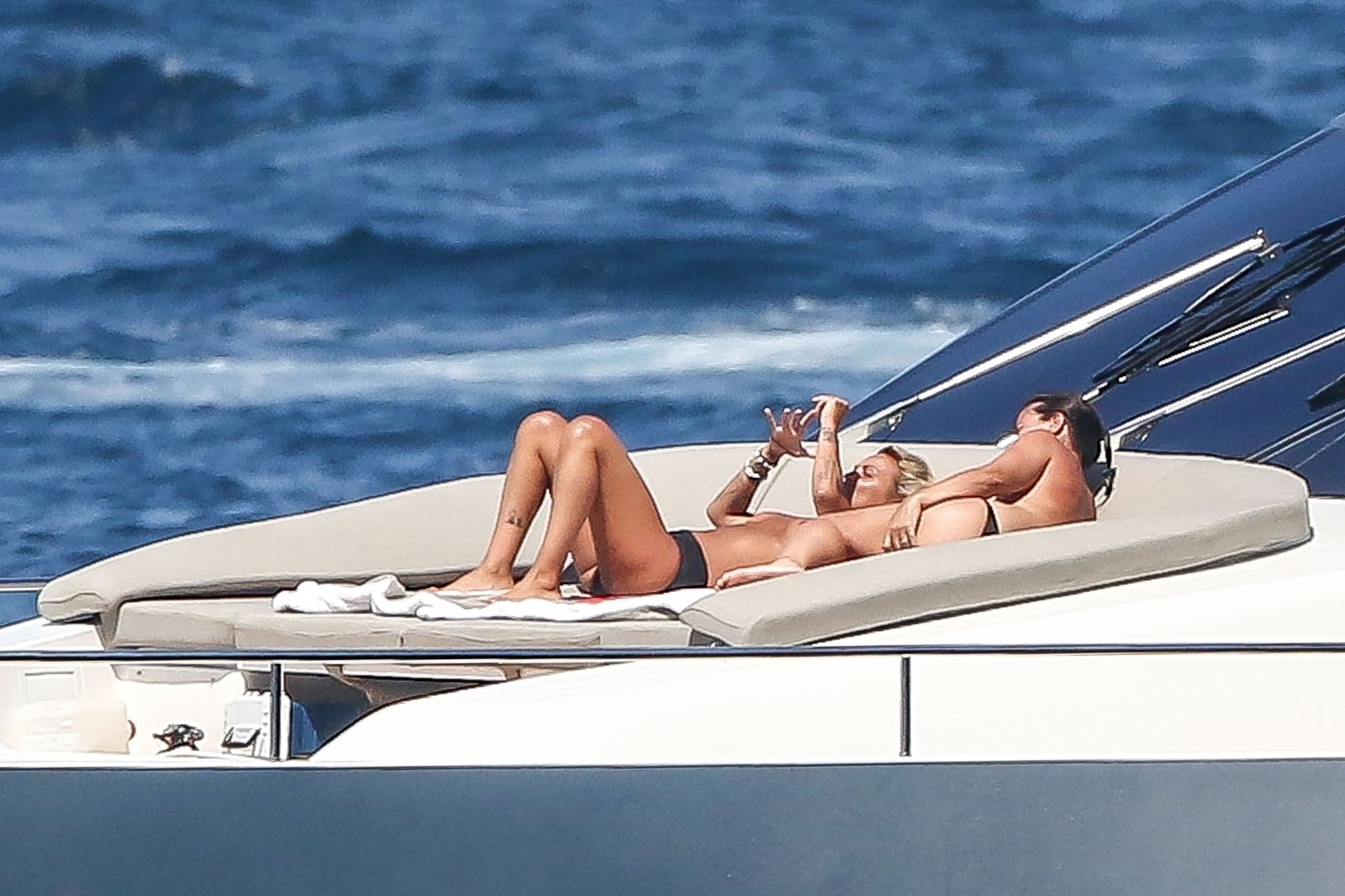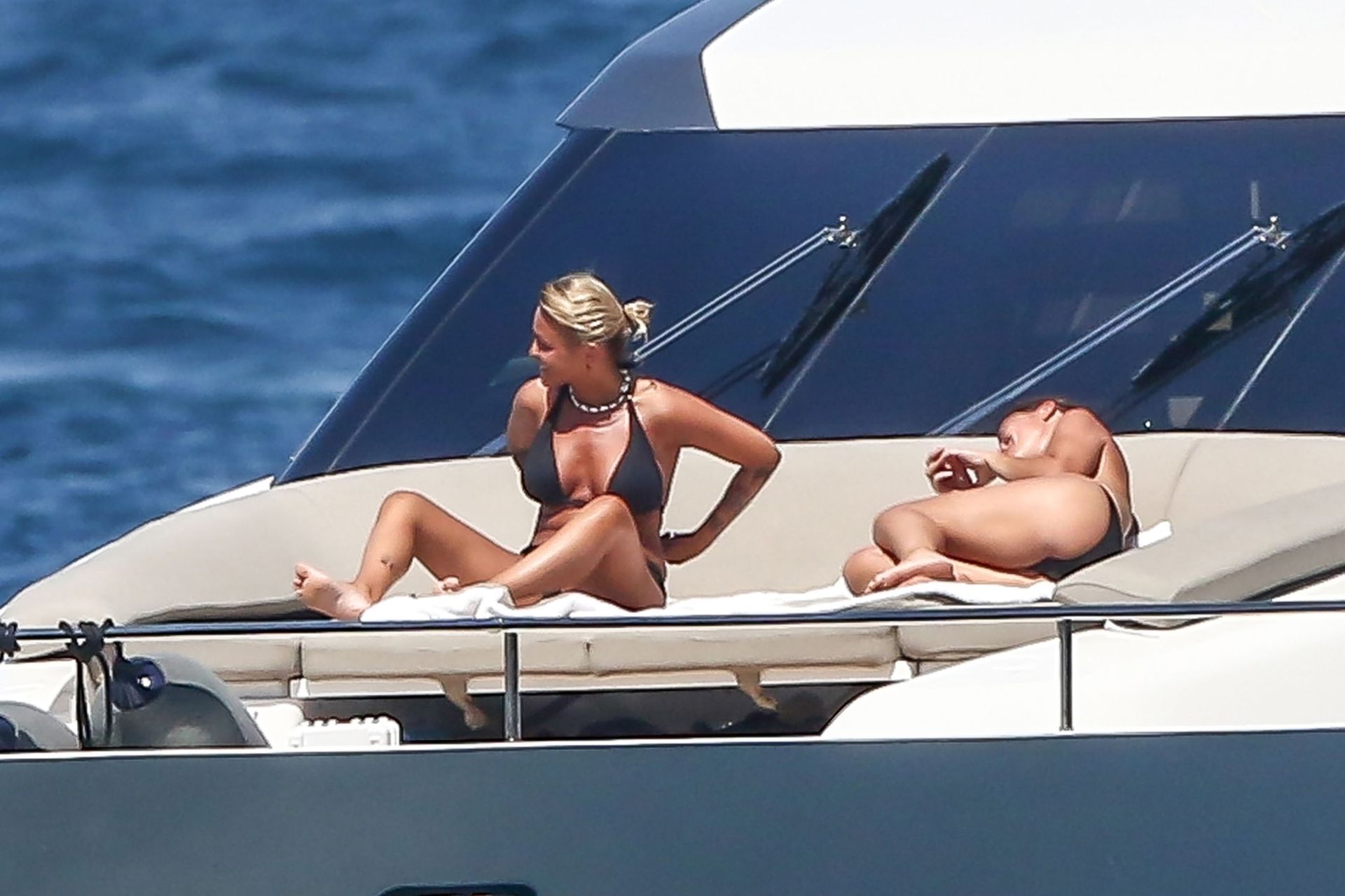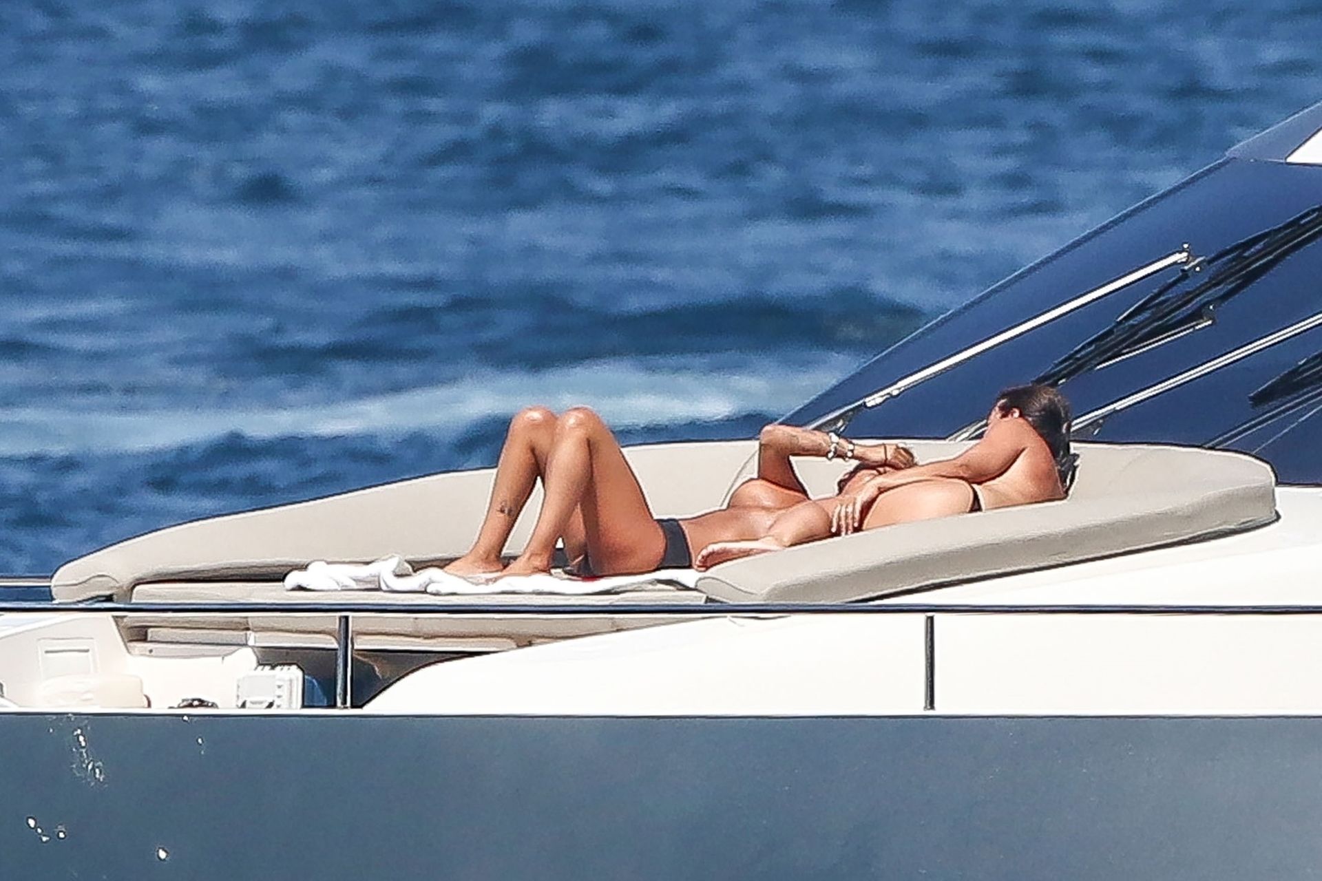 Silvio Berlusconi ex Francesca Pascale y la cantante Paola Turci se broncean y van sin parte superior en sus vacaciones bañadas por el sol en su yate de lujo en la Costiera Sorrentina en Italia, 13/08/2020.