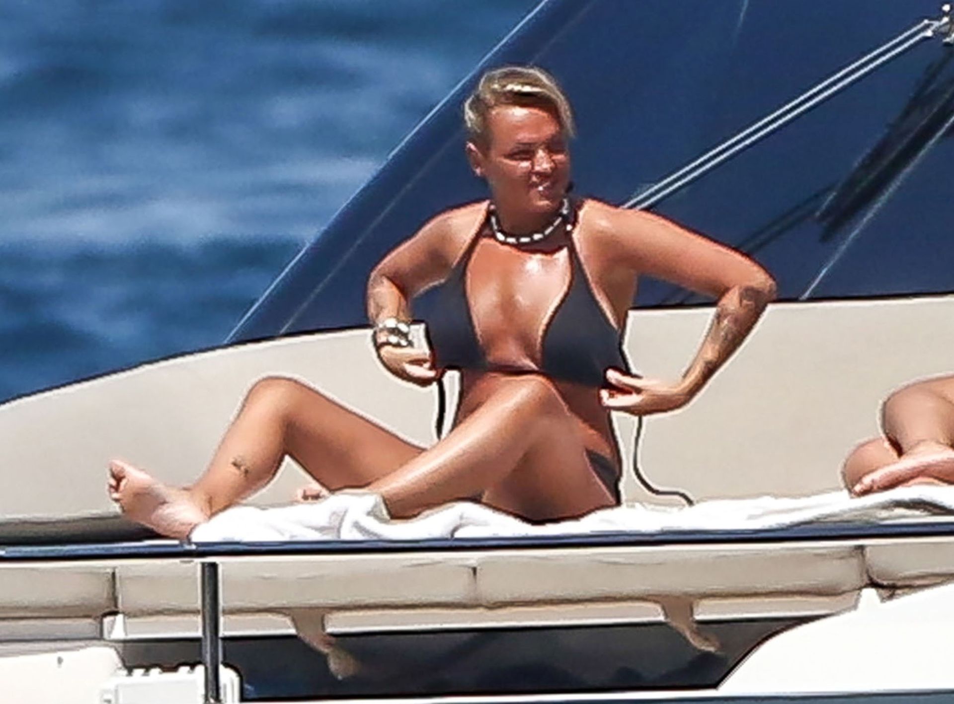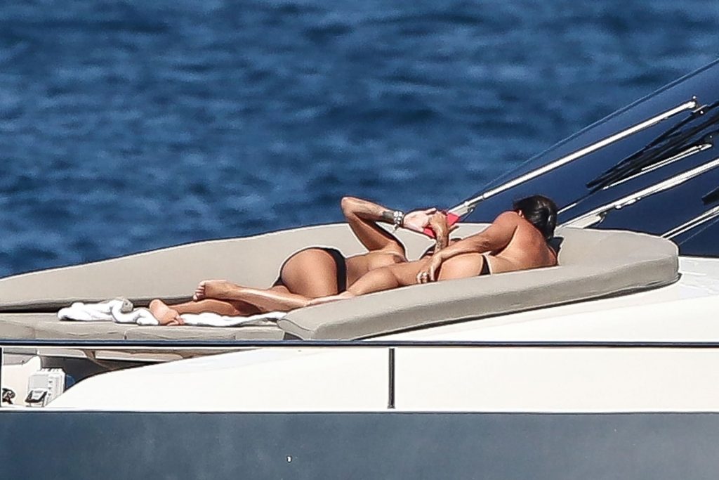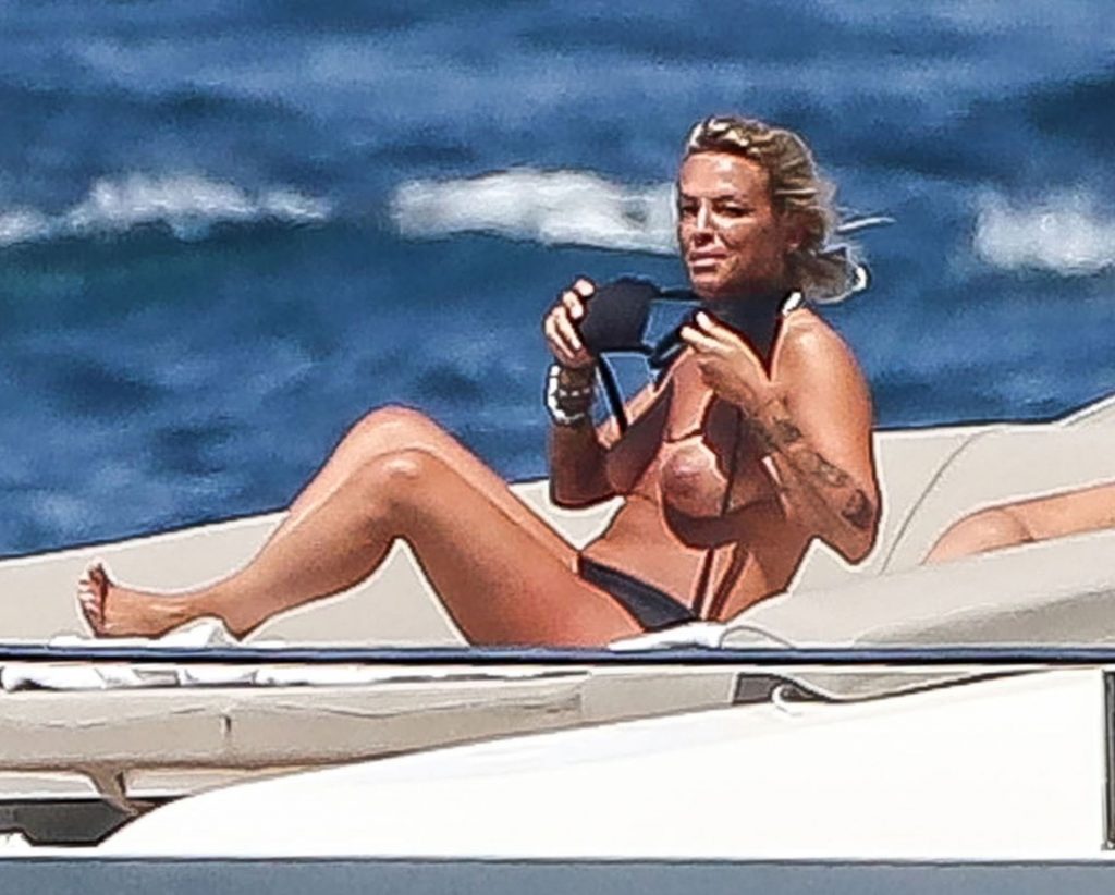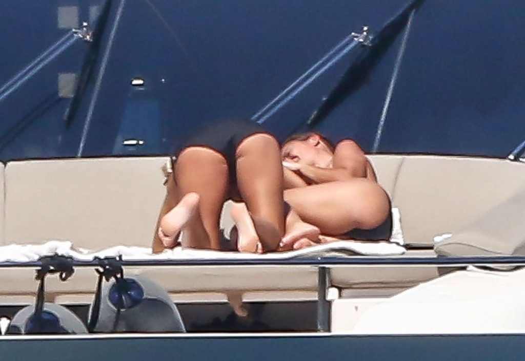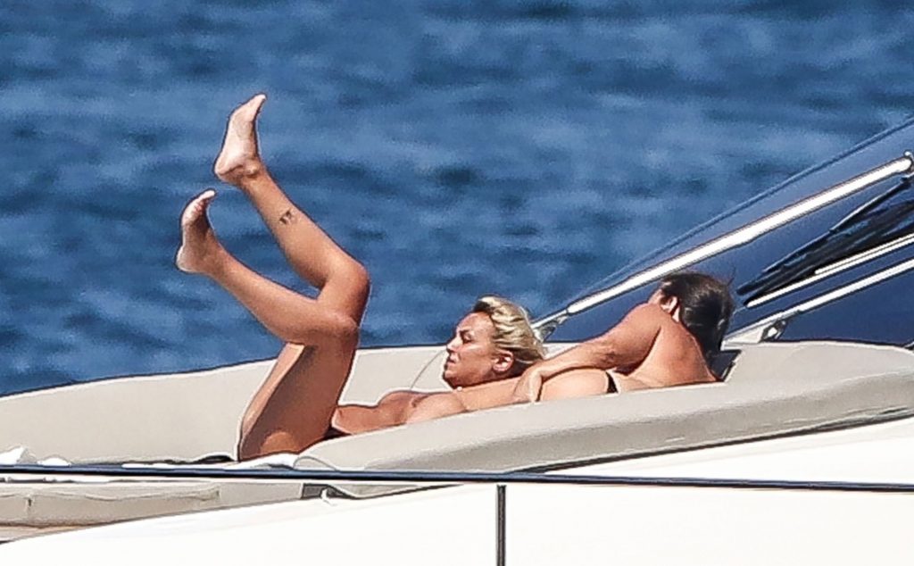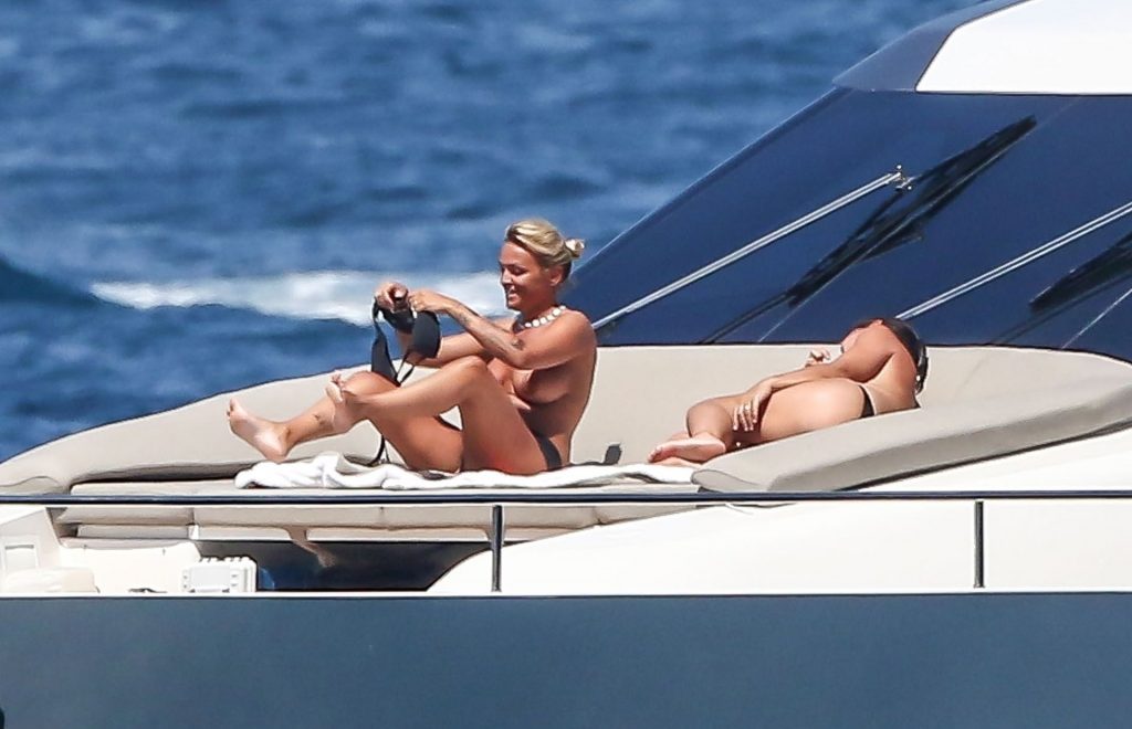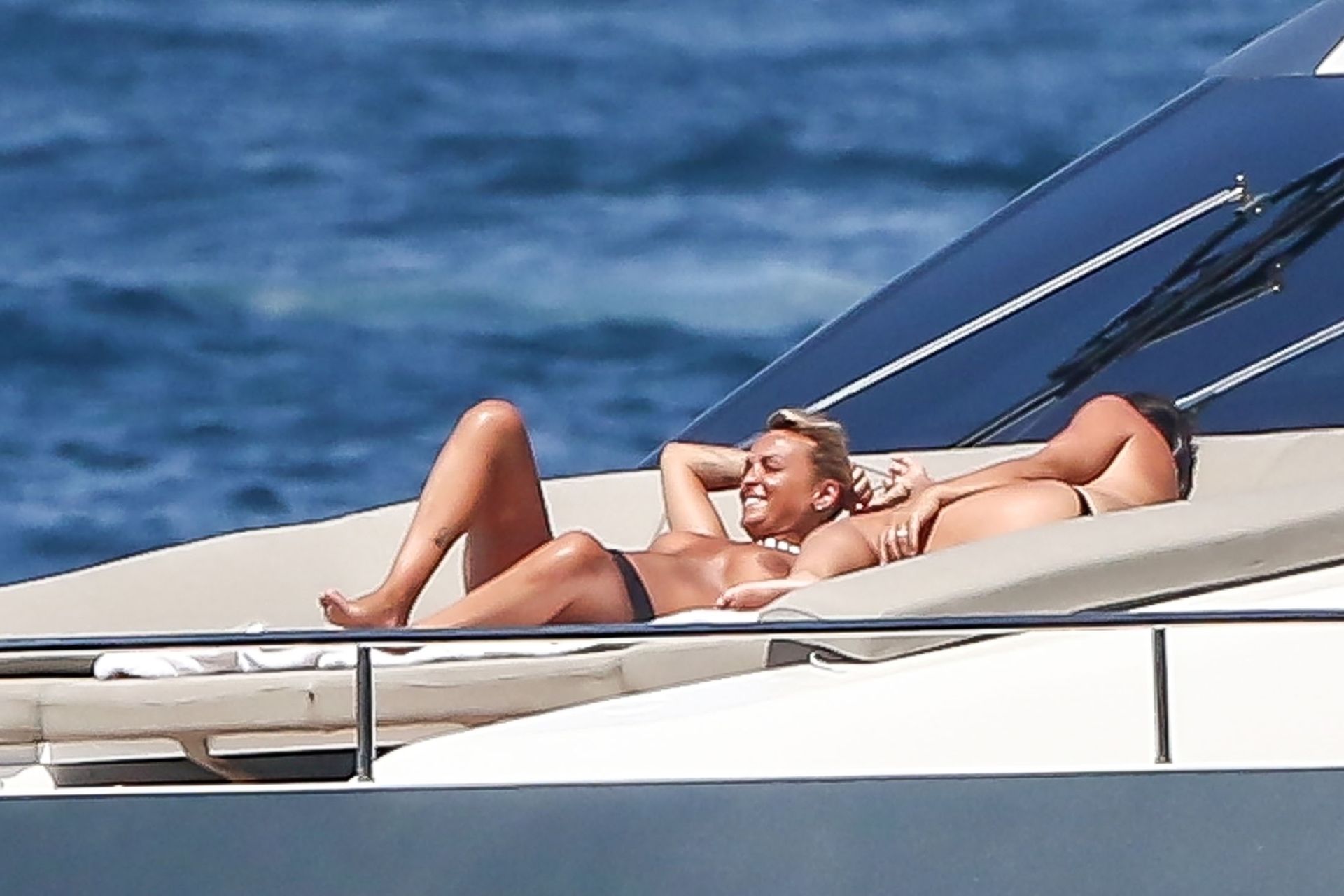 Silvio Berlusconi ex Francesca Pascale y la cantante Paola Turci se broncean y van sin parte superior en sus vacaciones bañadas por el sol en su yate de lujo en la Costiera Sorrentina en Italia, 13/08/2020.