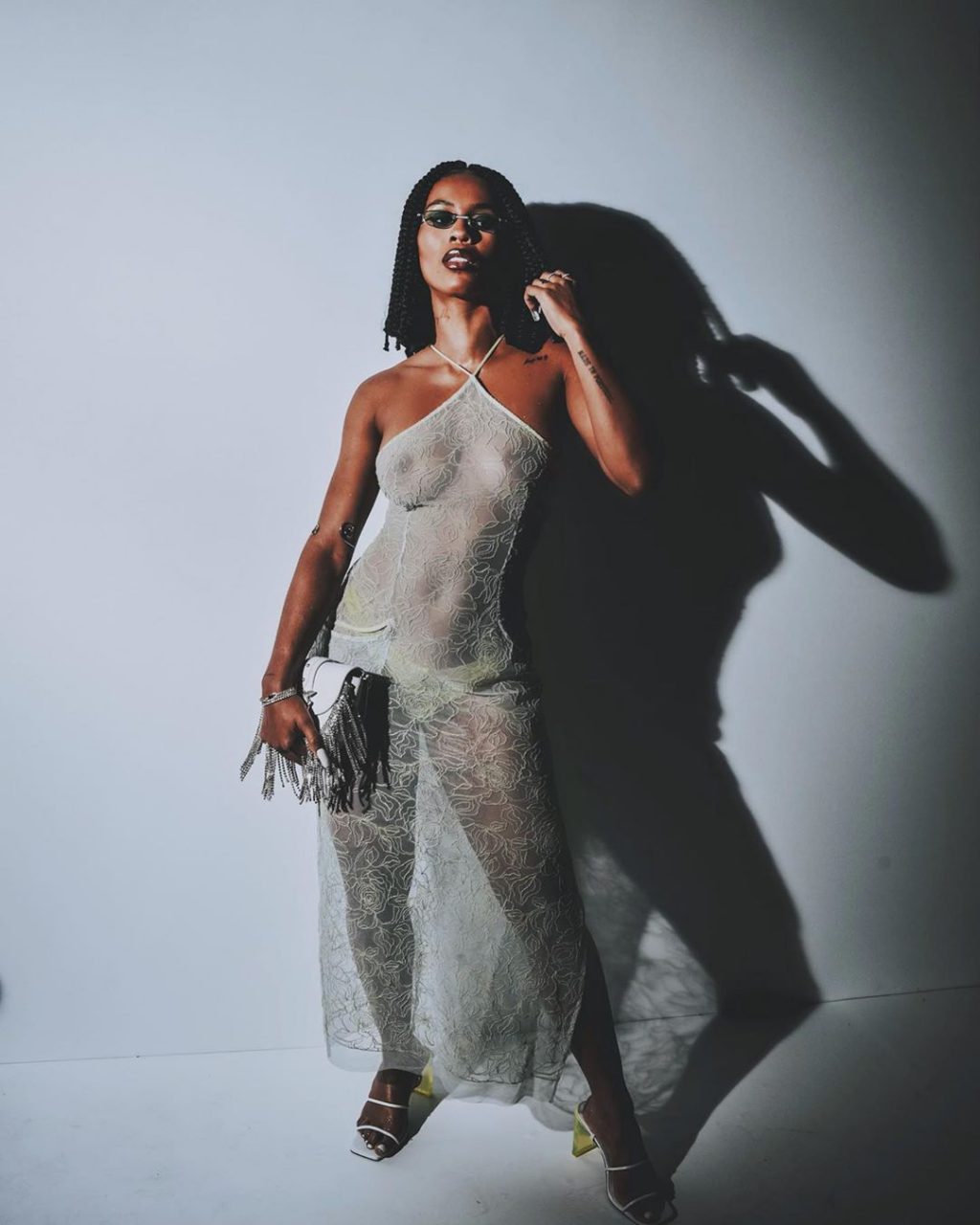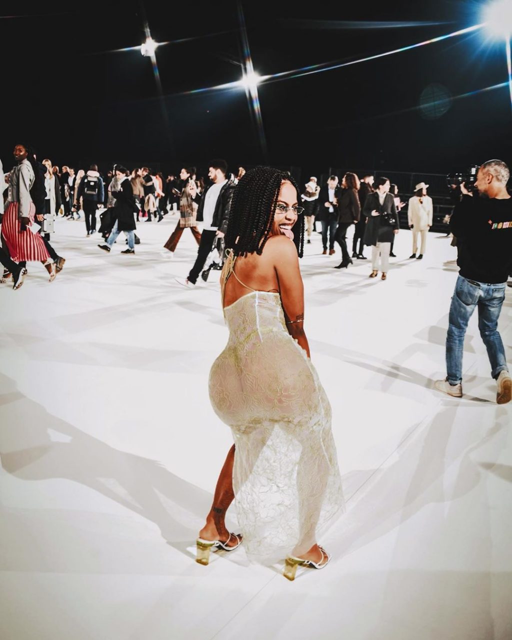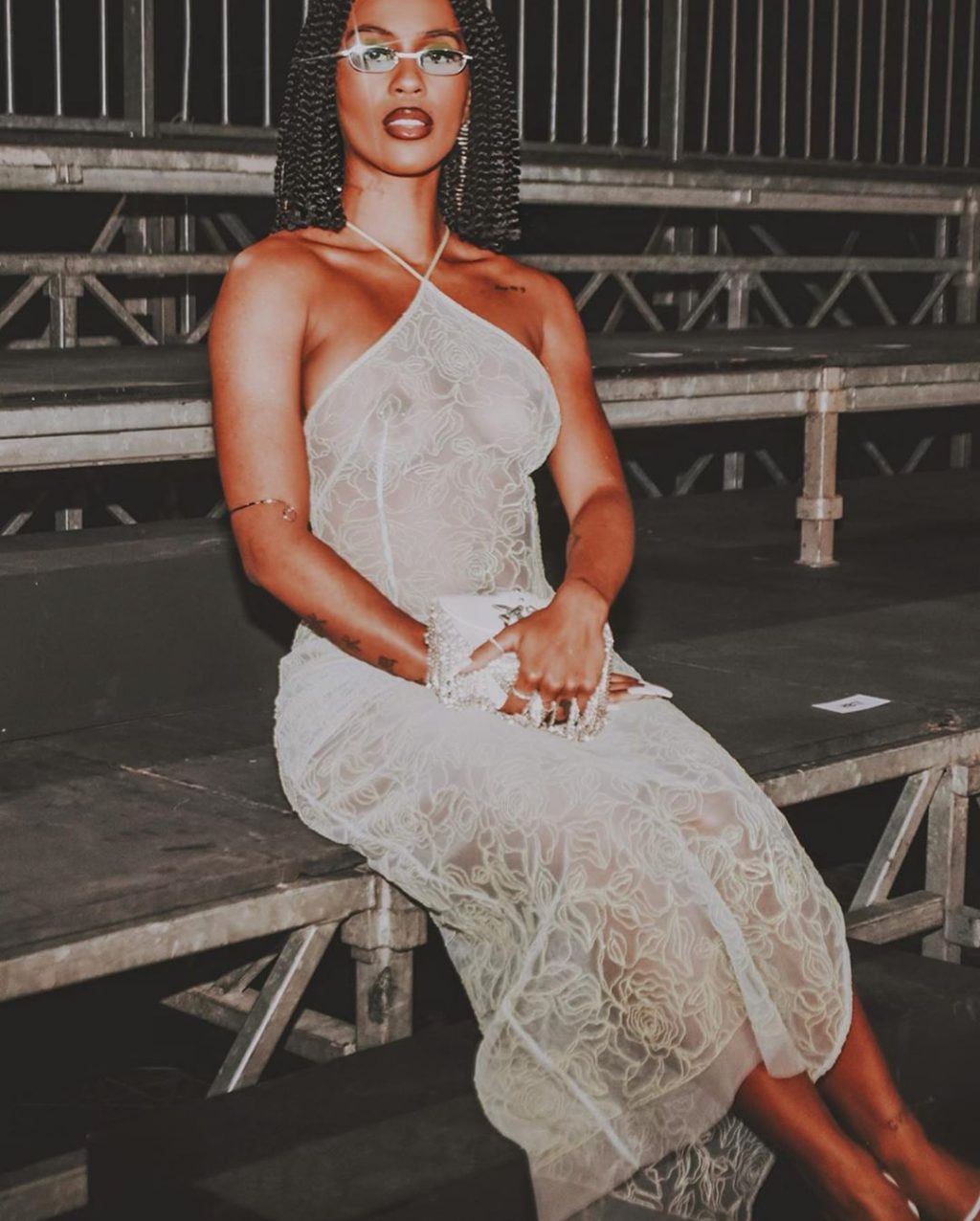 Cantante IAMDDB muestra sus pechos, vistiendo un vestido blanco transparente en el desfile de moda Jacquemu durante la Semana de la Moda de París – Instagram, 19/01/2020.