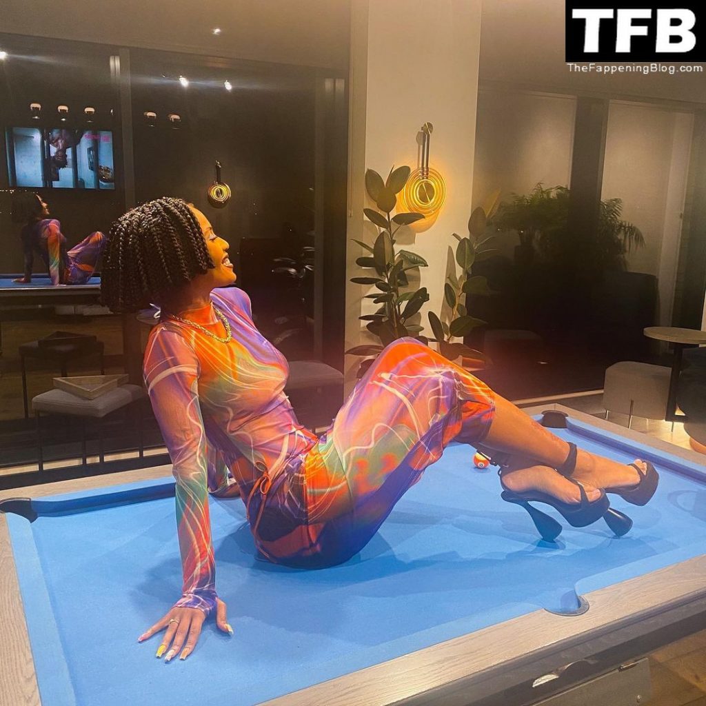 Consulta las fotos ligeramente desnudas, transparentes, sin camiseta y sexys de IAMDDB en Instagram, mostrando sus pechos naturales y su trasero redondo.