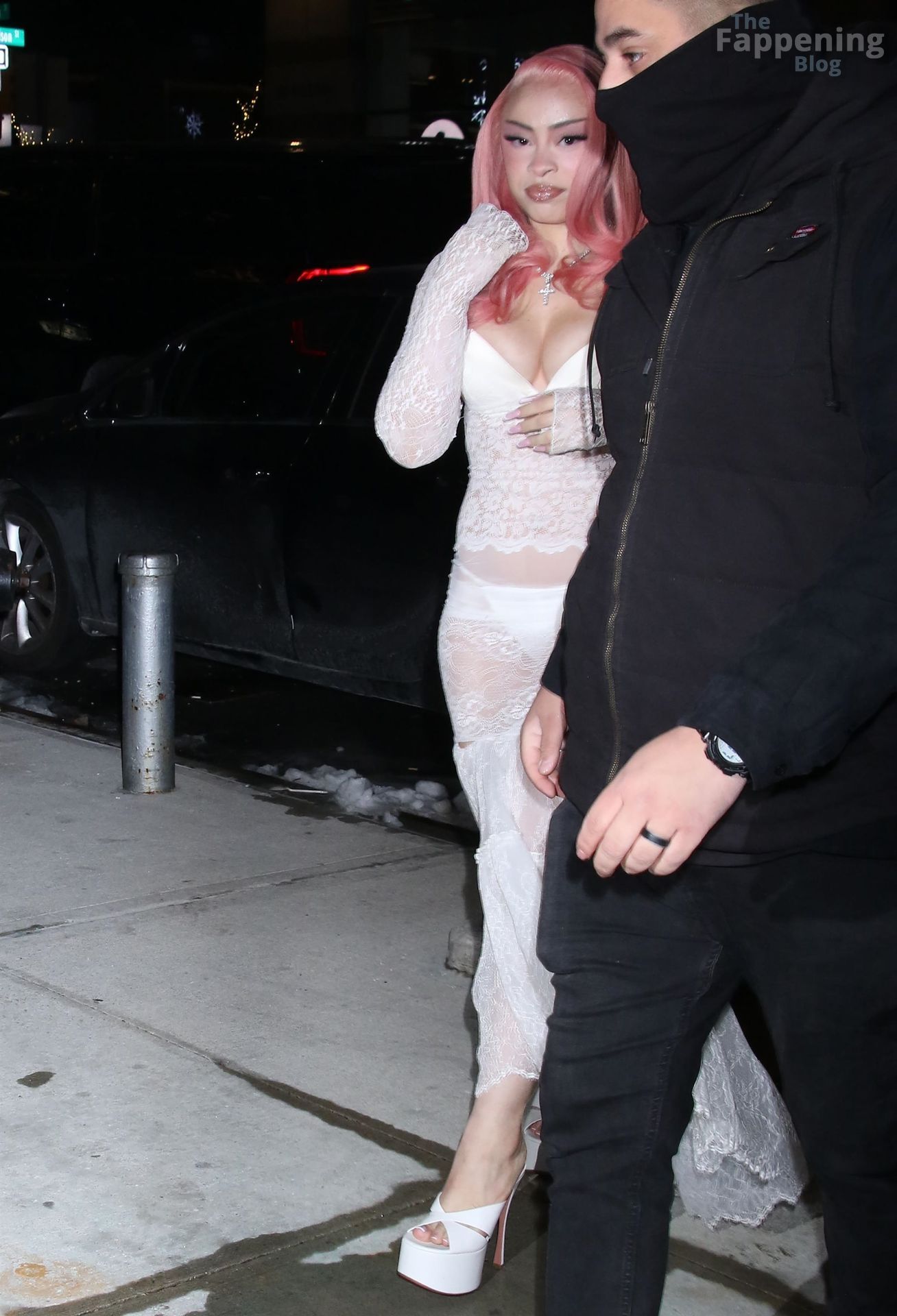 La rapera Ice Spice aparece con un vestido de encaje en Watch What Happens Live con Andy Cohen.