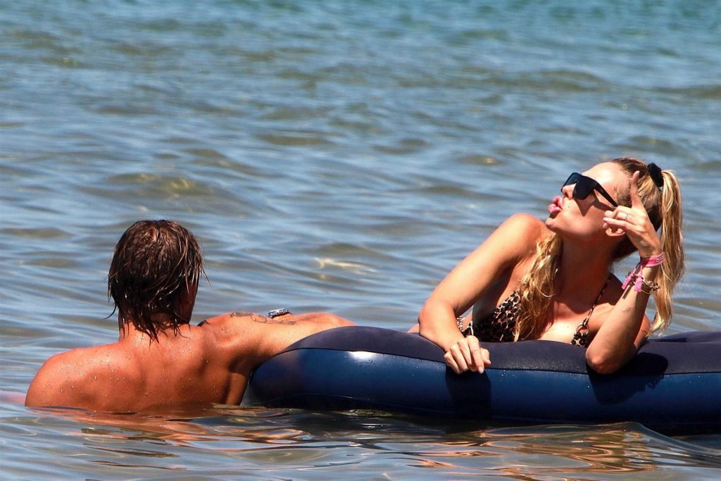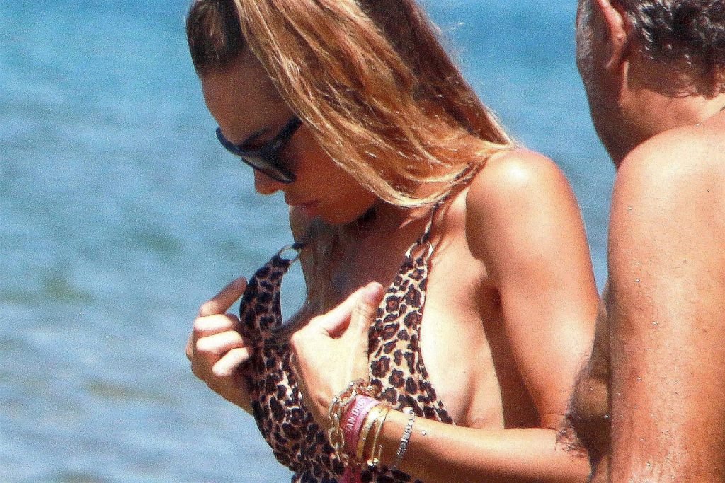 Futbolista italiano y leyenda de la Roma Francesco Totti y su esposa Ilary Blasi fueron vistos de vacaciones familiares en el Mar de Sabaudia, 24/07/2019.