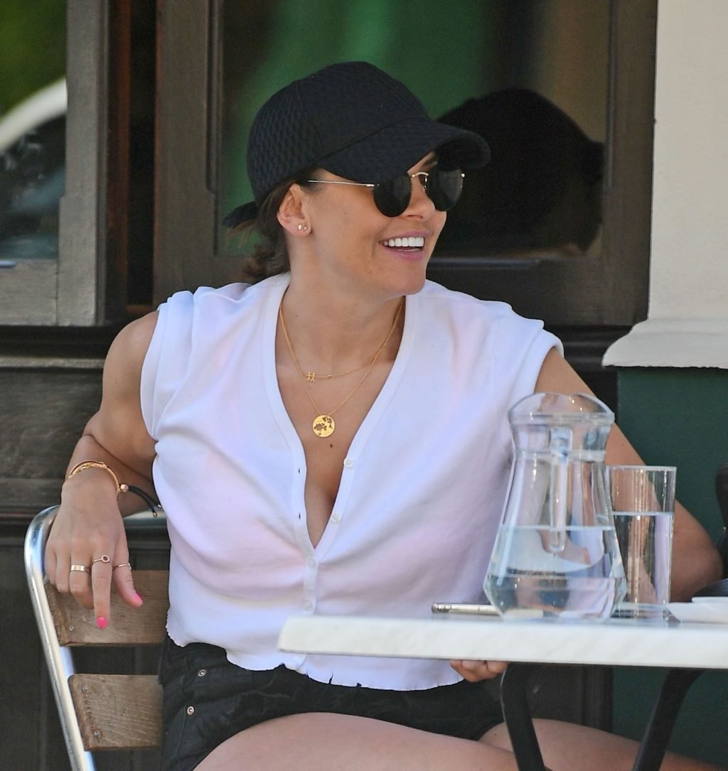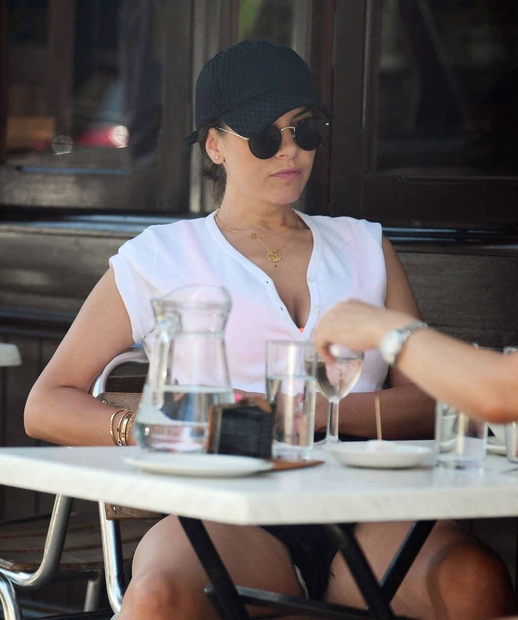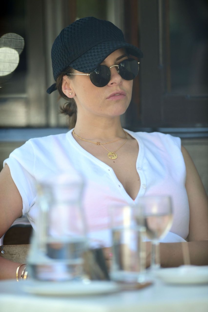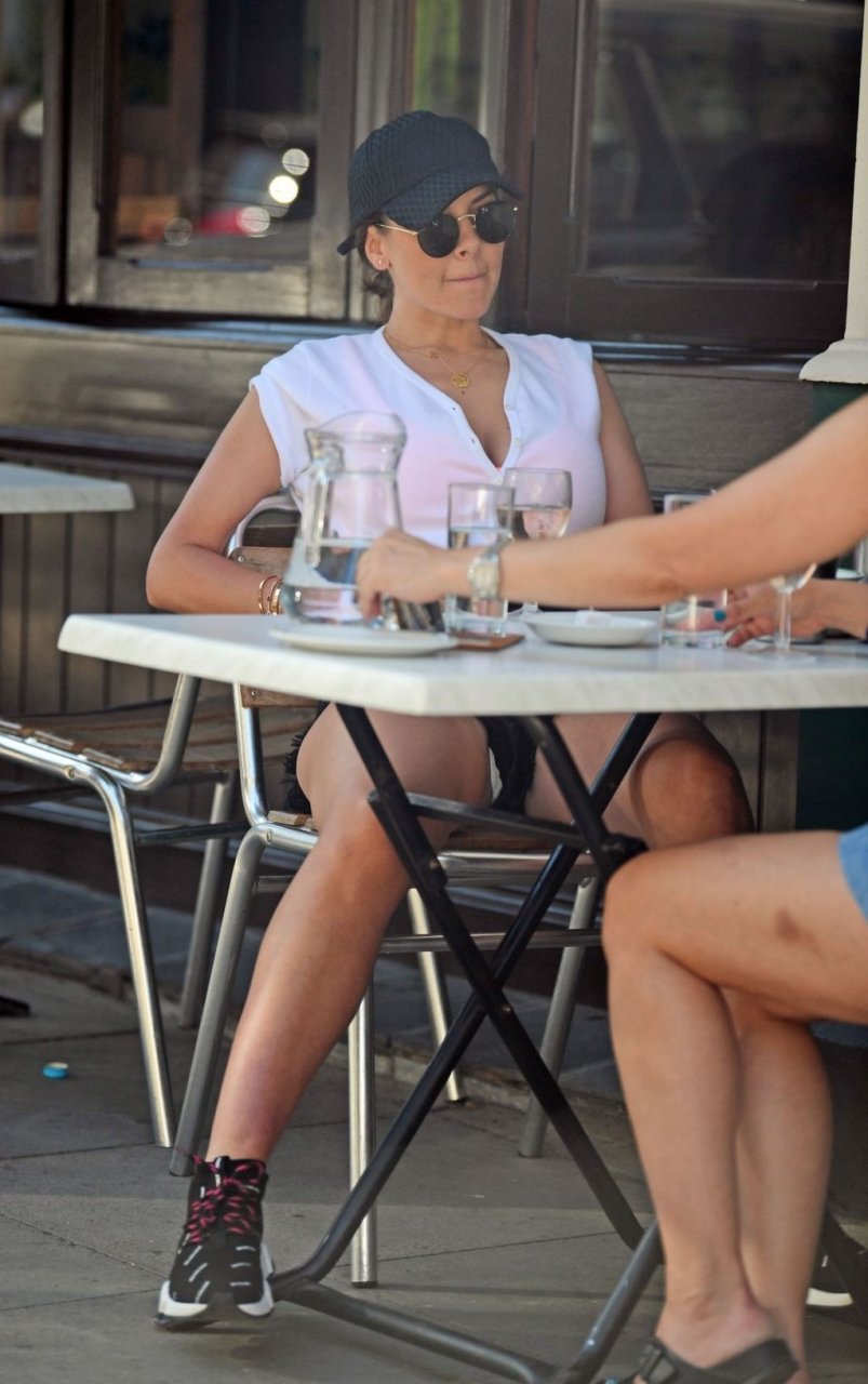 Ex estrella de “Big Brother”, la atractiva y sexy Imogen Thomas mostrando algunas poses sexys y seductoras y coqueteando con un poco de escote en Primrose Hill mientras come helado y bebe vino, 07/04/2019.