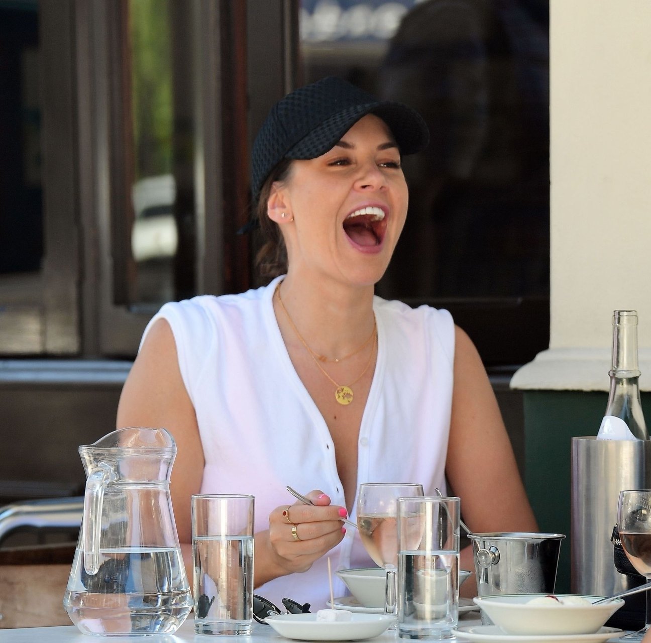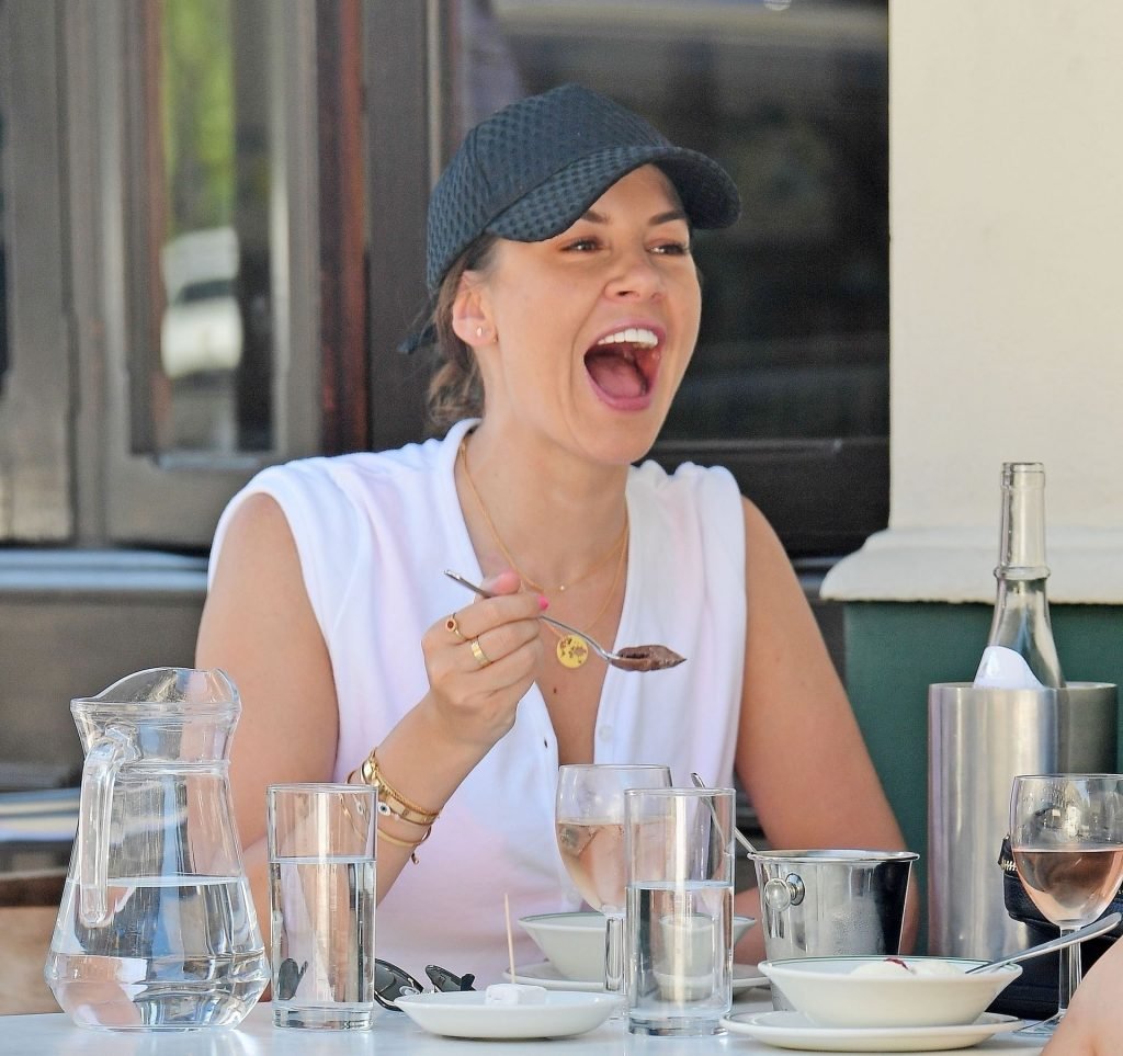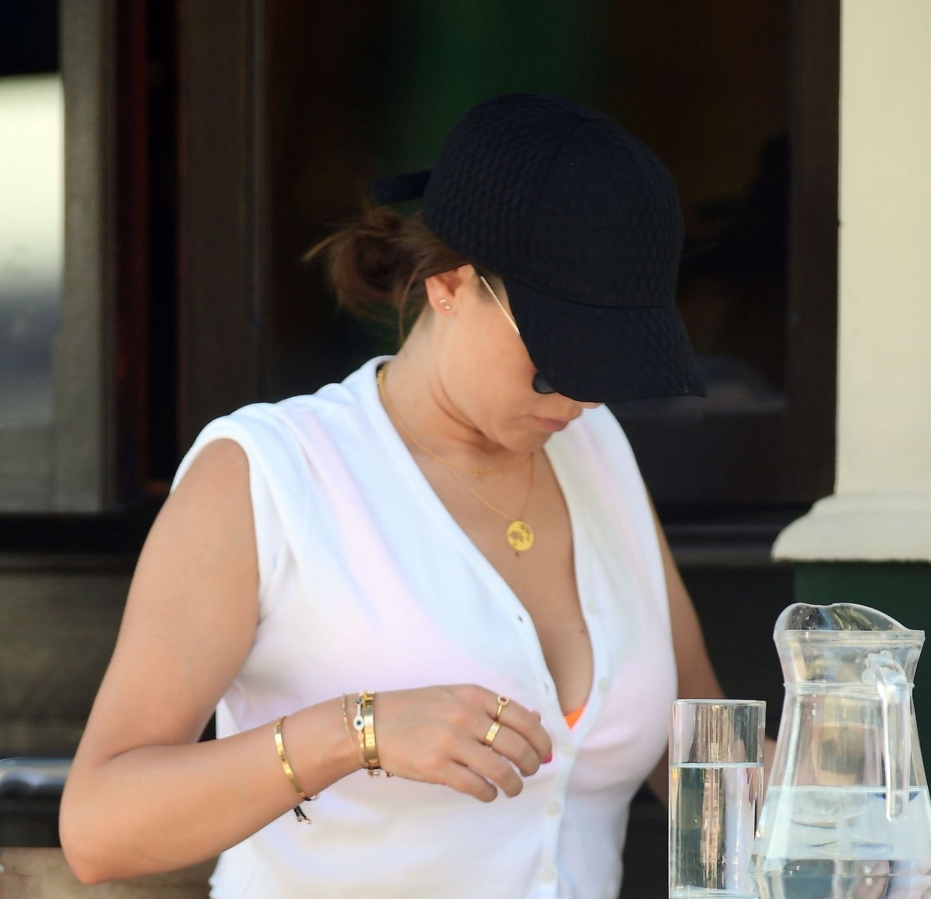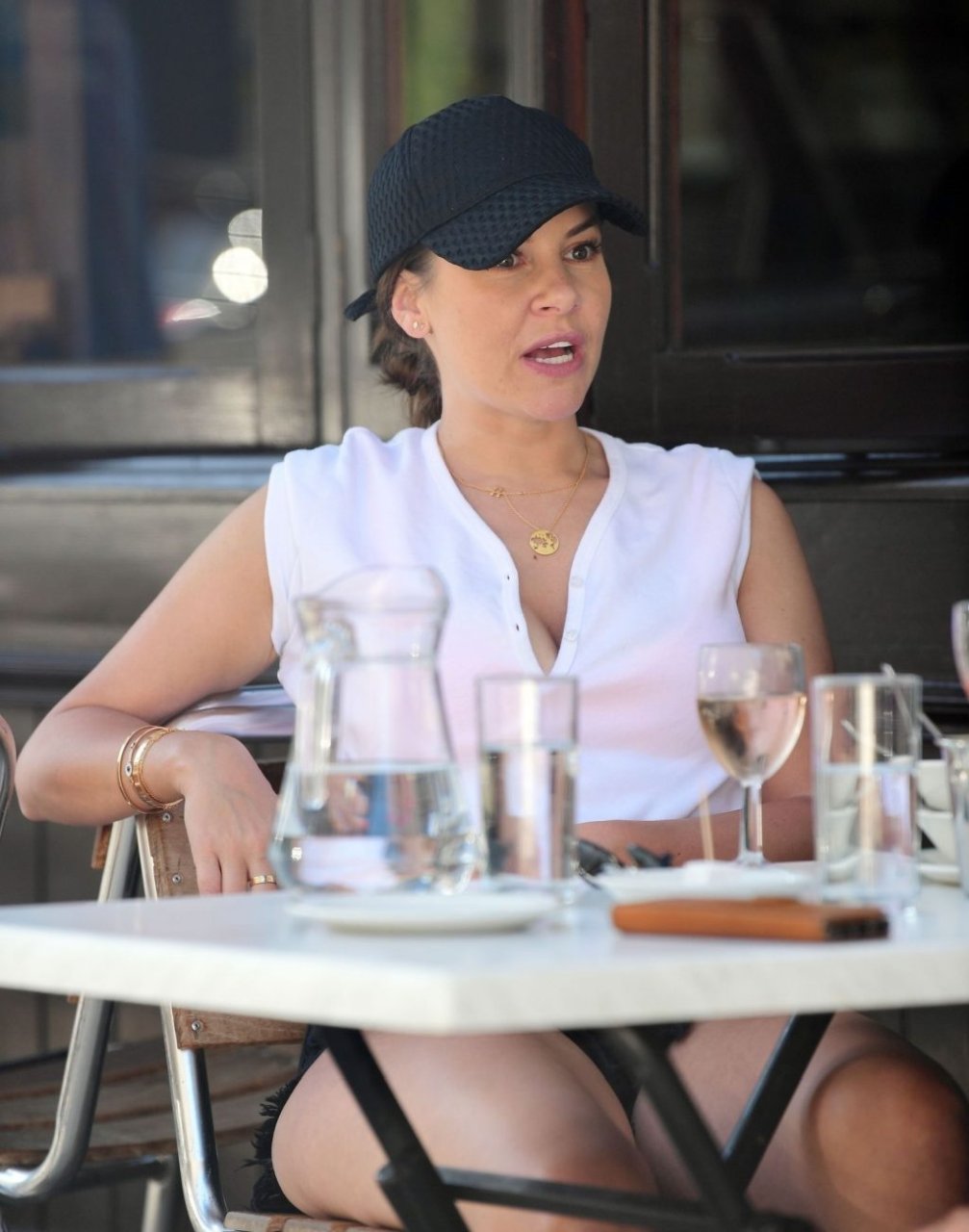 Ex estrella de “Big Brother”, la atractiva y sexy Imogen Thomas mostrando algunas poses sexys y seductoras y coqueteando con un poco de escote en Primrose Hill mientras come helado y bebe vino, 07/04/2019.