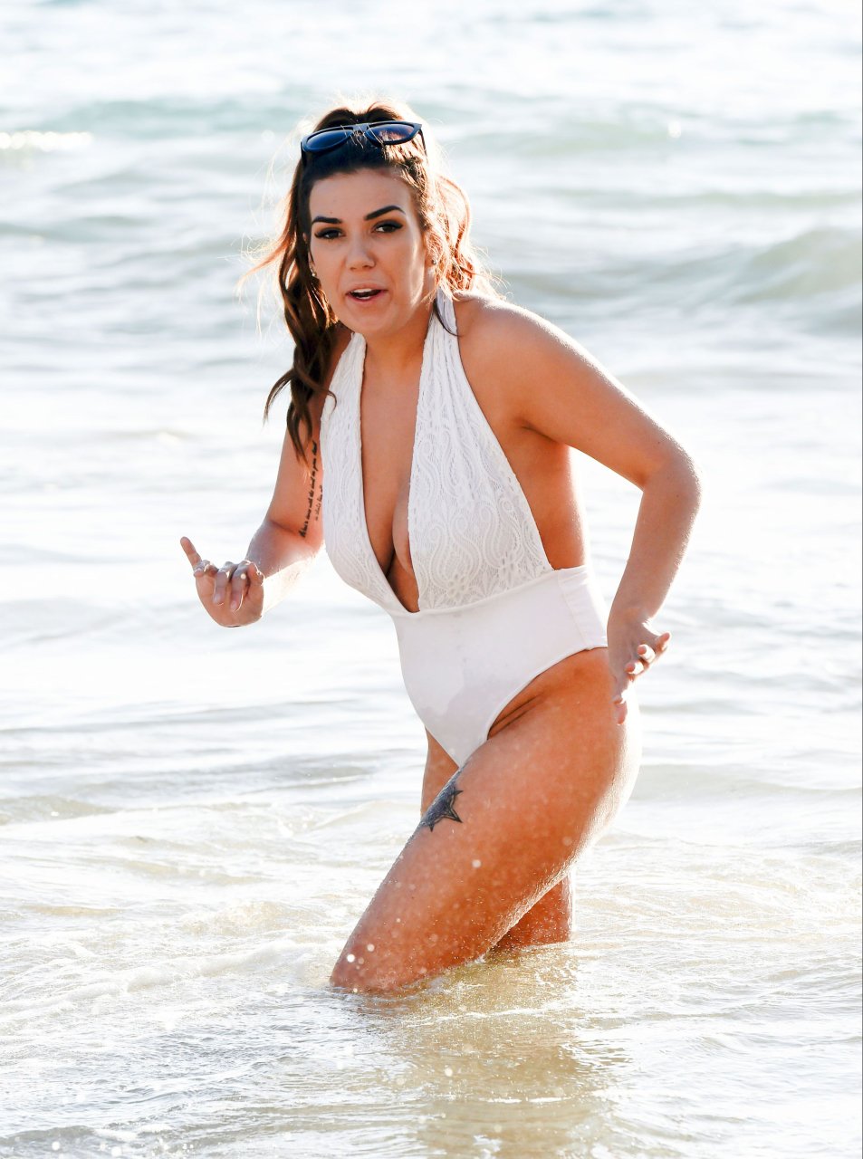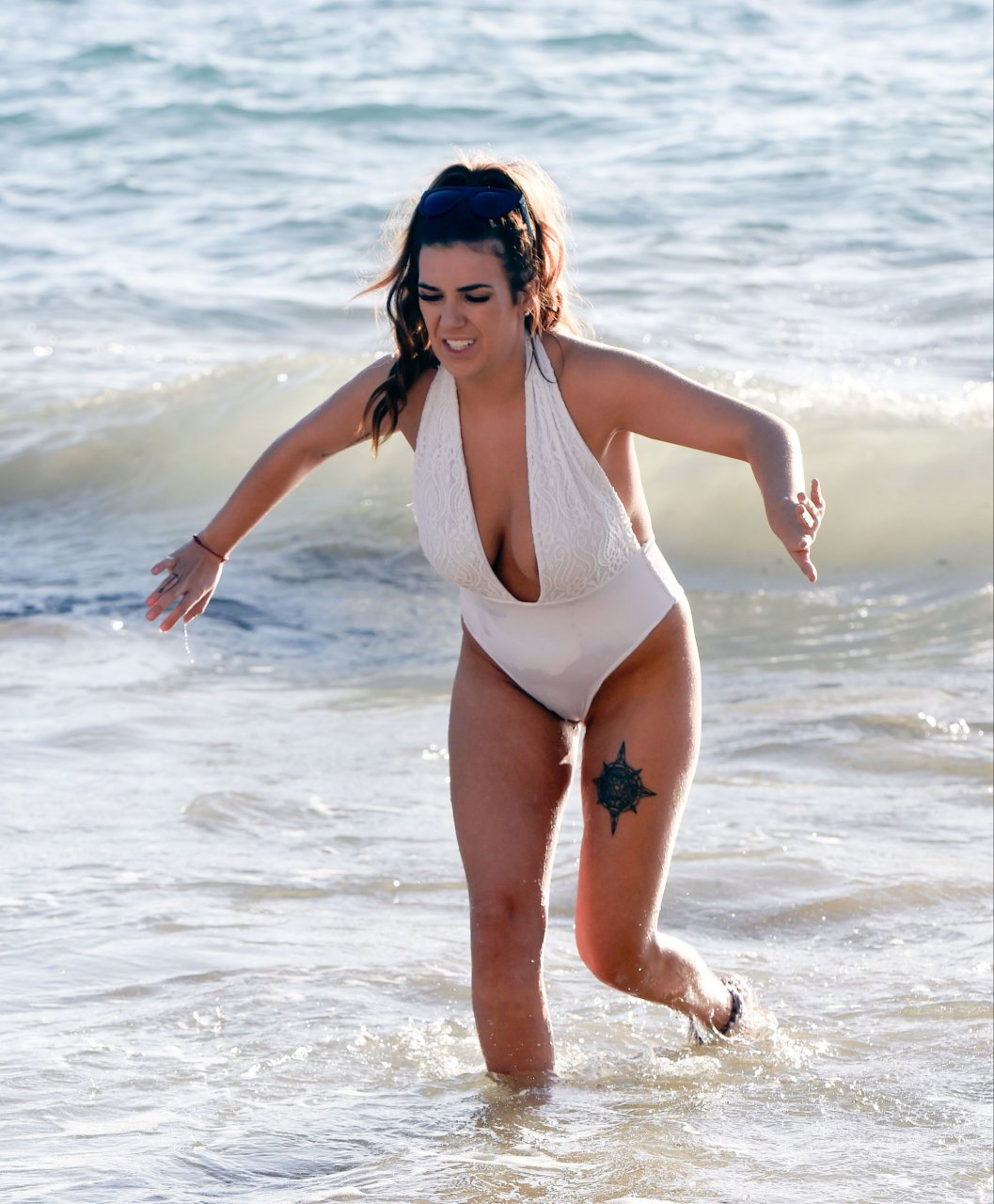 Imogen Townley lleva un traje de baño blanco y muestra un perfecto sideboob durante sus vacaciones en la playa en España, 13/01/2017. Imogen Townley es una estrella británica de reality. Edad: 24 (19 de marzo de 1992).