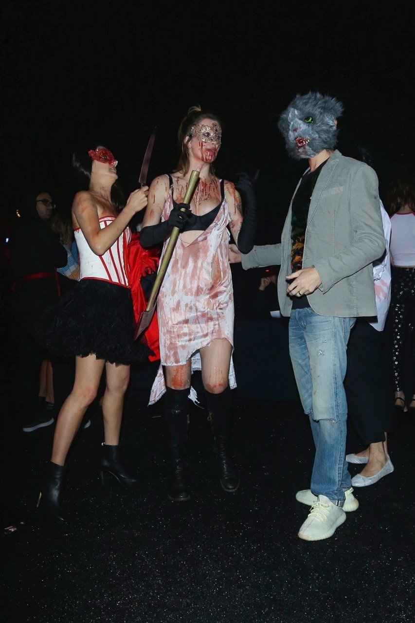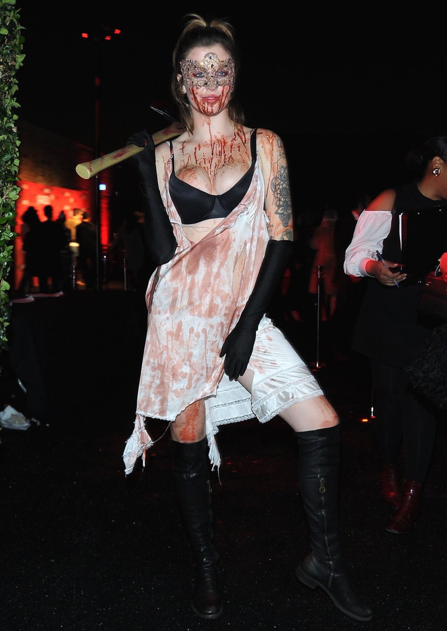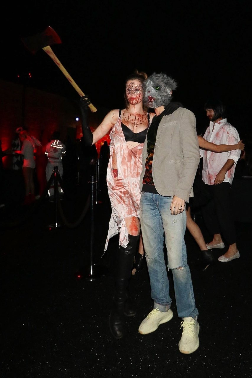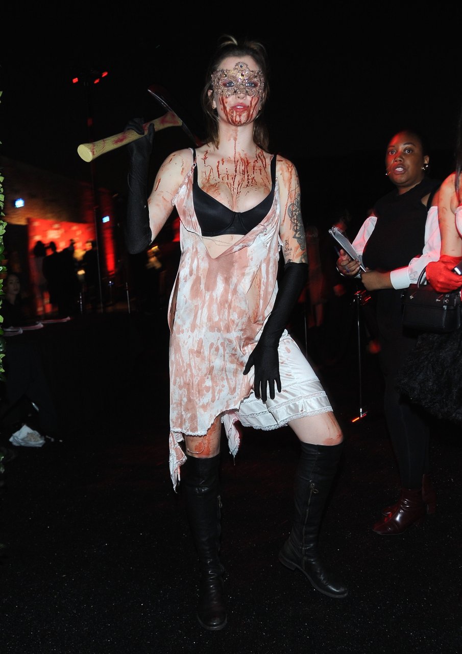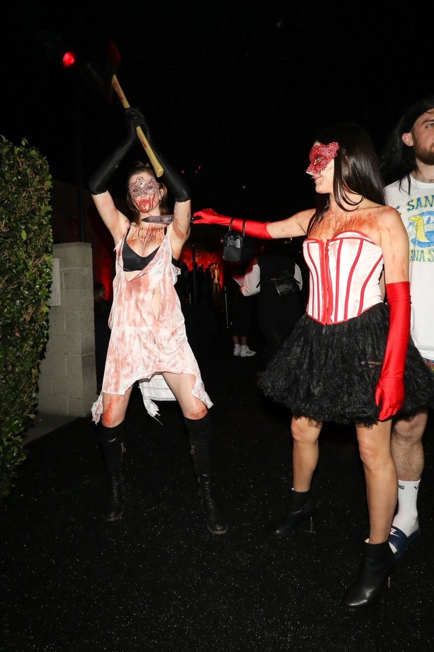 La modelo Ireland Baldwin fue vista llegando a la fiesta de Halloween de Just Jared en West Hollywood, 28/10/2018. Ireland estaba disfrazada de asesina con hacha ensangrentada para Halloween.