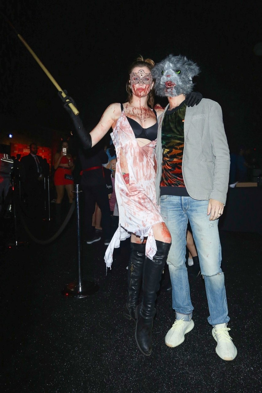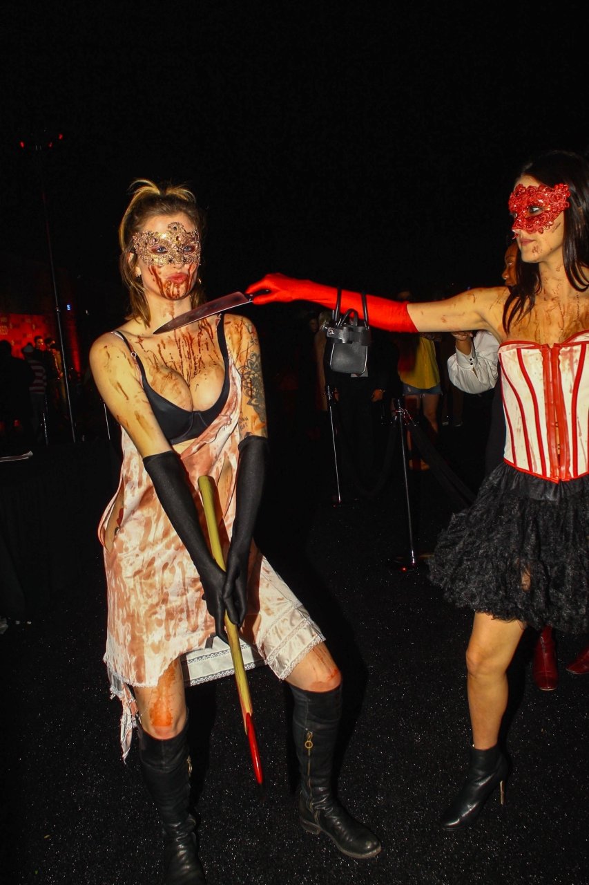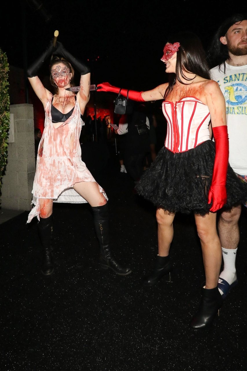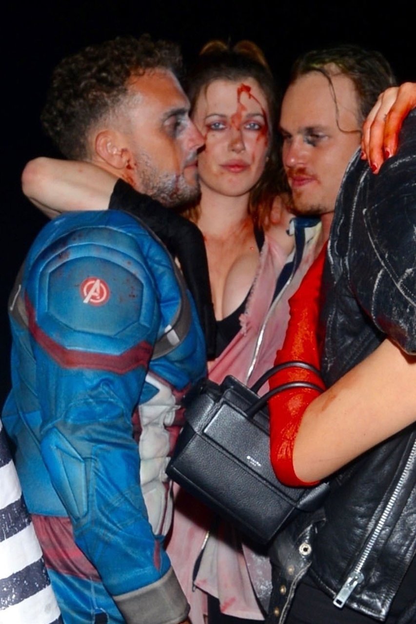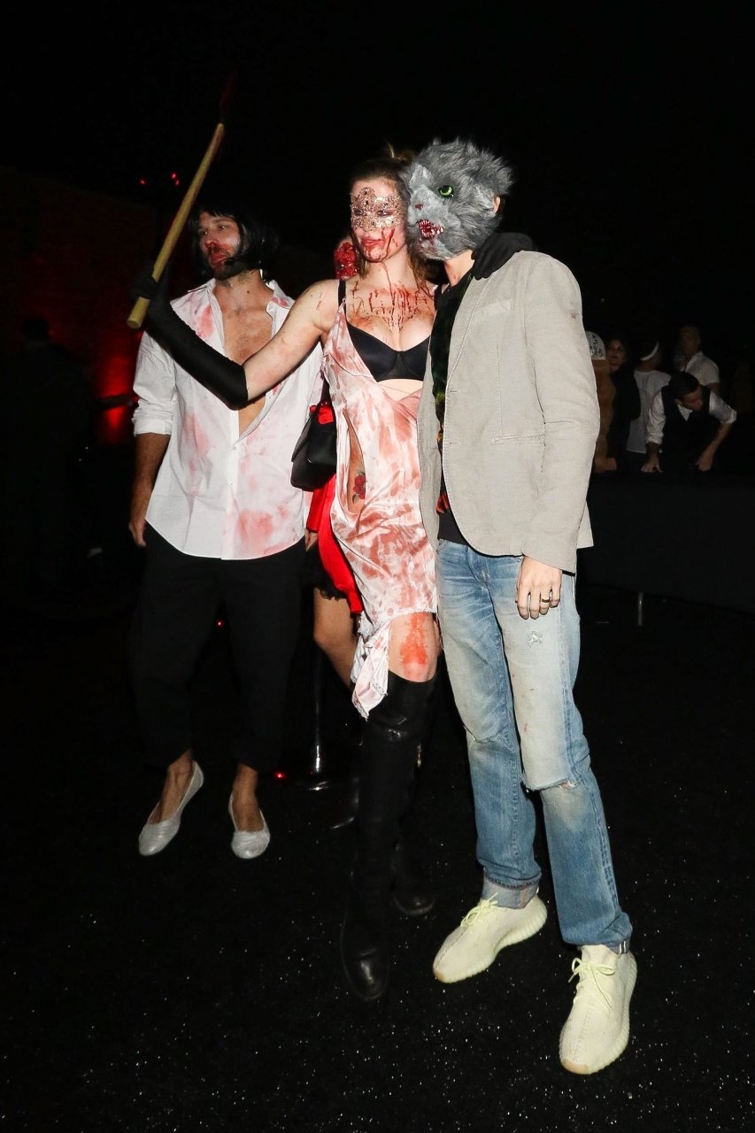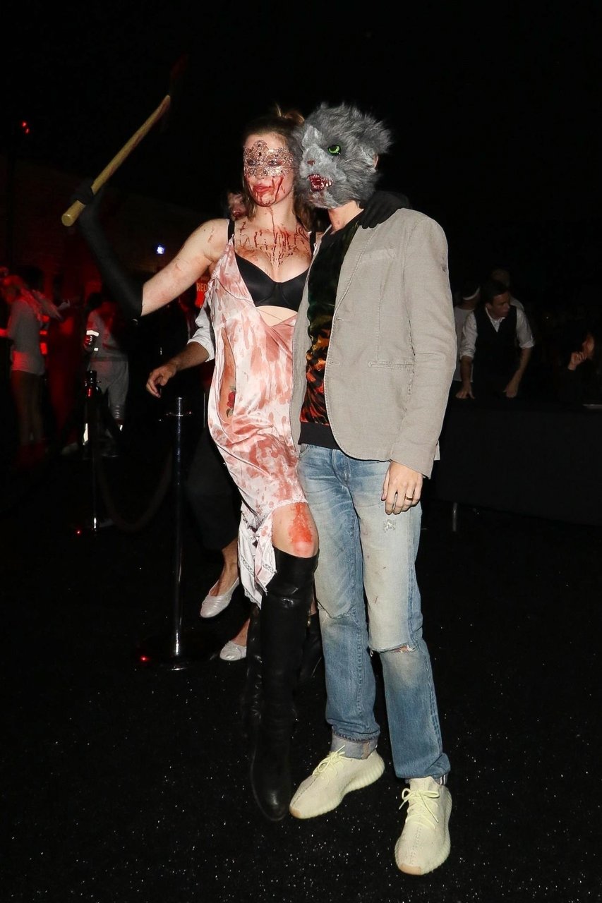 La modelo Ireland Baldwin fue vista llegando a la fiesta de Halloween de Just Jared en West Hollywood, 28/10/2018. Ireland estaba disfrazada de asesina con hacha ensangrentada para Halloween.