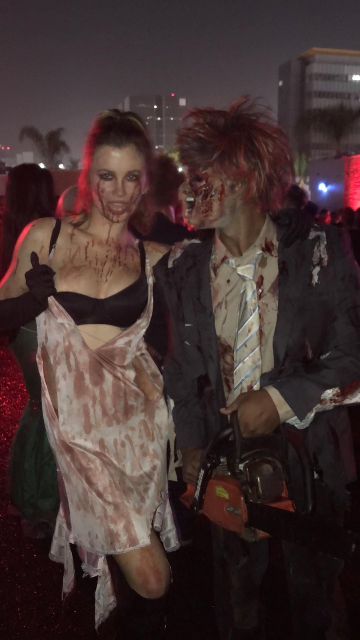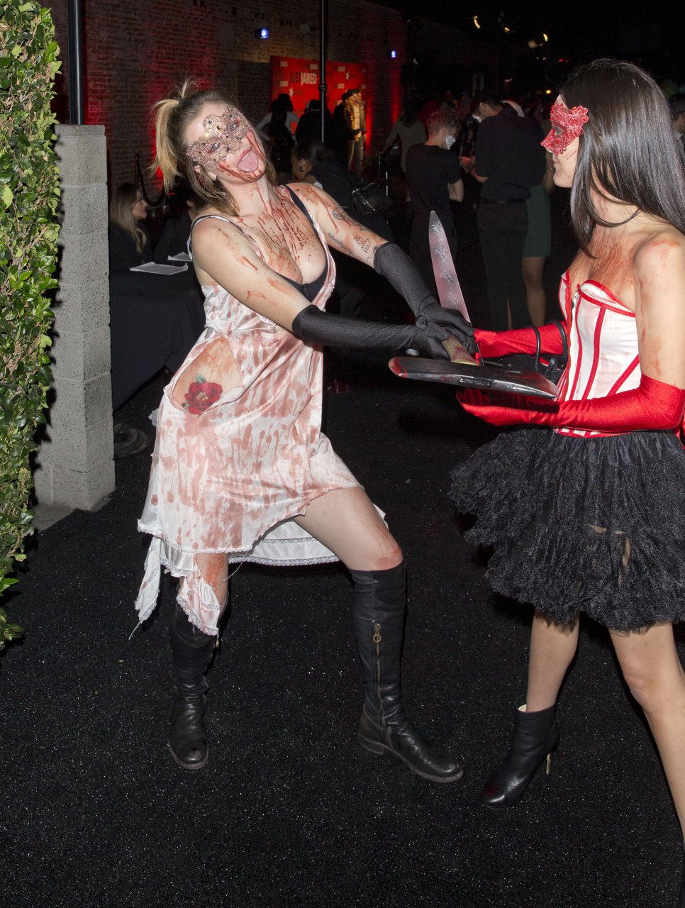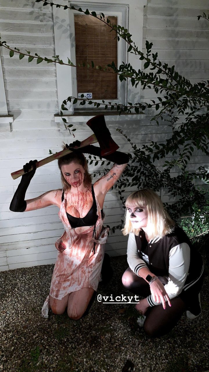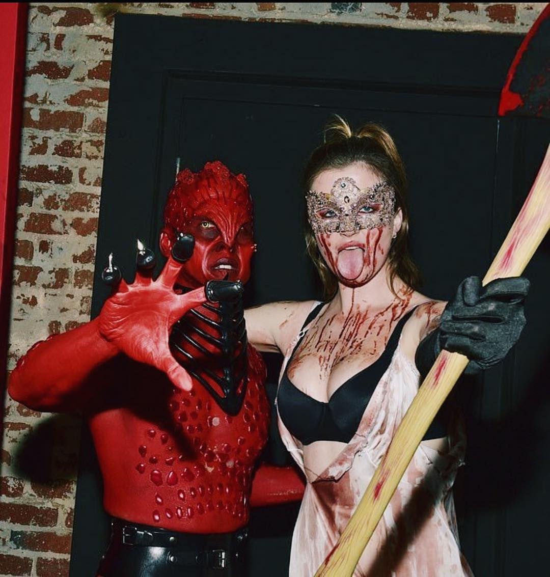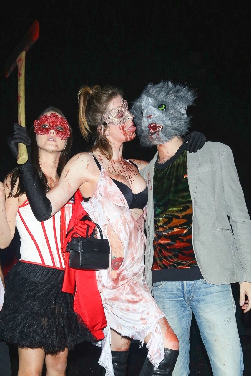 La modelo Ireland Baldwin fue vista llegando a la fiesta de Halloween de Just Jared en West Hollywood, 28/10/2018. Ireland estaba disfrazada de asesina con hacha ensangrentada para Halloween.