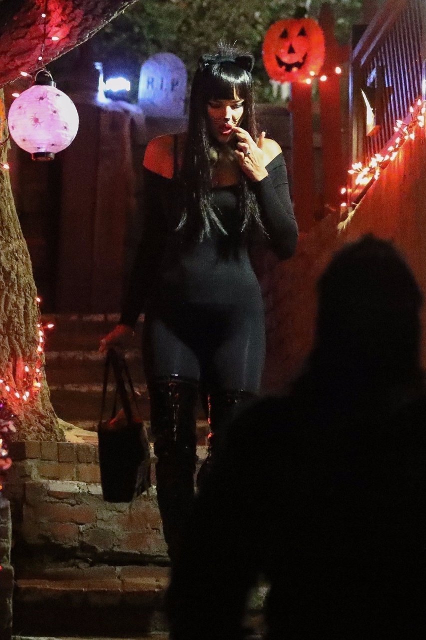 La modelo rusa Irina Shayk (31) fue vista con un sexy catsuit yendo a pedir dulces en Brentwood, 31/10/2017.