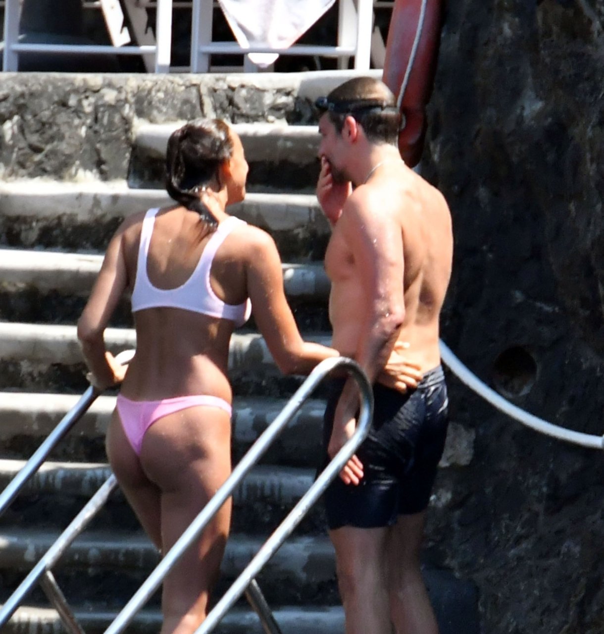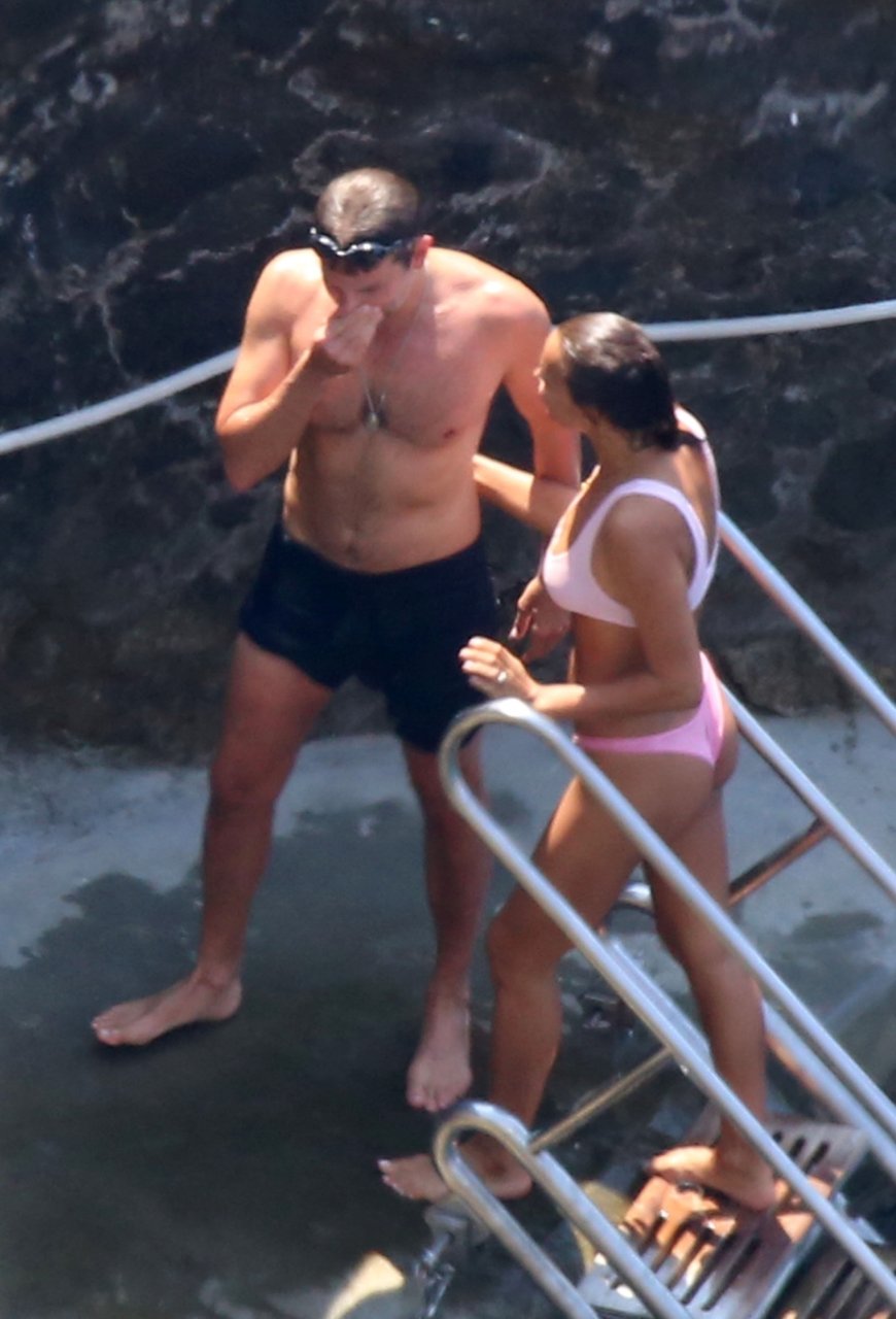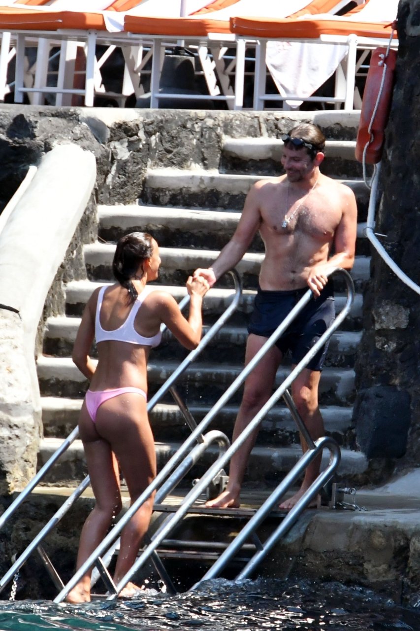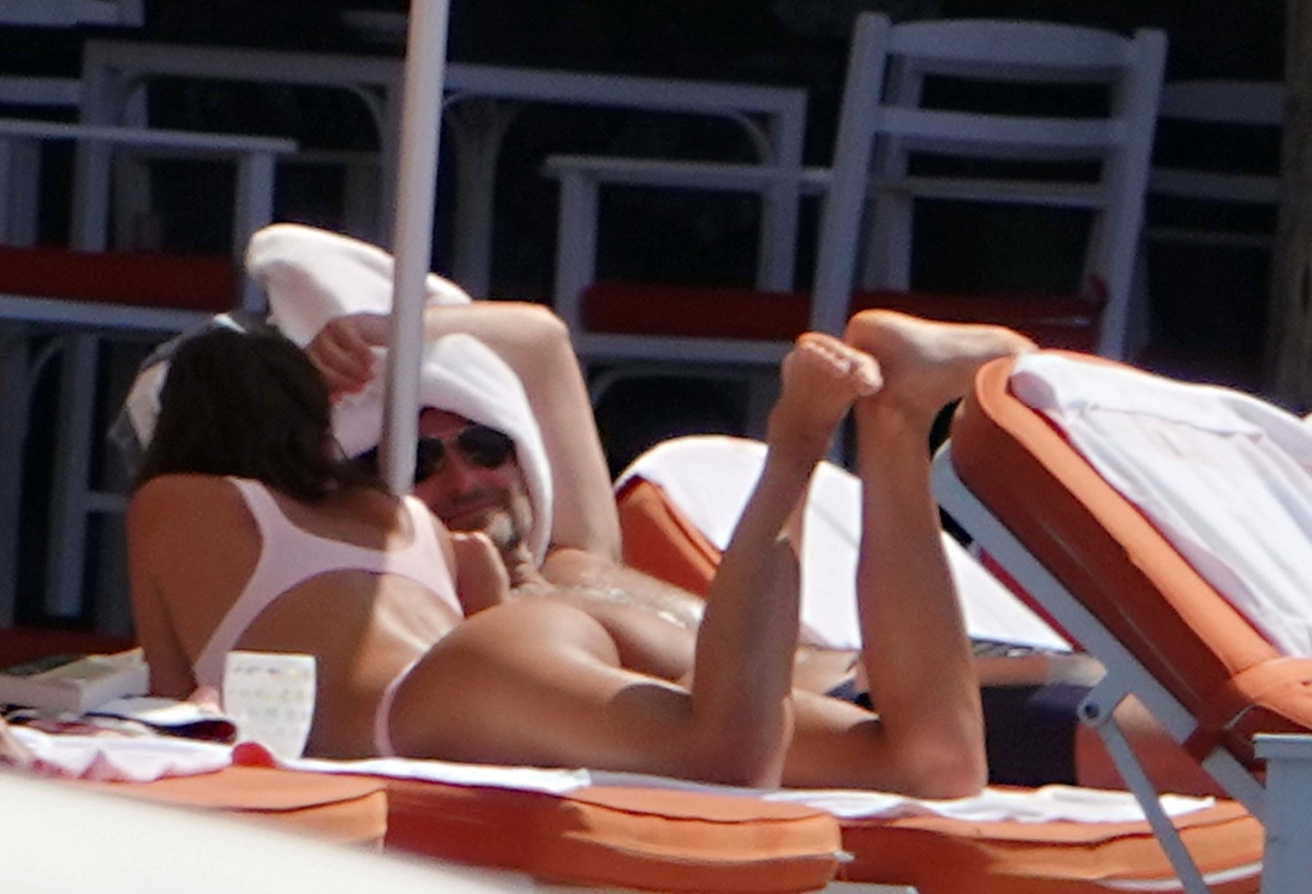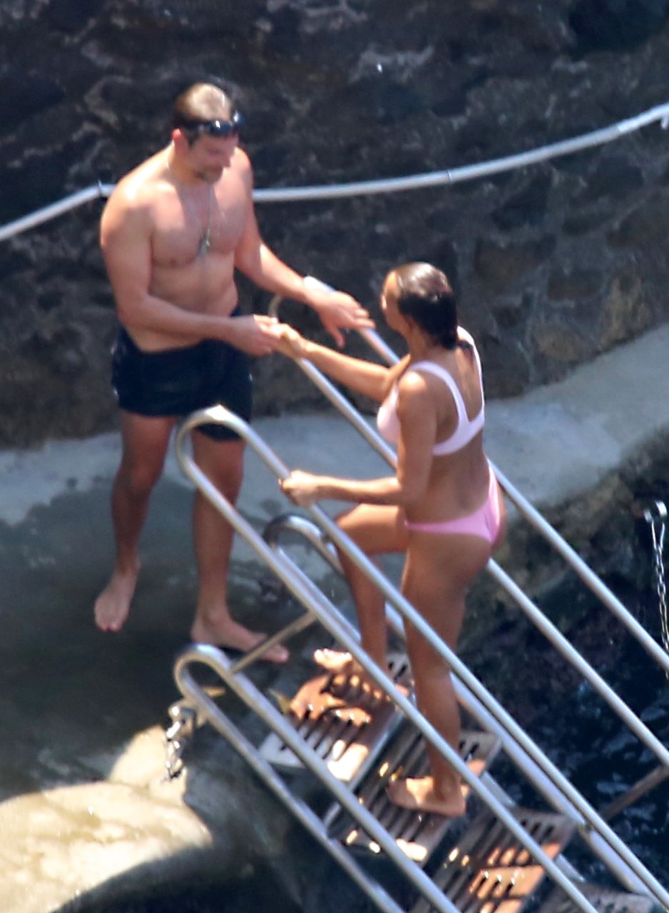 La feliz pareja fue vista nadando juntos en el mar azul turquesa antes de tomar el sol juntos disfrutando del sol. En un momento, Irina juguetonamente toca el trasero de Bradley, lo cual él encontró divertido.