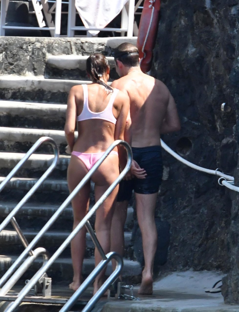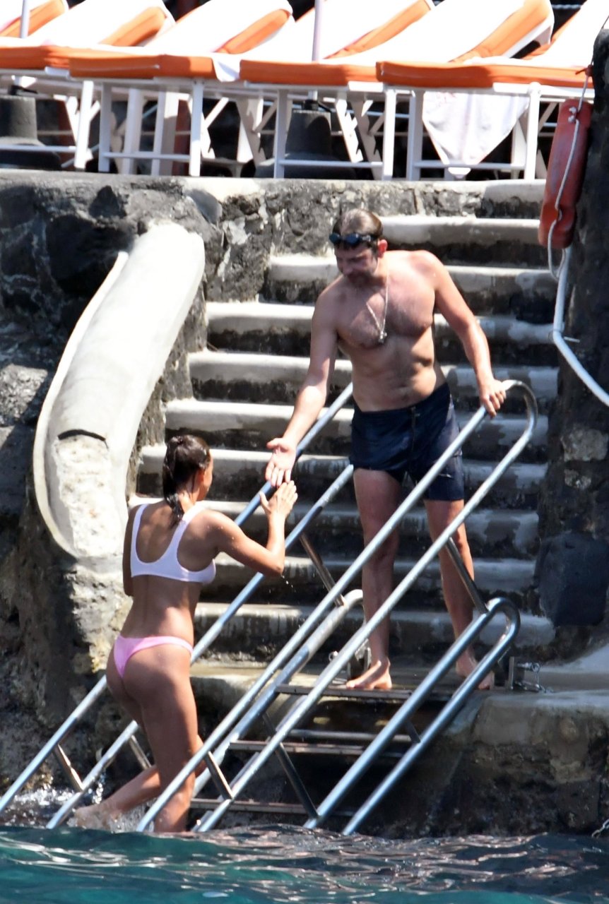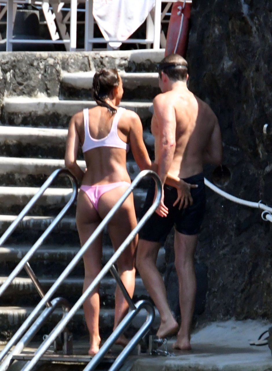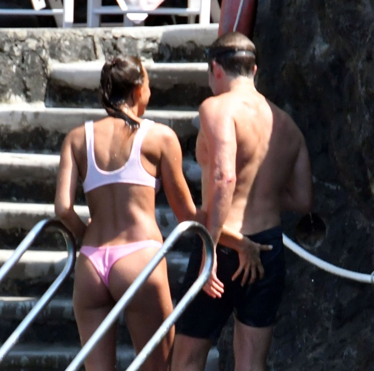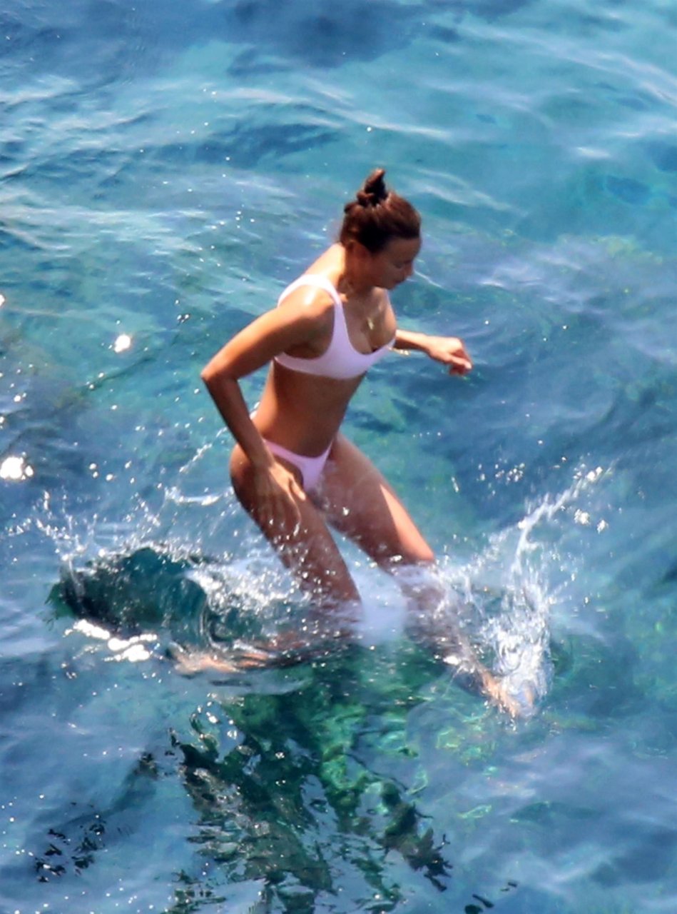 La feliz pareja fue vista nadando juntos en el mar azul turquesa antes de tomar el sol juntos disfrutando del sol. En un momento, Irina juguetonamente toca el trasero de Bradley, lo cual él encontró divertido.
