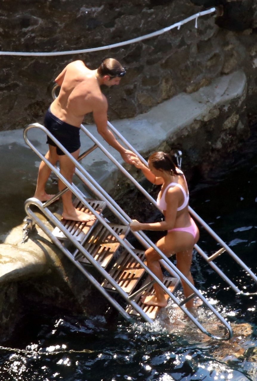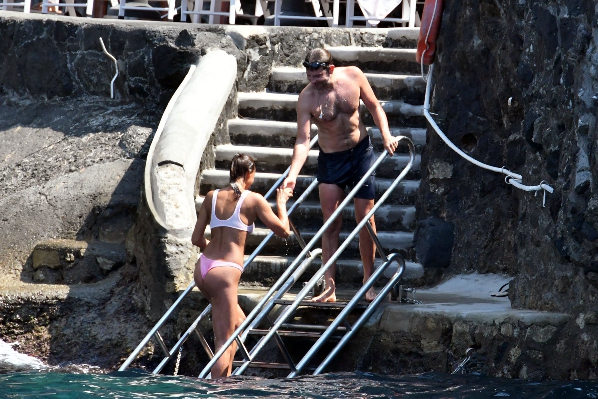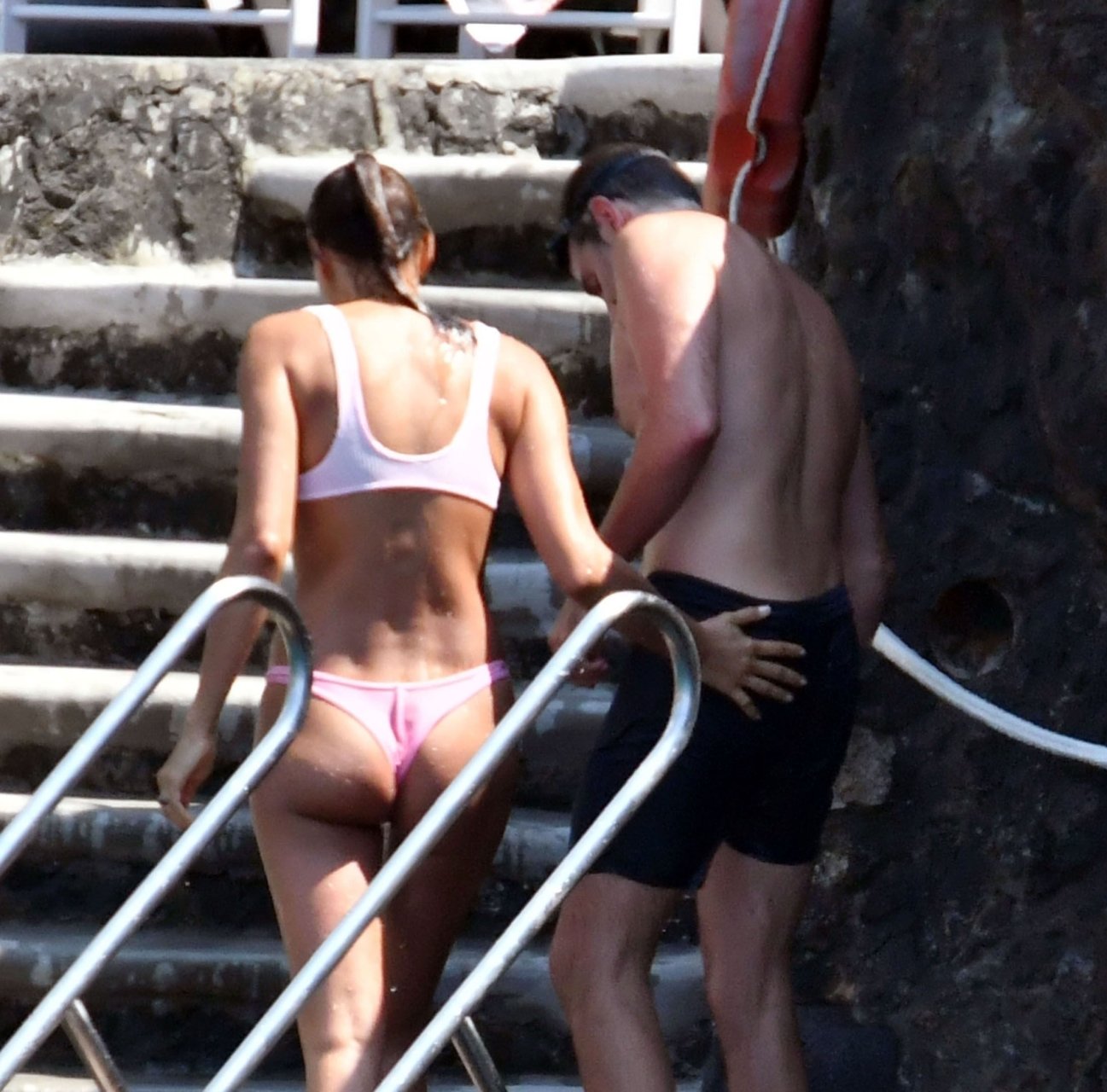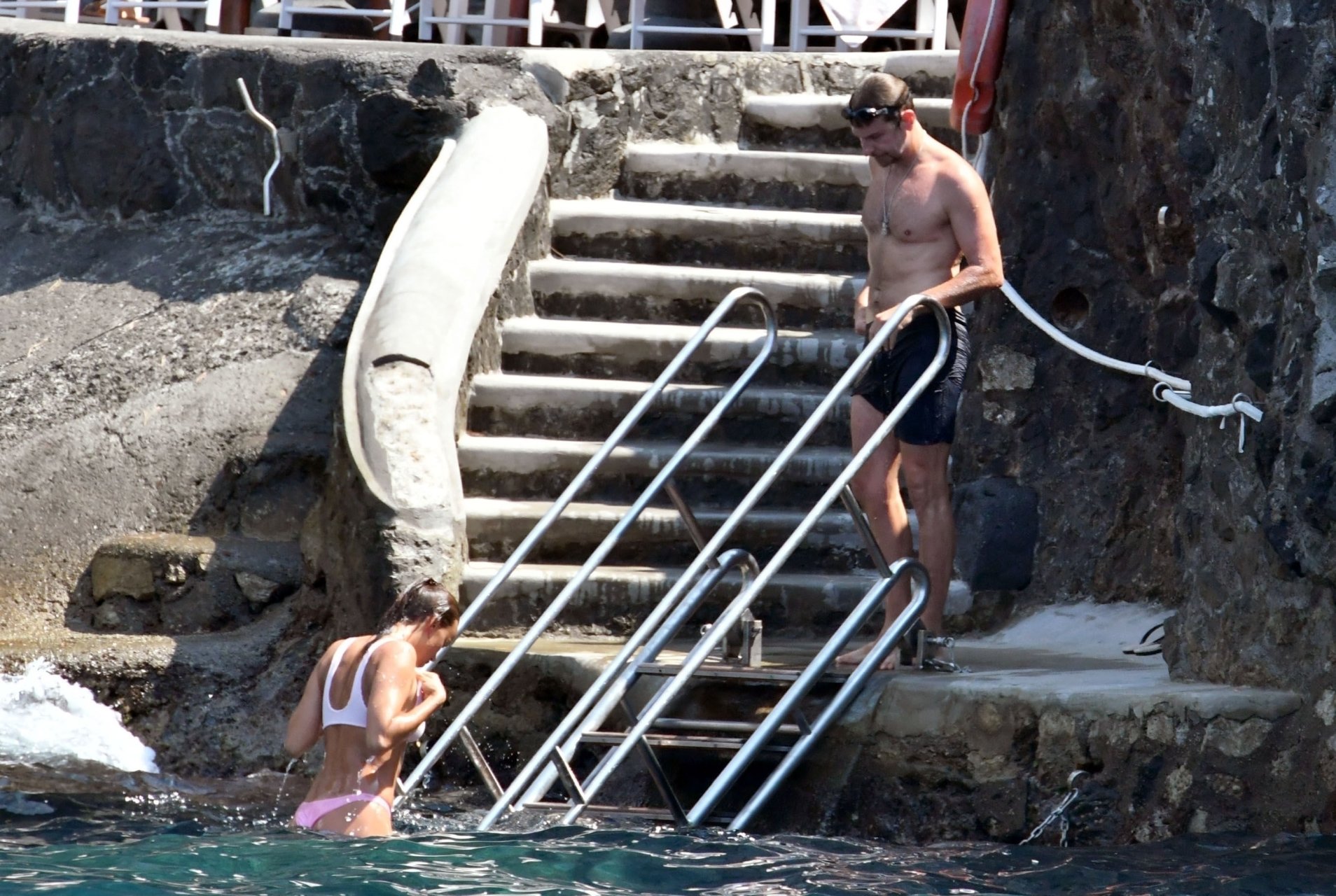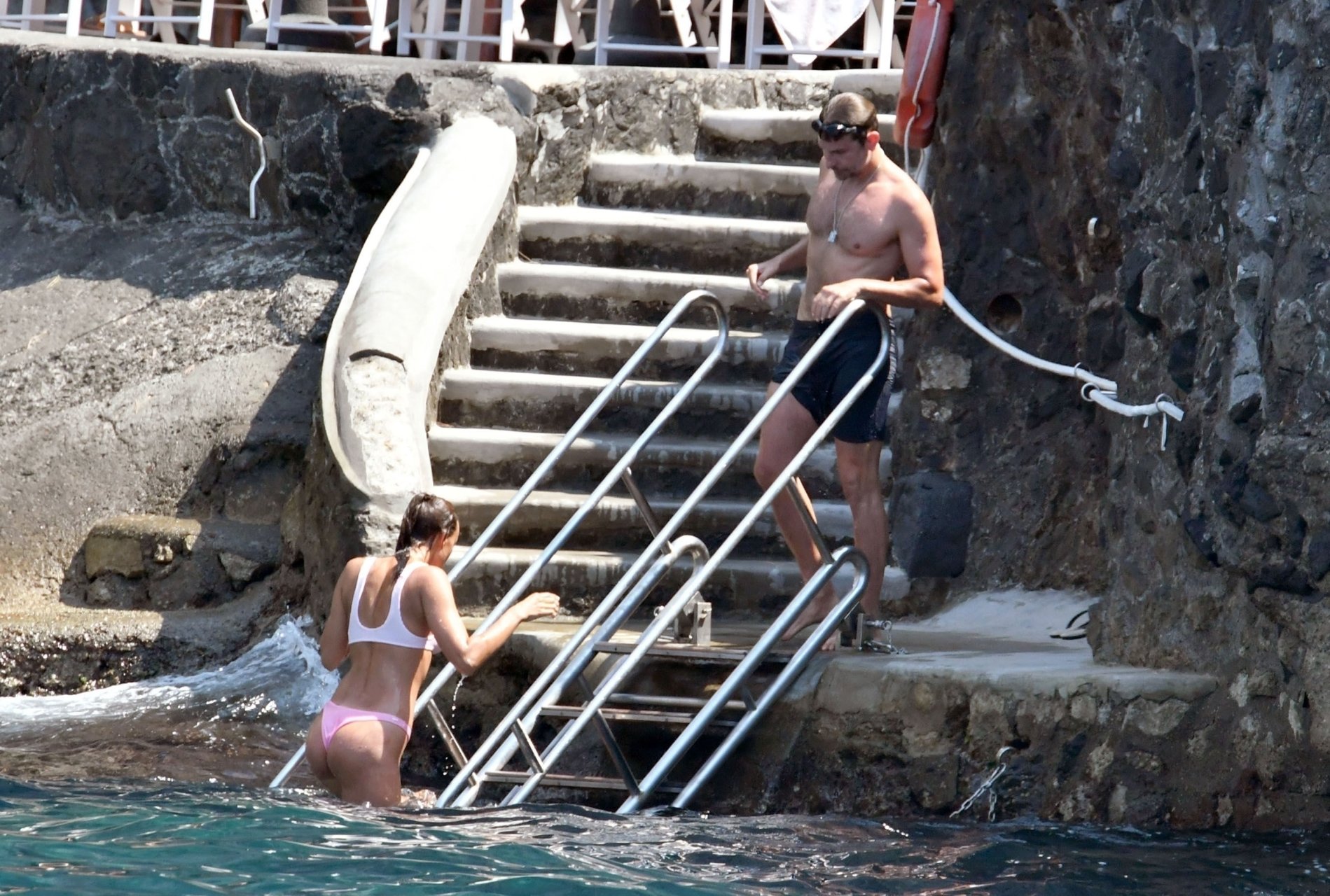 La feliz pareja fue vista nadando juntos en el mar azul turquesa antes de tomar el sol juntos disfrutando del sol. En un momento, Irina juguetonamente toca el trasero de Bradley, lo cual él encontró divertido.