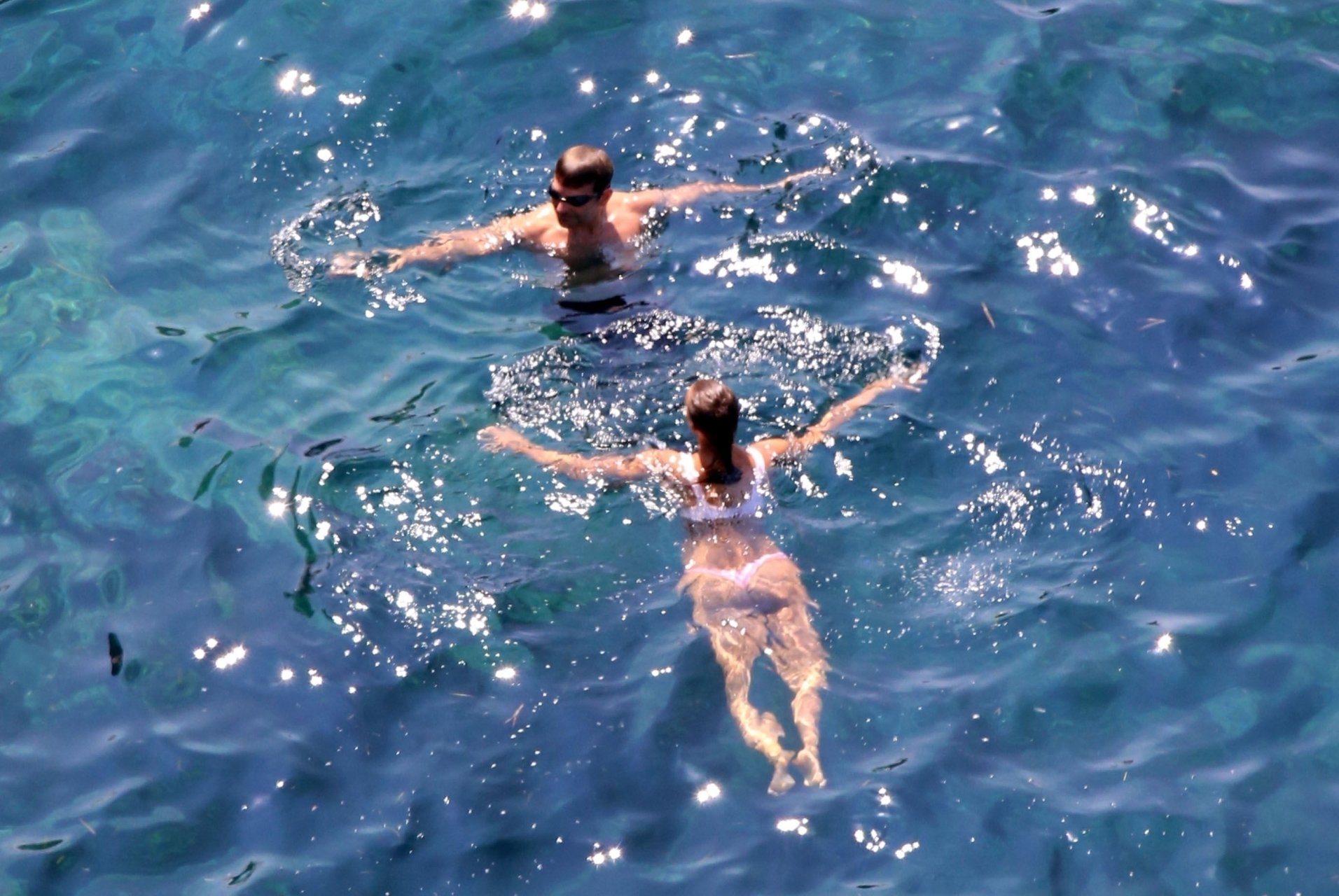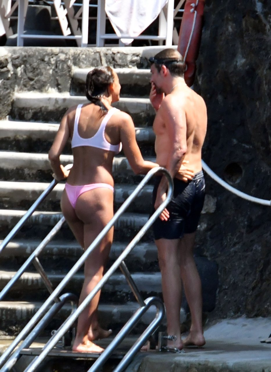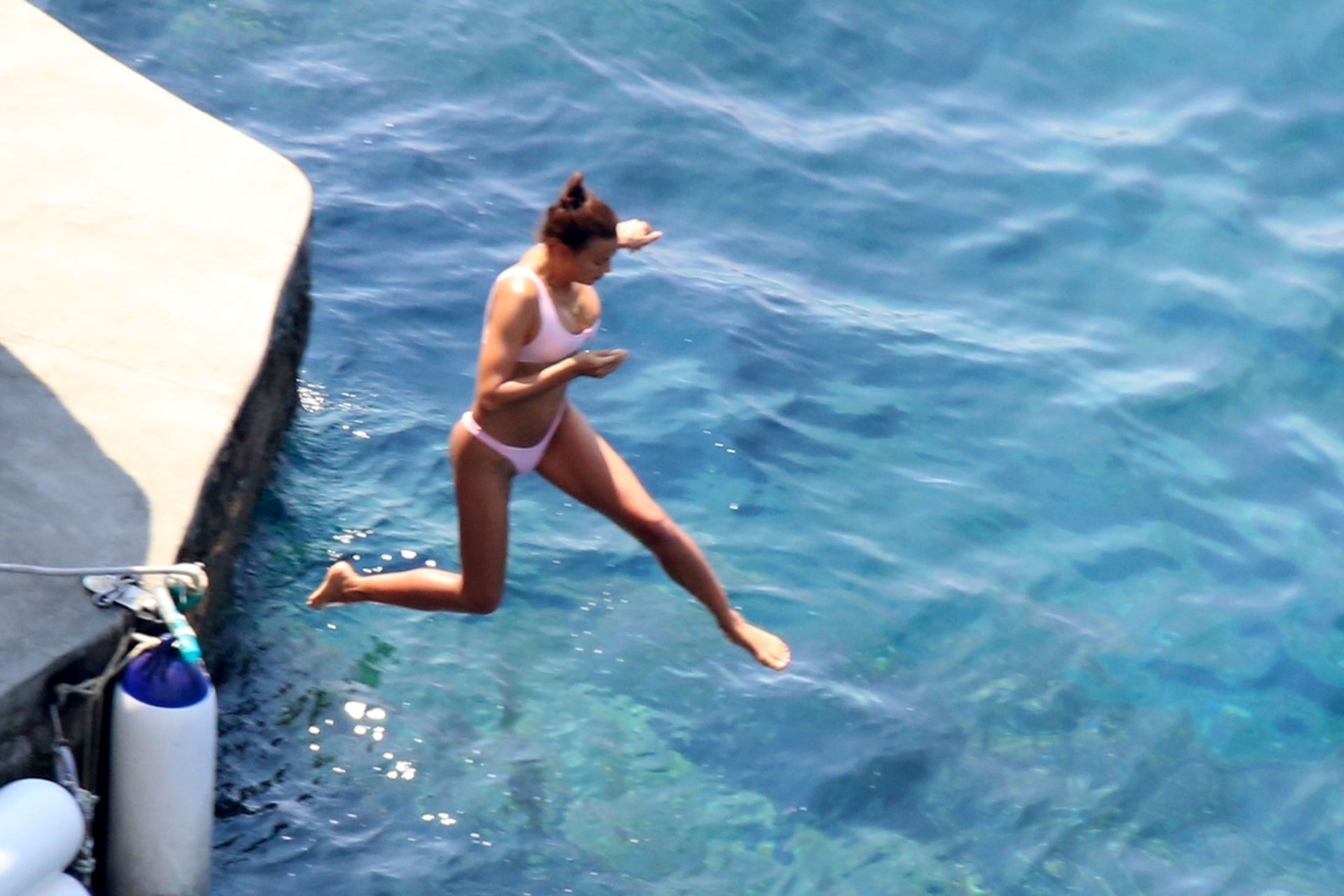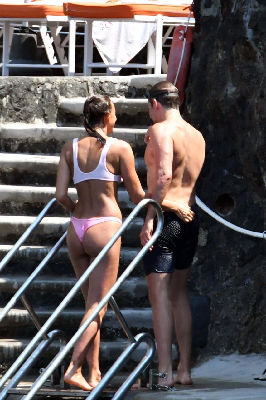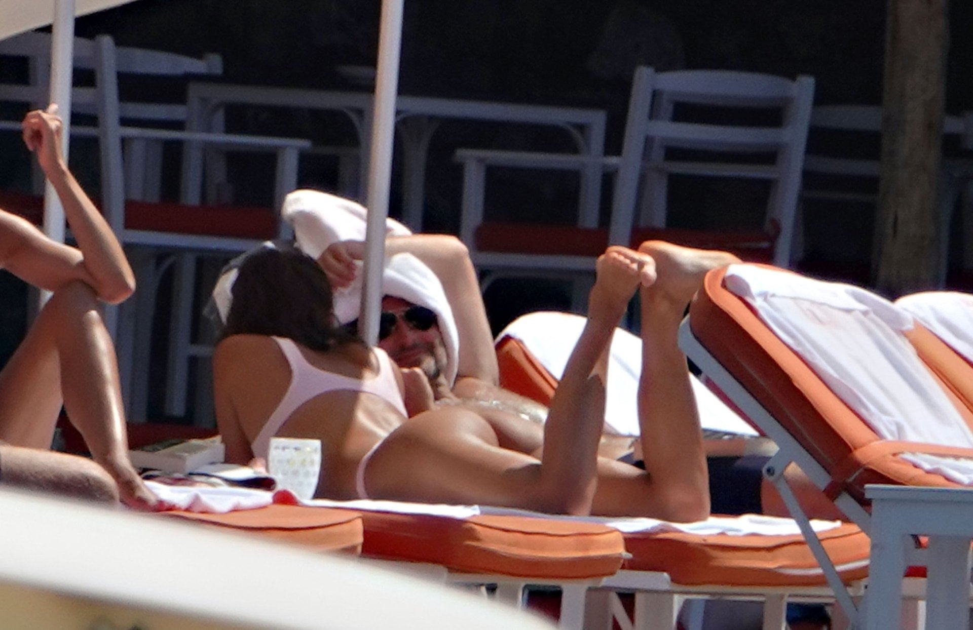 La feliz pareja fue vista nadando juntos en el mar azul turquesa antes de tomar el sol juntos disfrutando del sol. En un momento, Irina juguetonamente toca el trasero de Bradley, lo cual él encontró divertido.