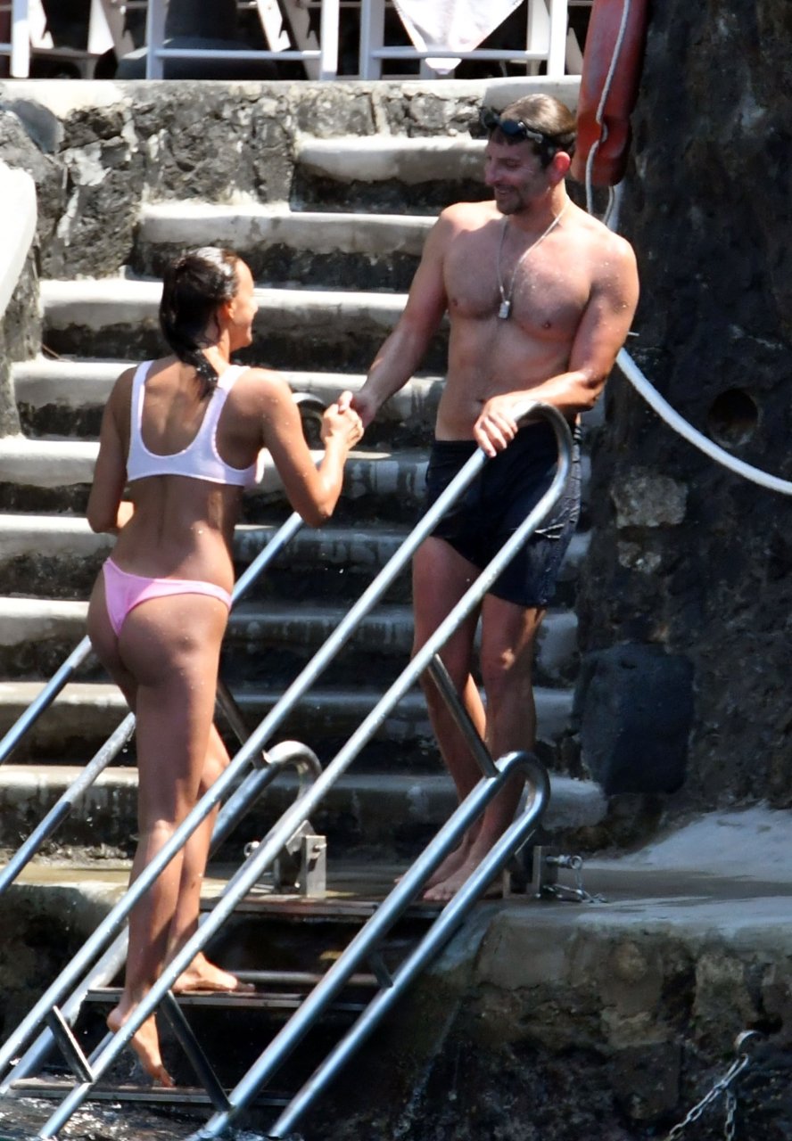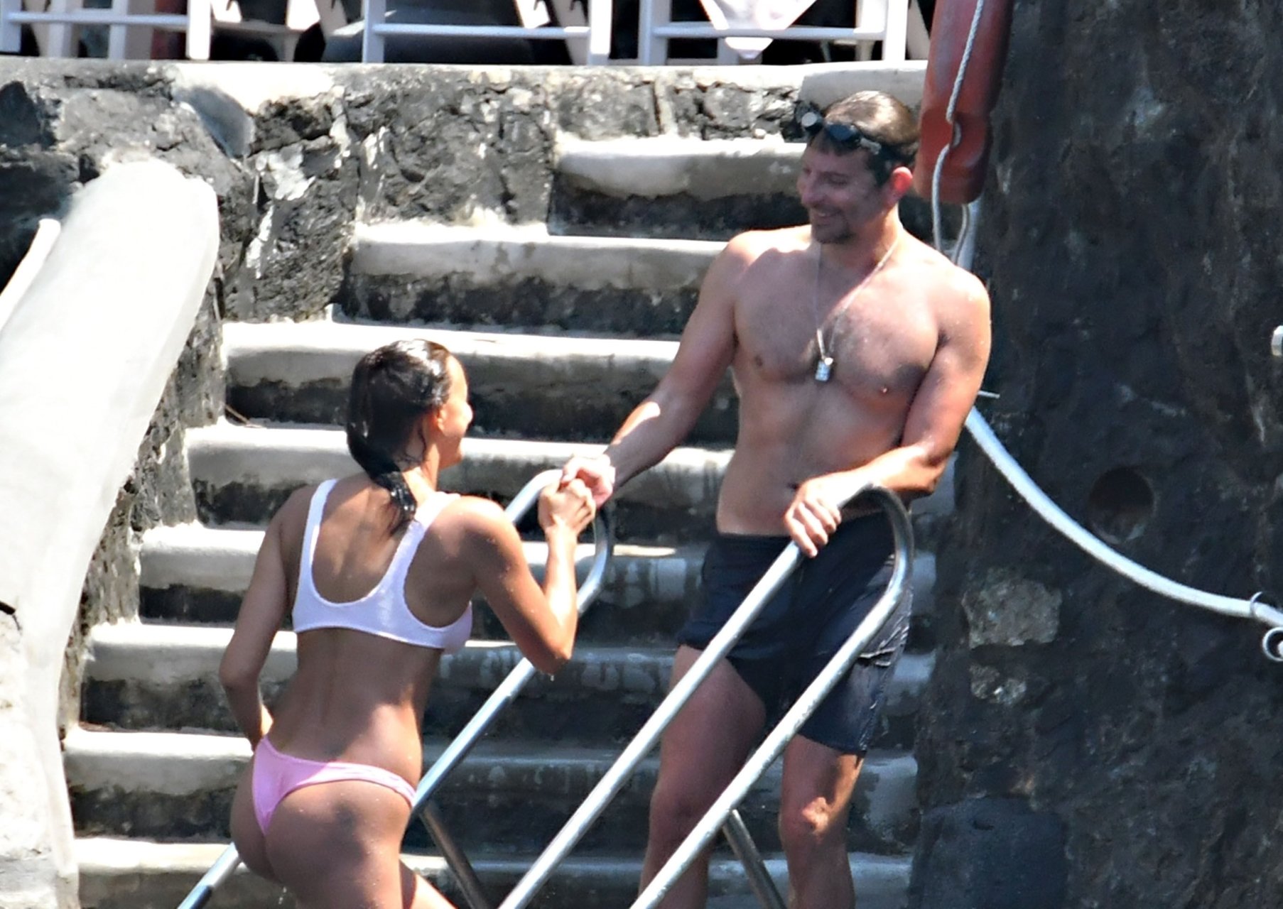 El actor de Hollywood Bradley Cooper y su novia modelo Irina Shayk fueron fotografiados muy cariñosos y enamorados mientras la pareja mostraba sus cuerpos tonificados durante sus vacaciones juntos en Positano, Italia, 08/04/2018.