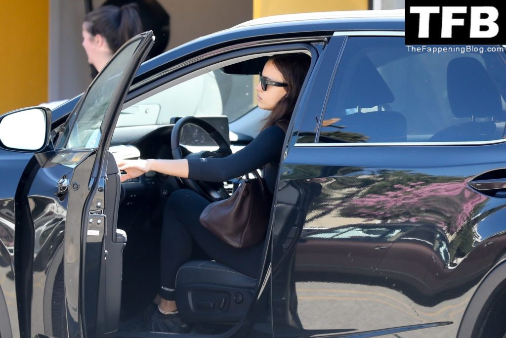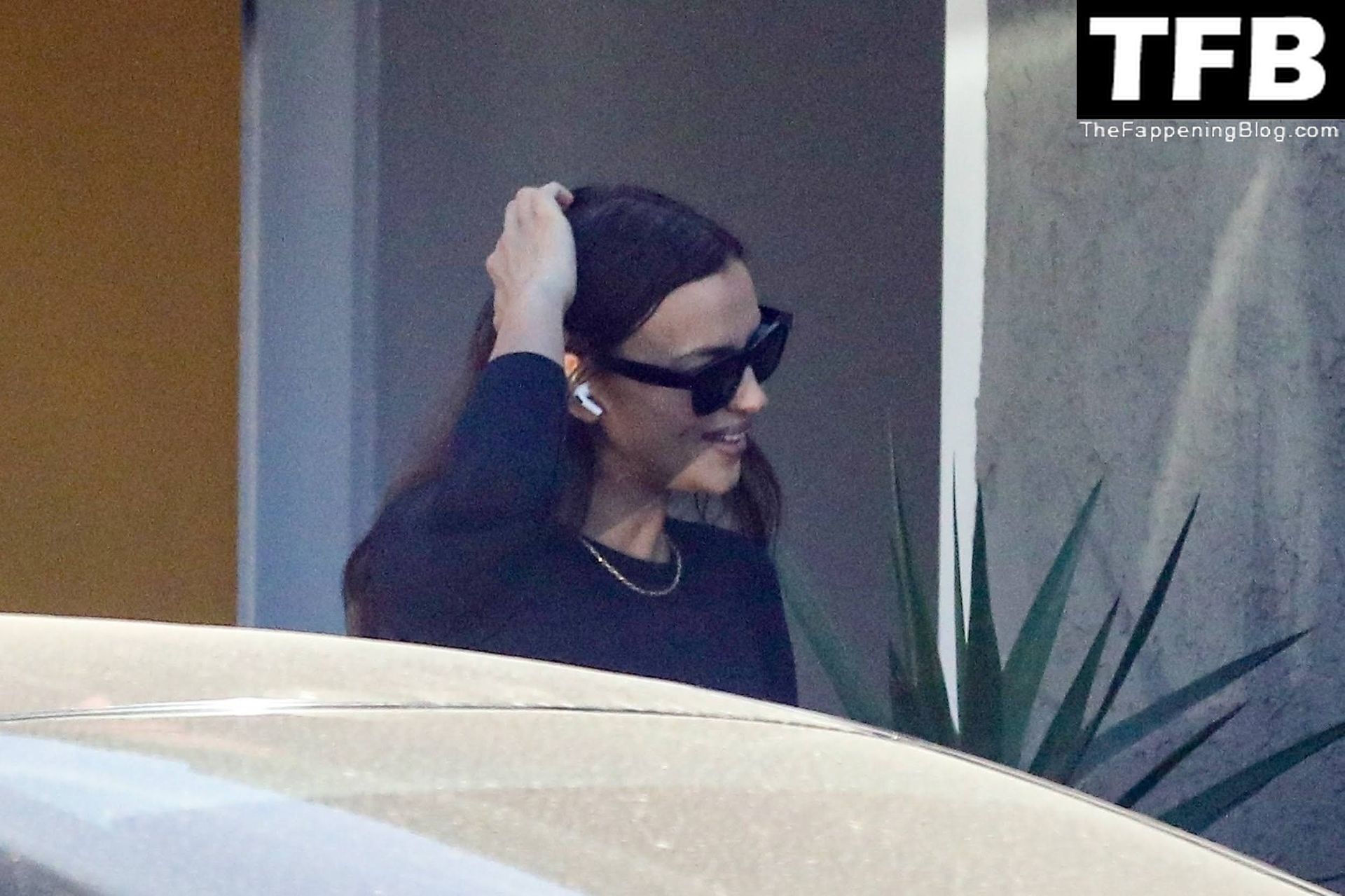 La modelo rusa Irina Shayk lleva ropa deportiva completamente negra y zapatos Yeezy para su sesión de gimnasio en Santa Mónica, 02/03/2022.
