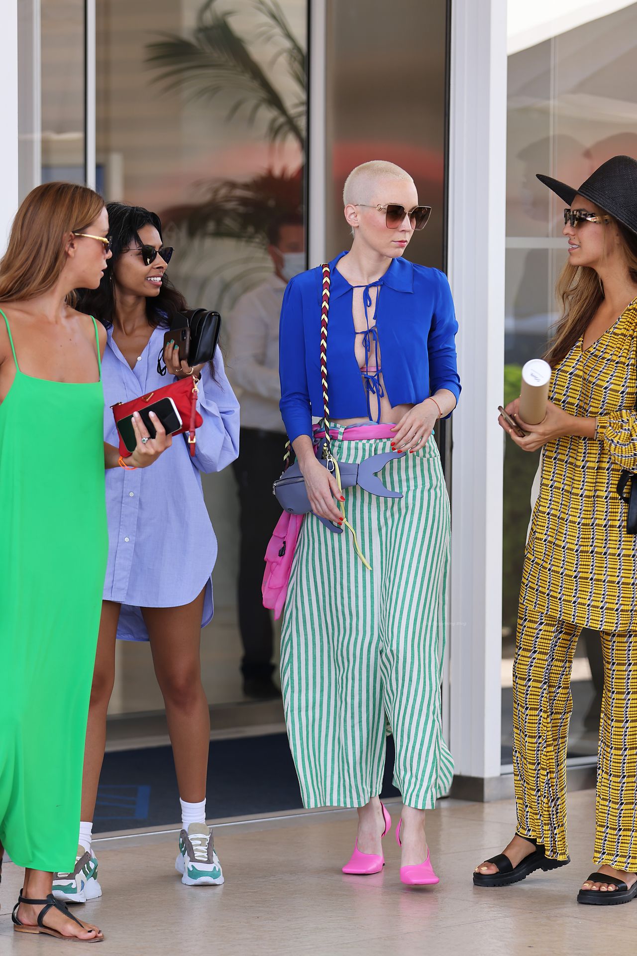 Iris Law es vista saliendo del Hotel Martinez durante el Festival de Cine de Cannes 2021 llevando un bolso con forma de pez y despojada hasta el bikini en el camino por la Croisette porque hacía demasiado calor para ella, 15/07/2021.