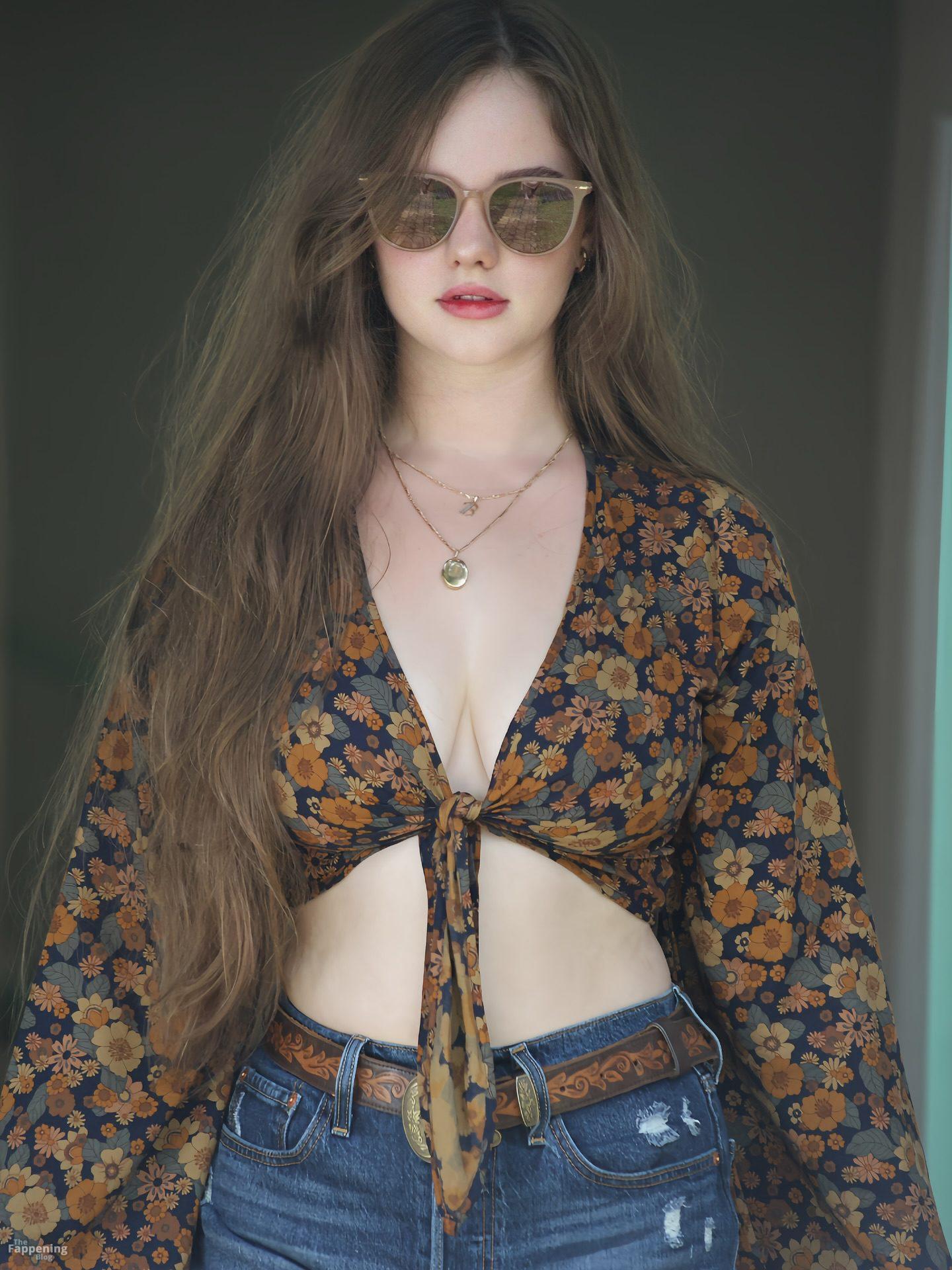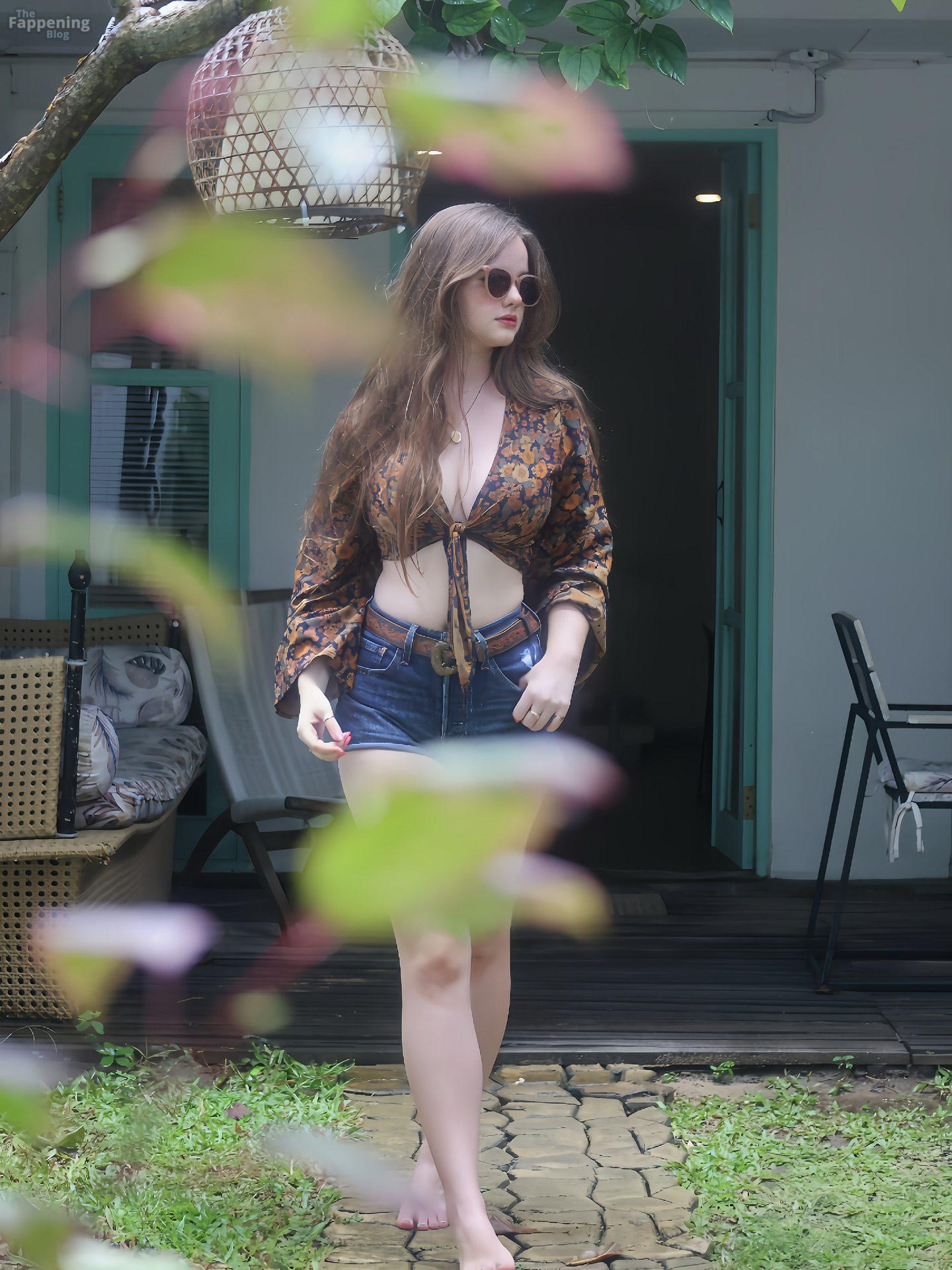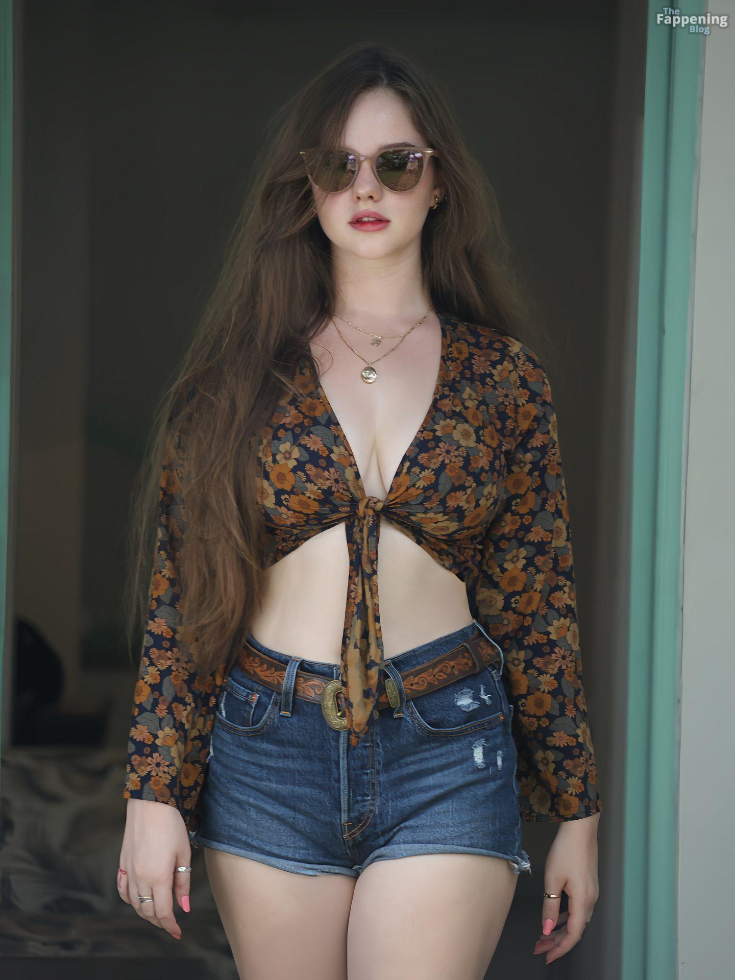 Isabella Ardley se ve increíble con un top corto escotado y shorts de mezclilla rasgados, mostrando totalmente esos senos y piernas sexys.