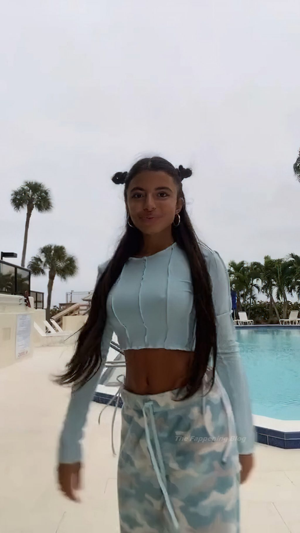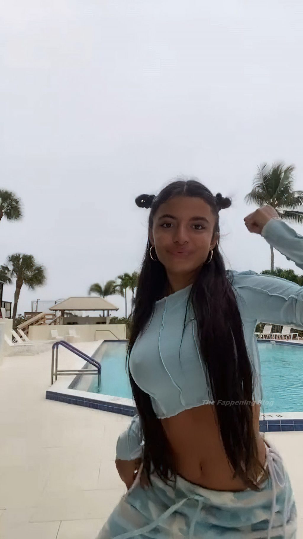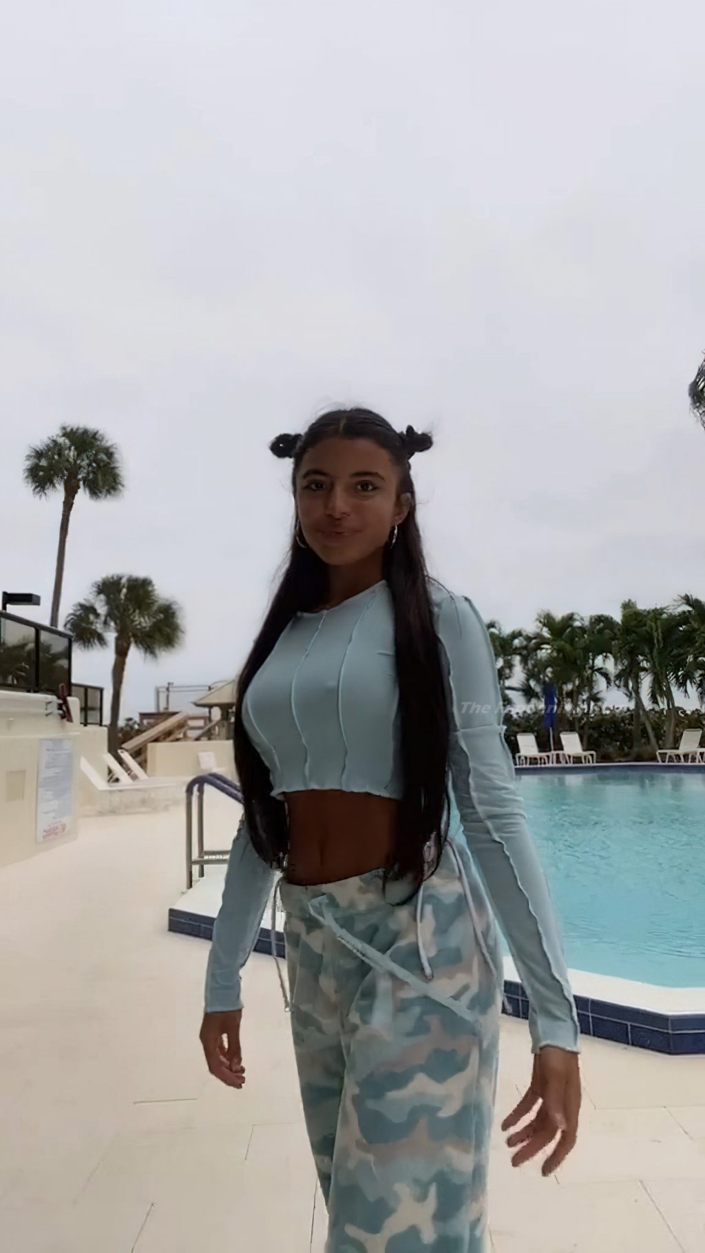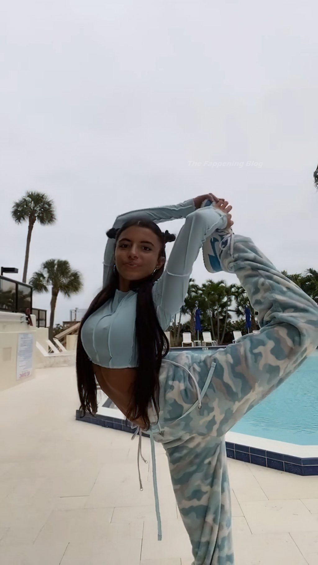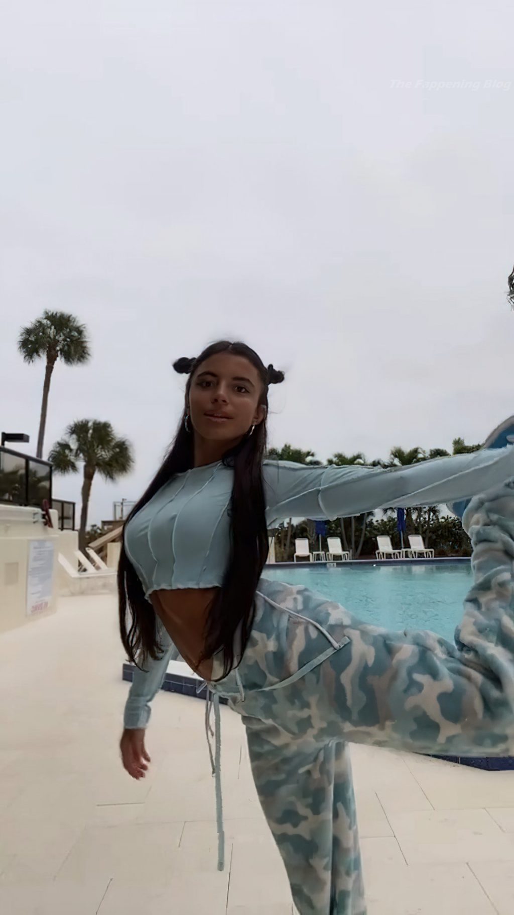 Mira las fotos y clips sexy de Isabella Fonte, donde posa junto a la piscina con un conjunto azul sin sostén para sus fans de TikTok (2021).