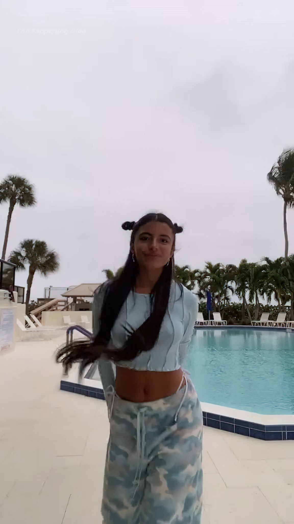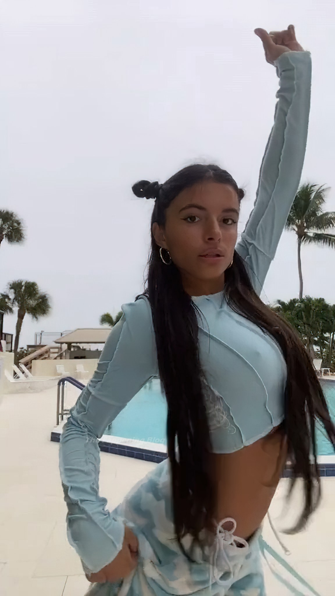 Mira las fotos y clips sexy de Isabella Fonte, donde posa junto a la piscina con un conjunto azul sin sostén para sus fans de TikTok (2021).