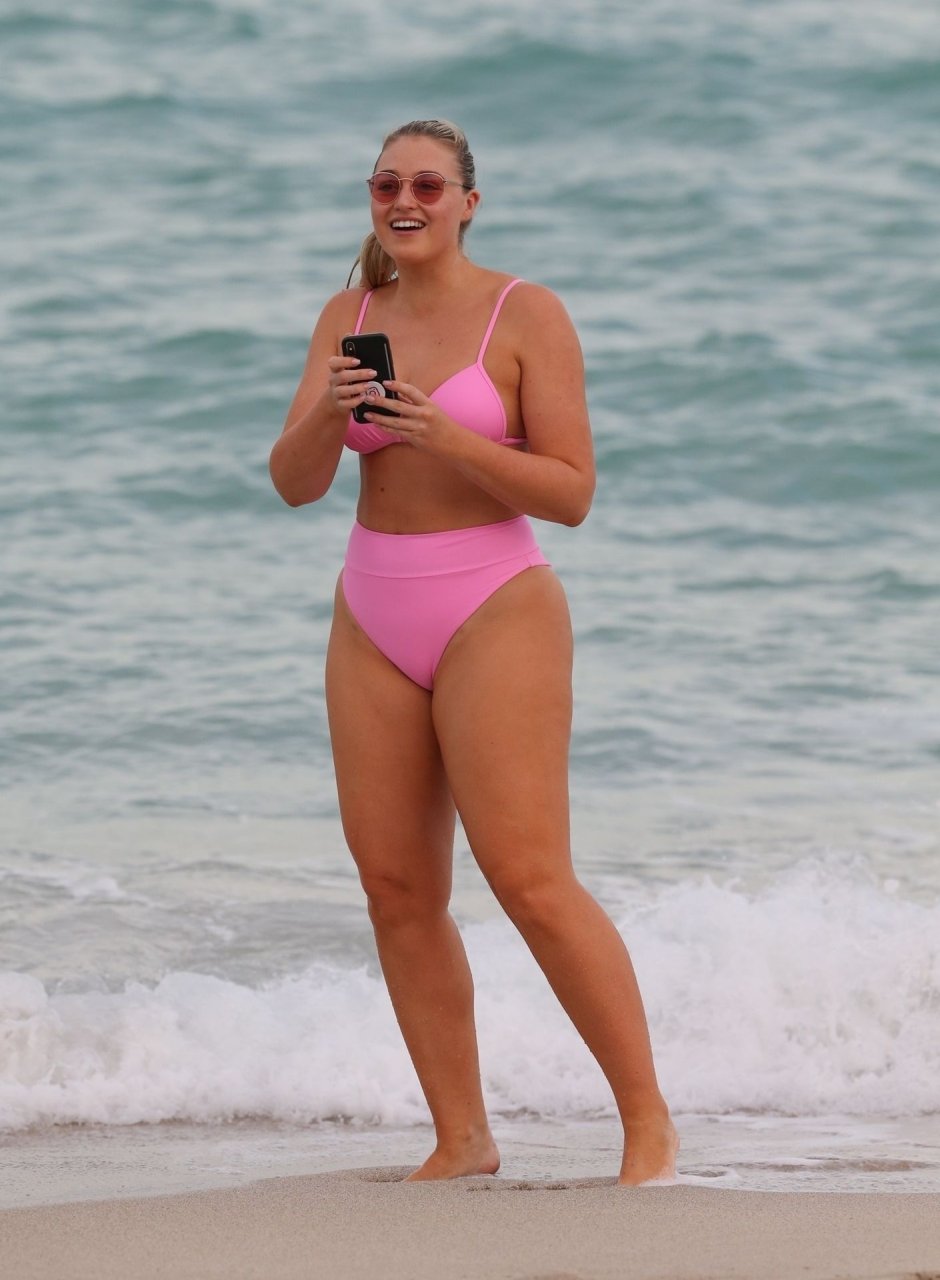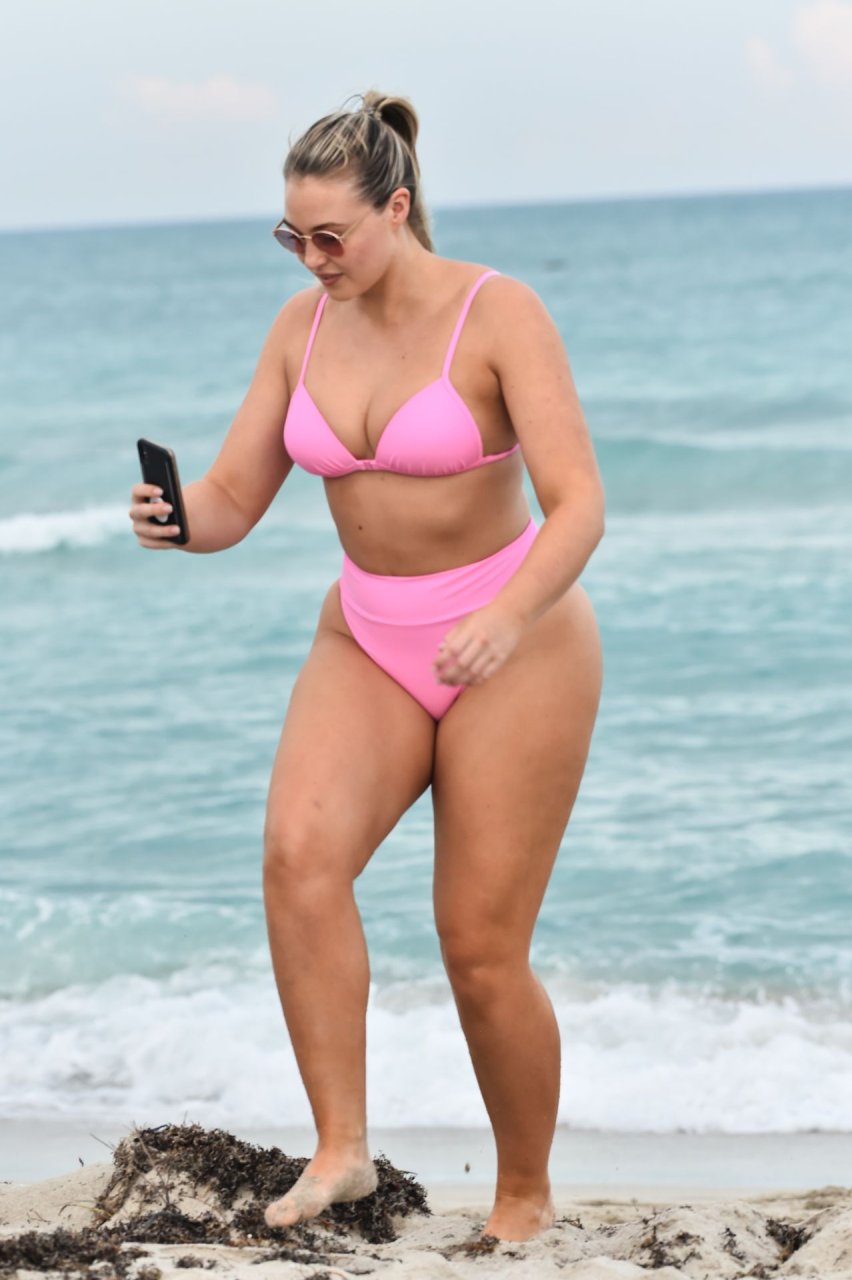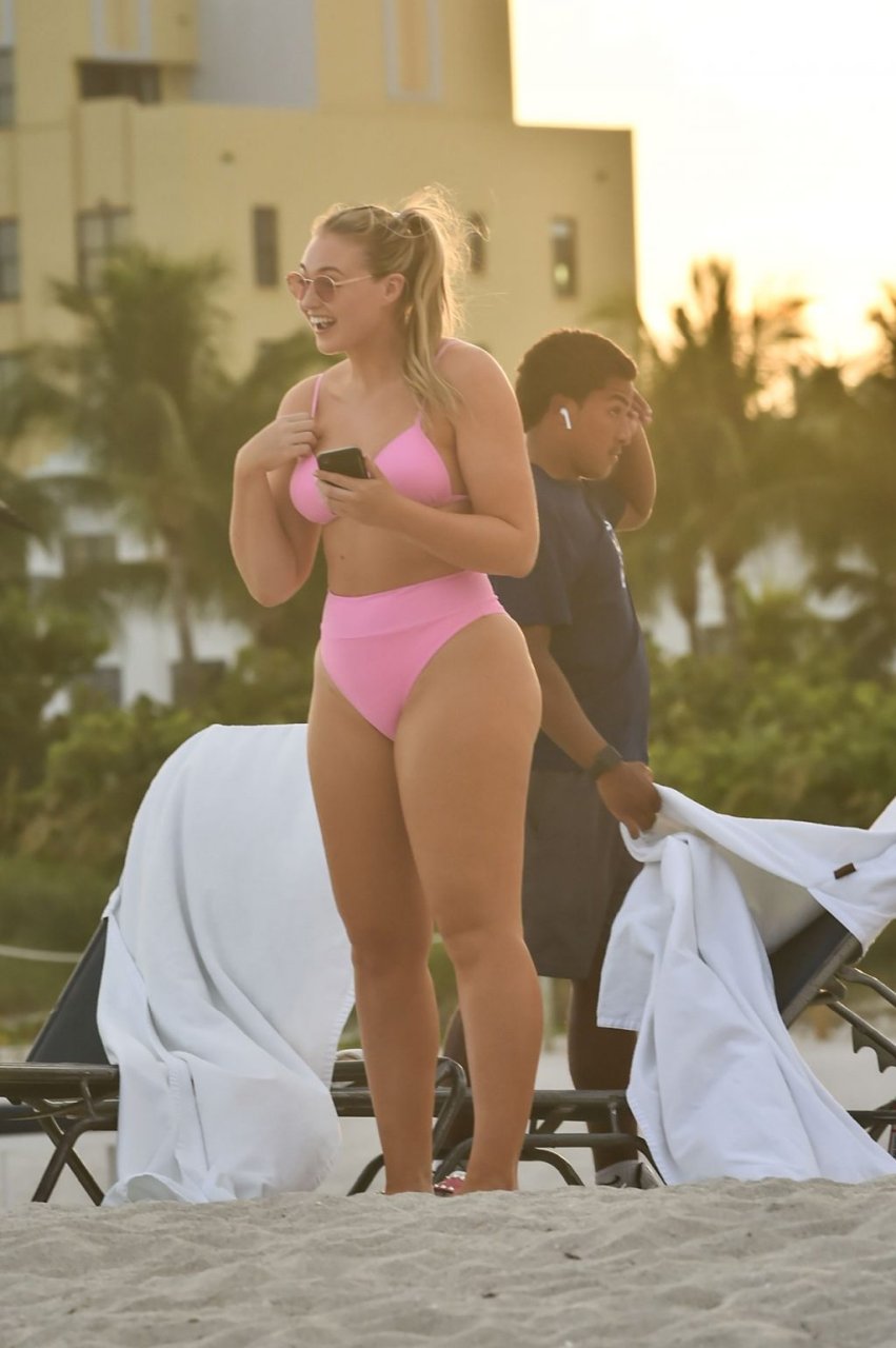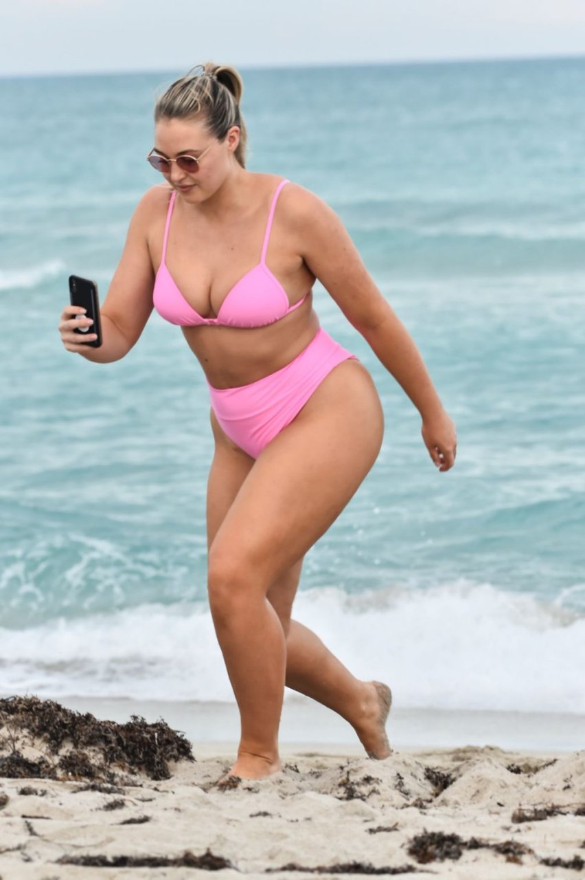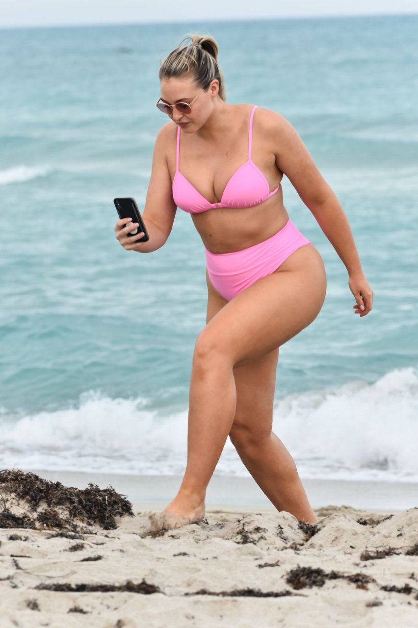 La modelo Iskra Lawrence muestra sus curvas en la playa con un bikini rosa en Miami, 12/09/2018. Iskra se ve genial mientras disfruta de su día en la playa.