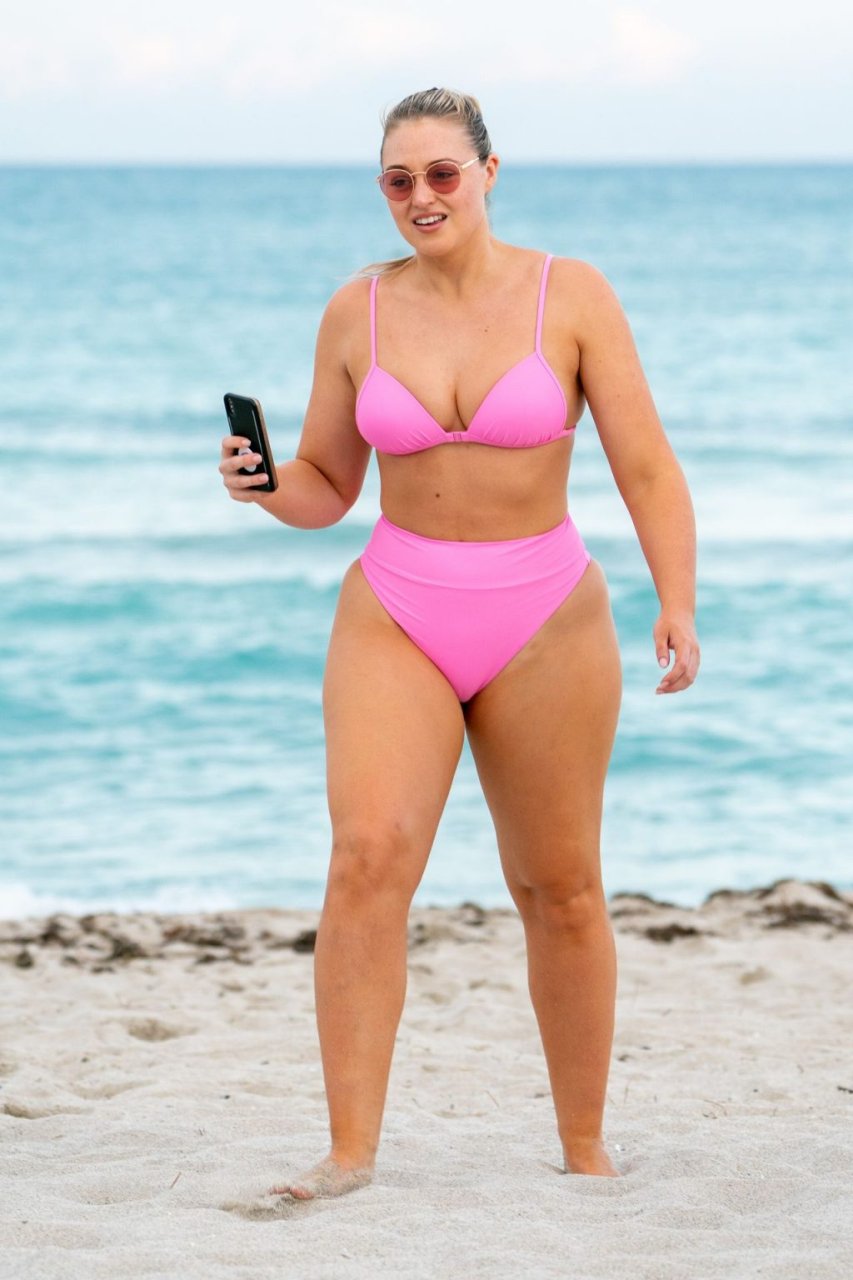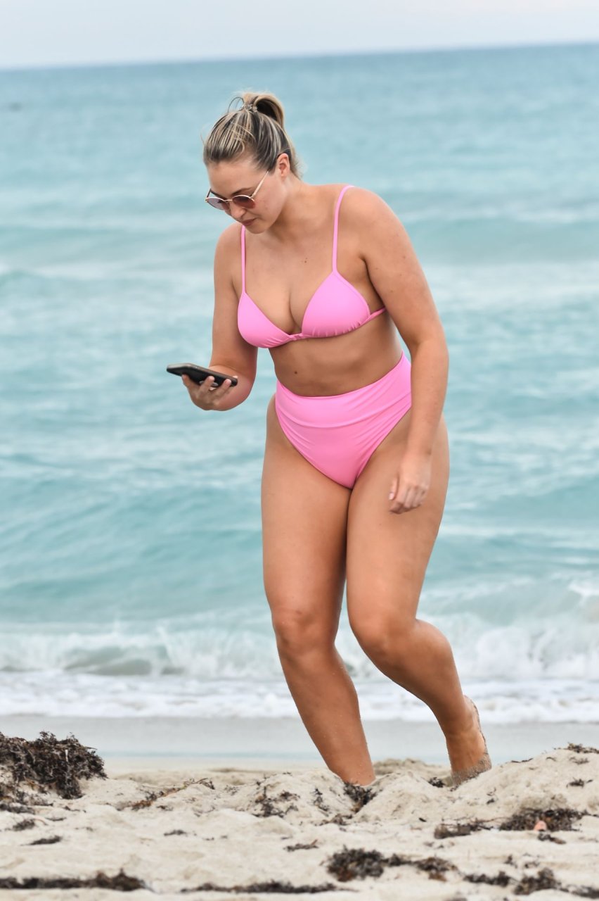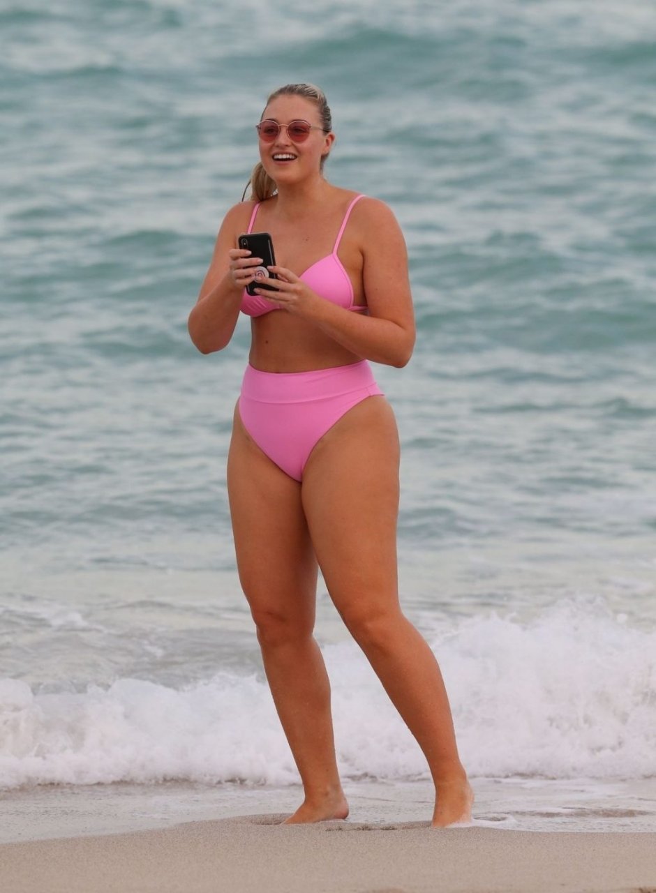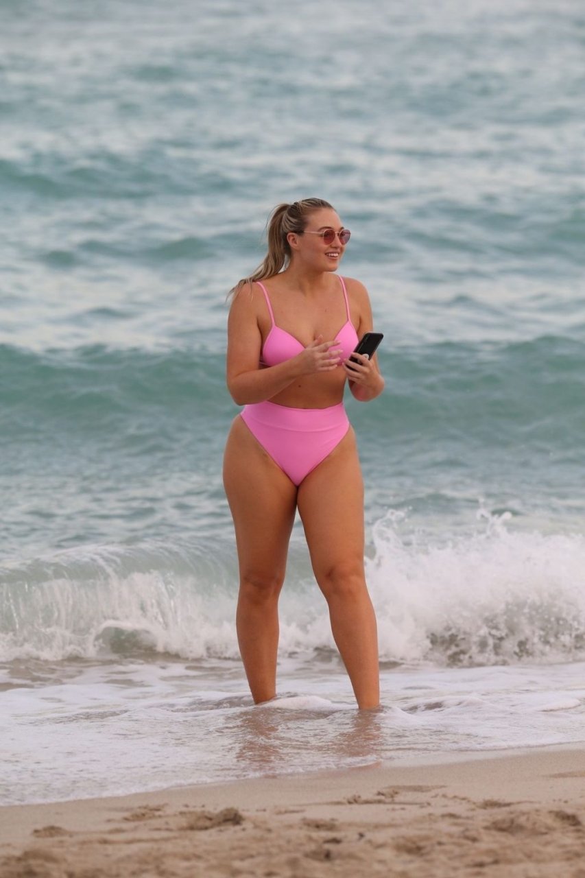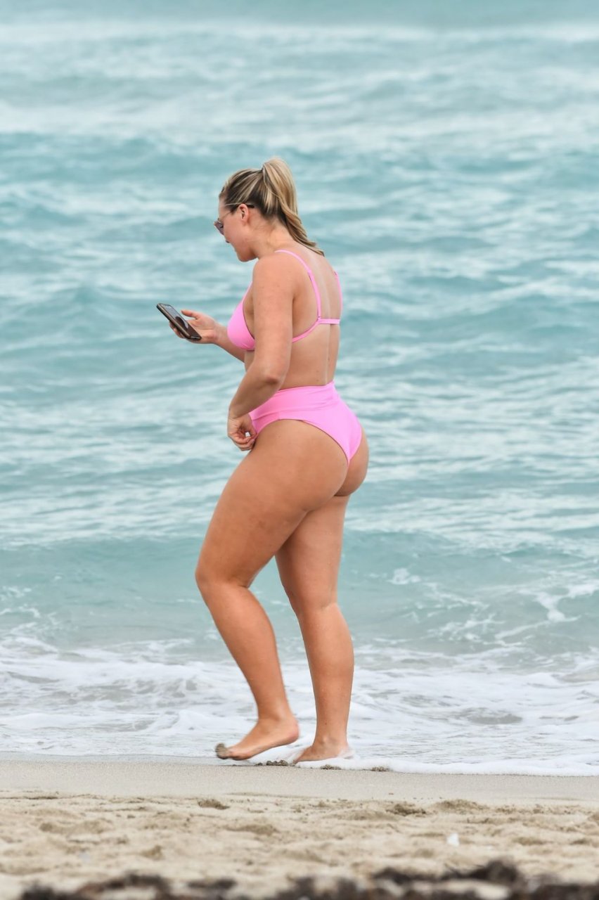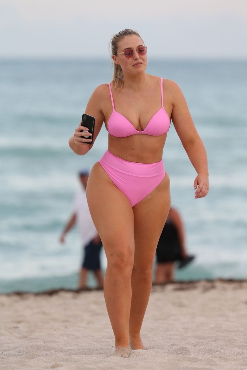 La modelo Iskra Lawrence muestra sus curvas en la playa con un bikini rosa en Miami, 12/09/2018. Iskra se ve genial mientras disfruta de su día en la playa.