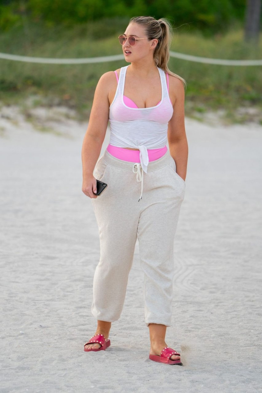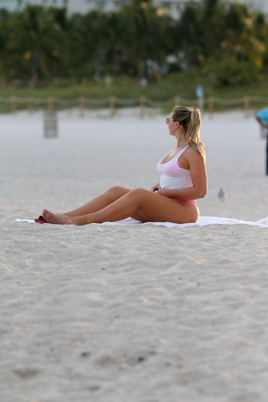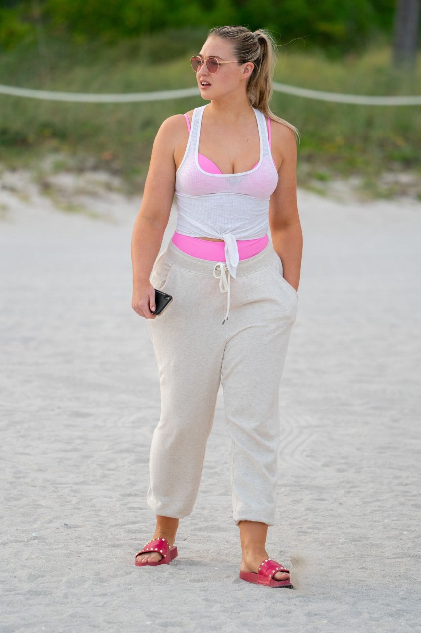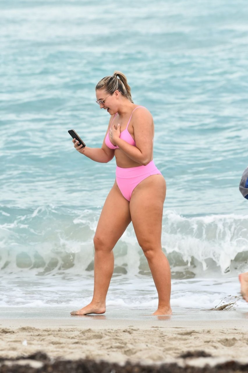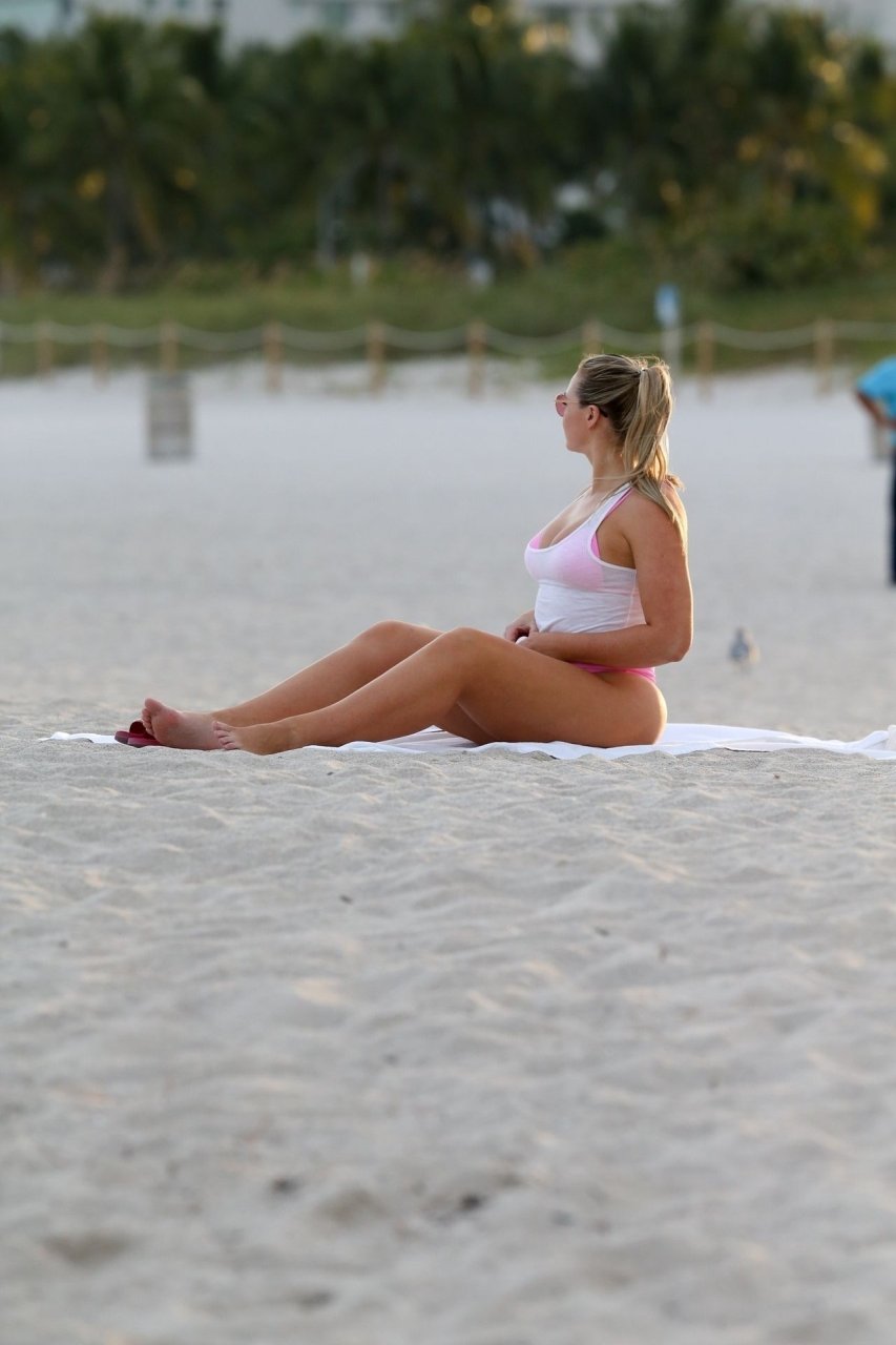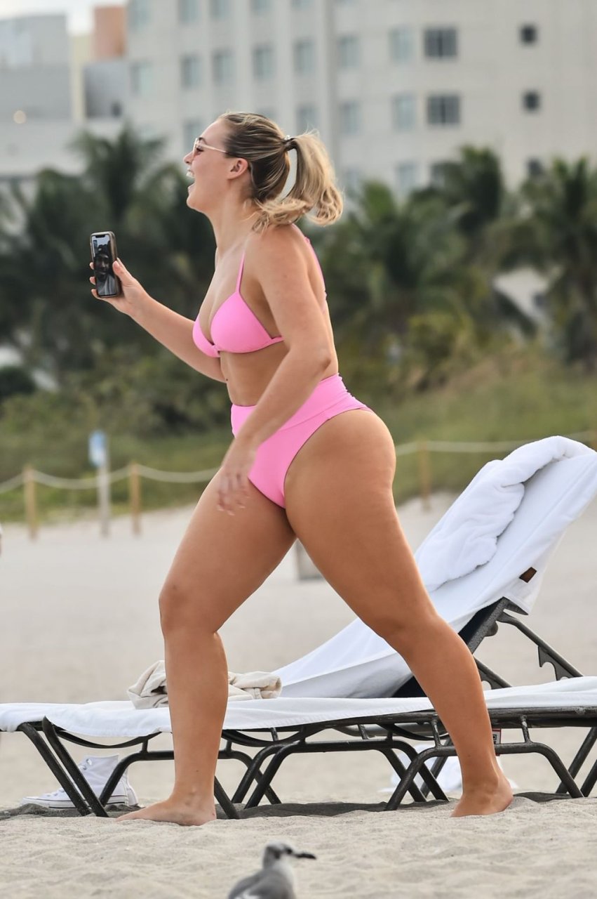 La modelo Iskra Lawrence muestra sus curvas en la playa con un bikini rosa en Miami, 12/09/2018. Iskra se ve genial mientras disfruta de su día en la playa.