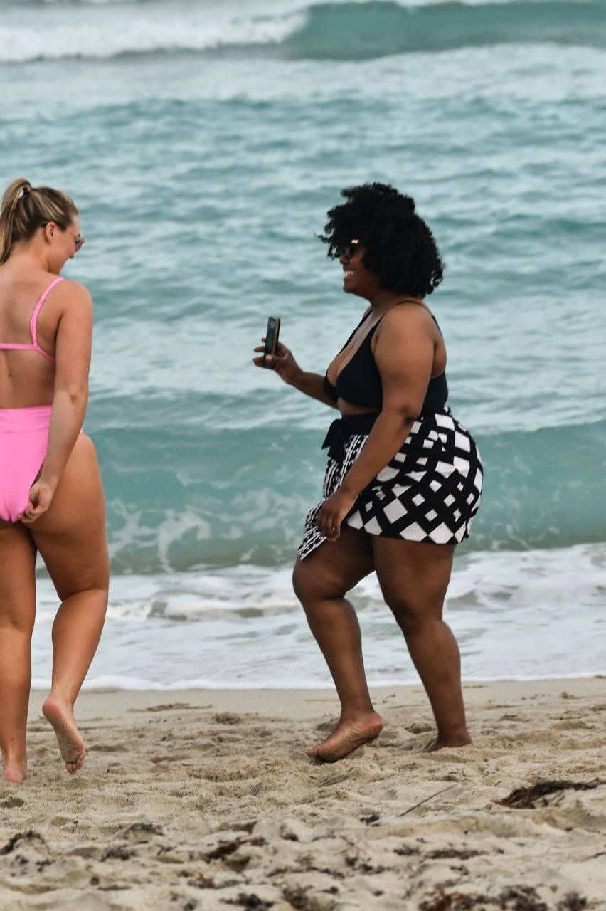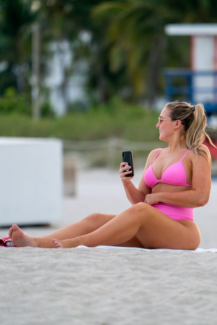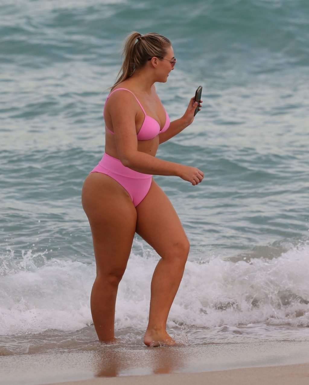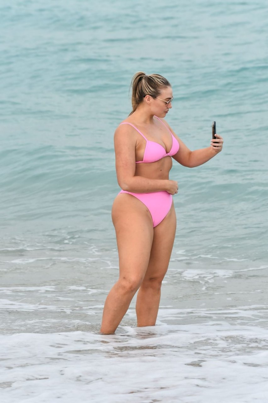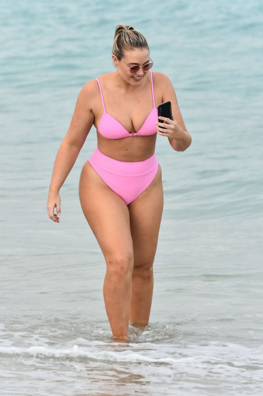 La modelo Iskra Lawrence muestra sus curvas en la playa con un bikini rosa en Miami, 12/09/2018. Iskra se ve genial mientras disfruta de su día en la playa.