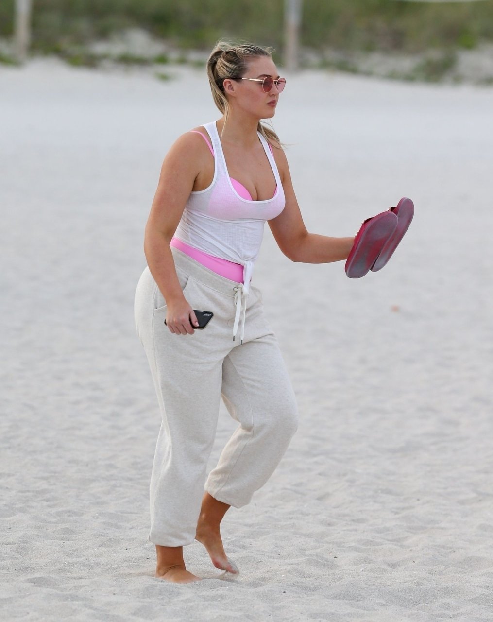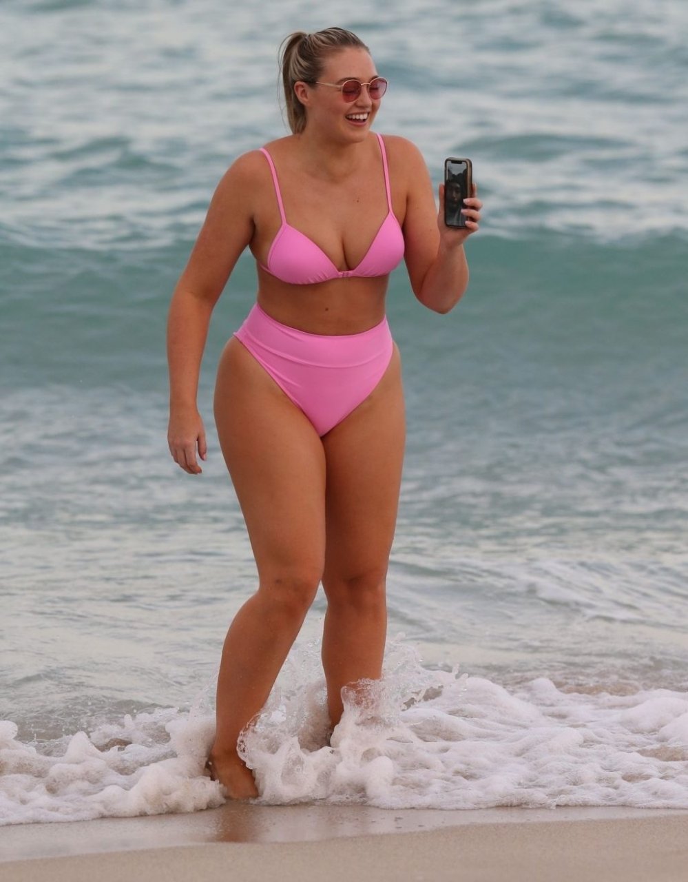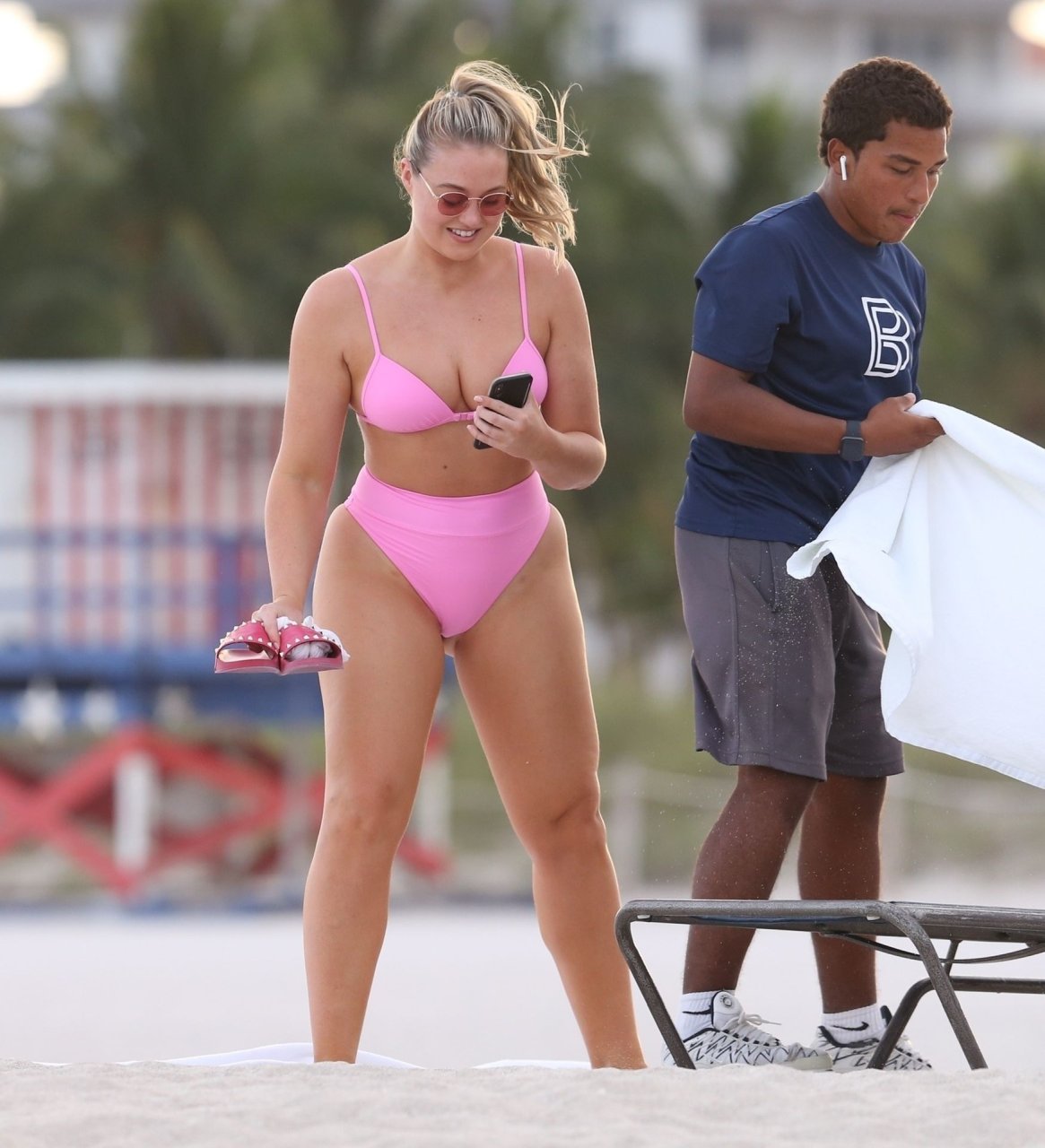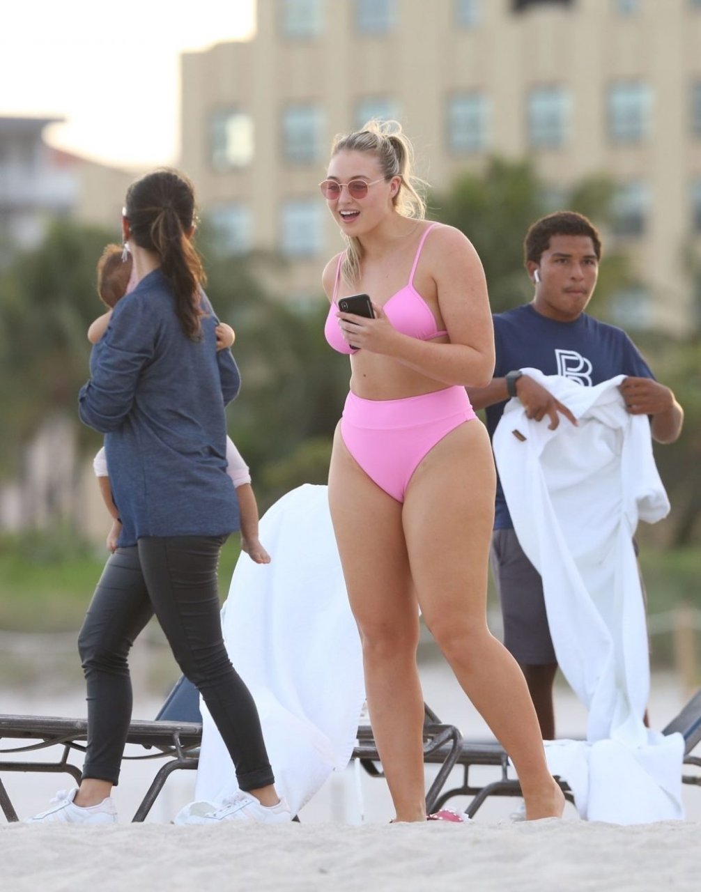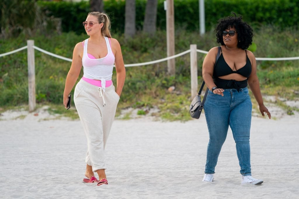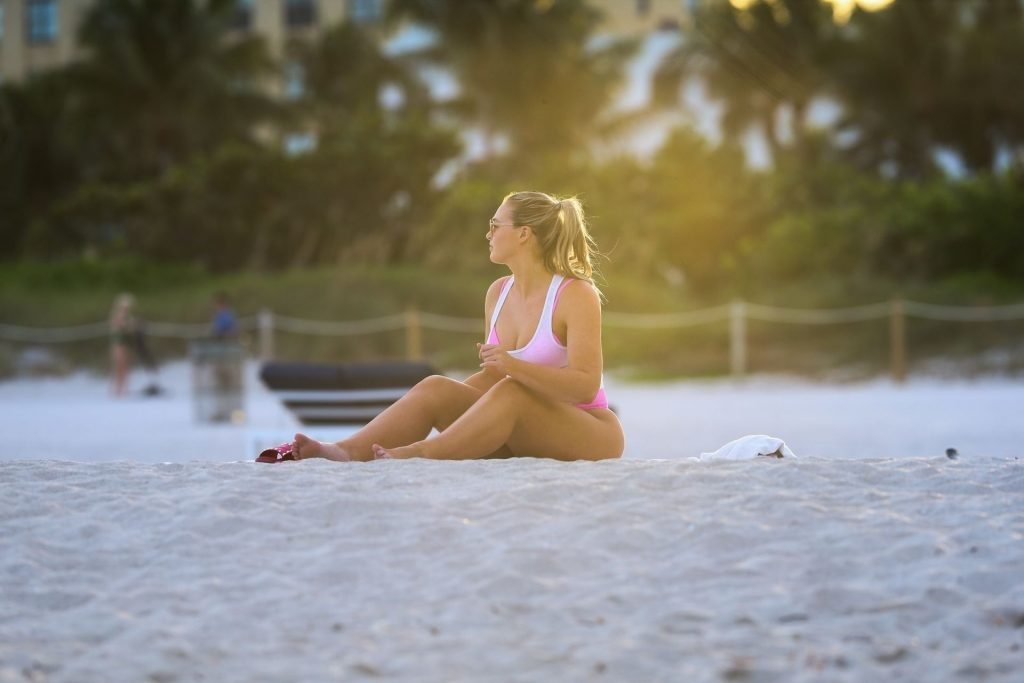 La modelo Iskra Lawrence muestra sus curvas en la playa con un bikini rosa en Miami, 12/09/2018. Iskra se ve genial mientras disfruta de su día en la playa.