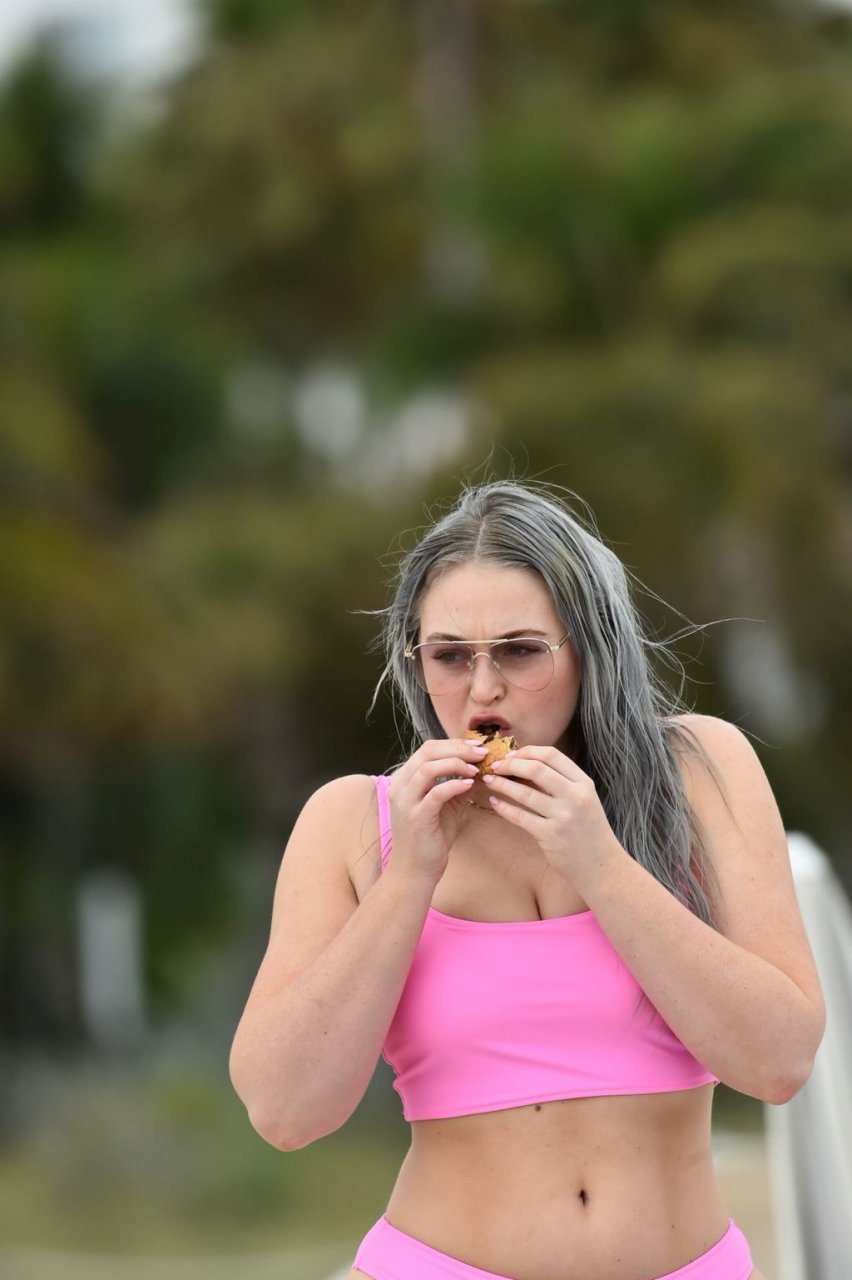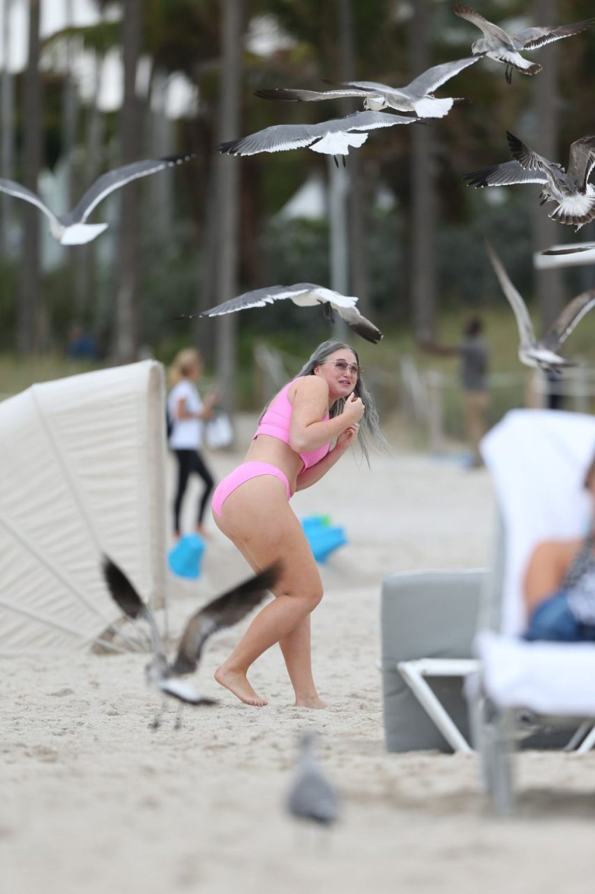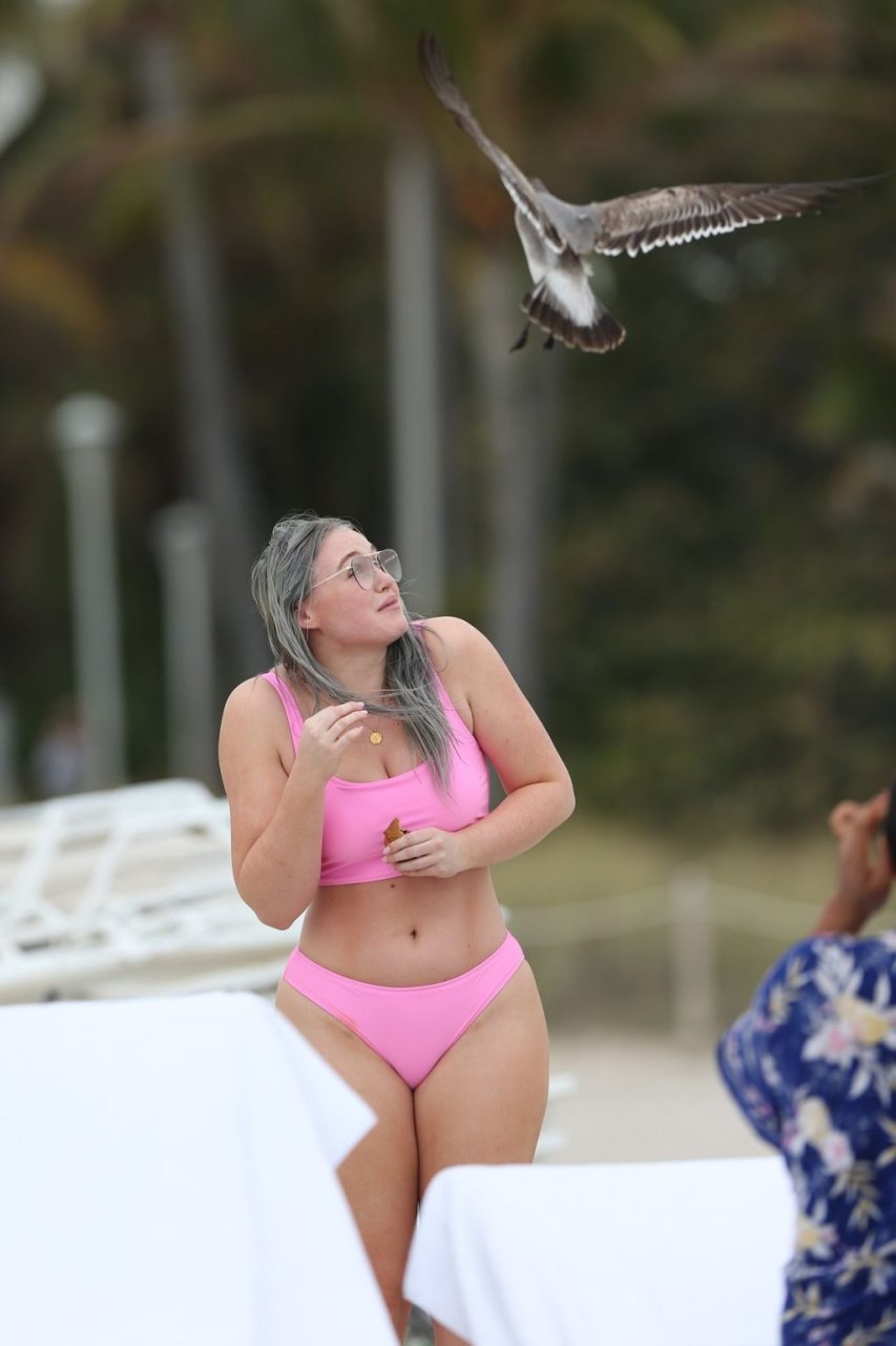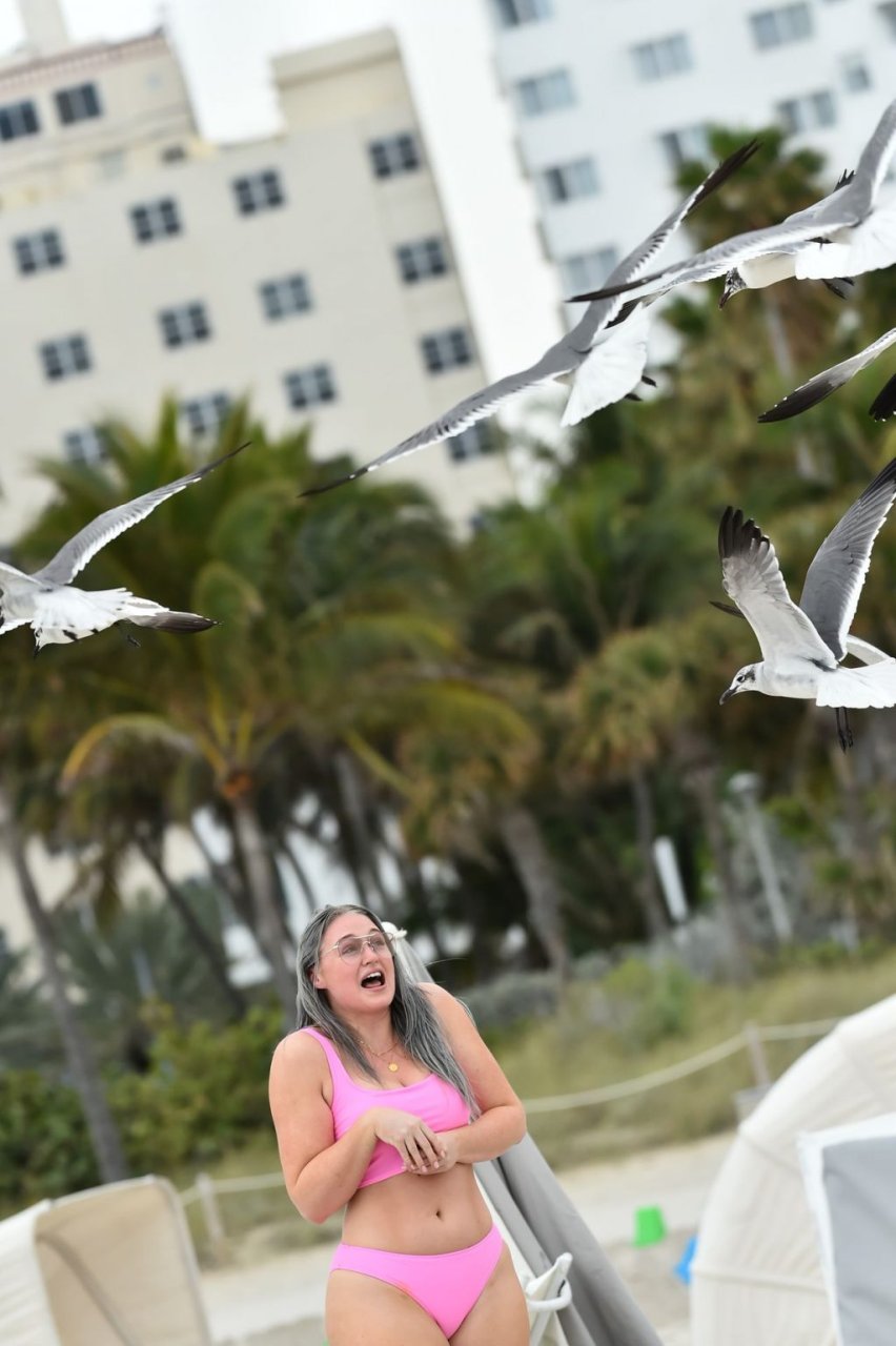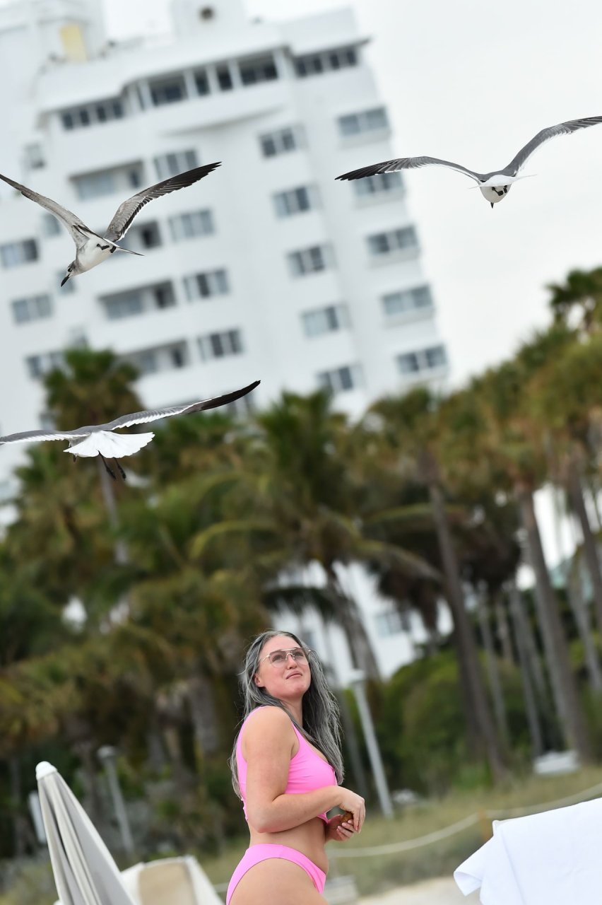 Mostrando sus curvas con un bikini rosa bebé de Aerie y su nuevo cabello plateado, Iskra intentó comer una galleta en la playa, sin saber que enfrentaría la furia de una hambrienta bandada de gaviotas. Afortunadamente, la modelo la comió rápidamente y pudo reírse de ello y disfrutar el resto de su día en la playa.