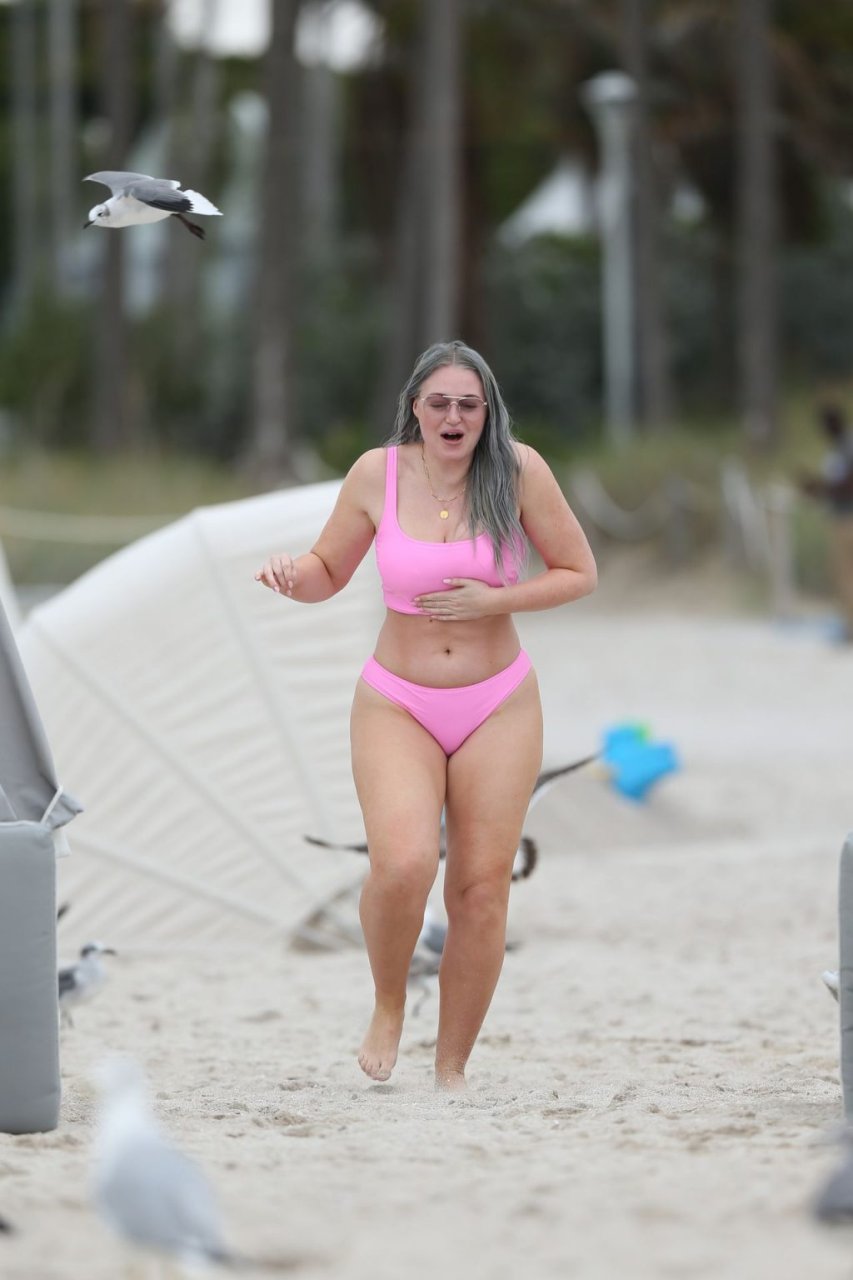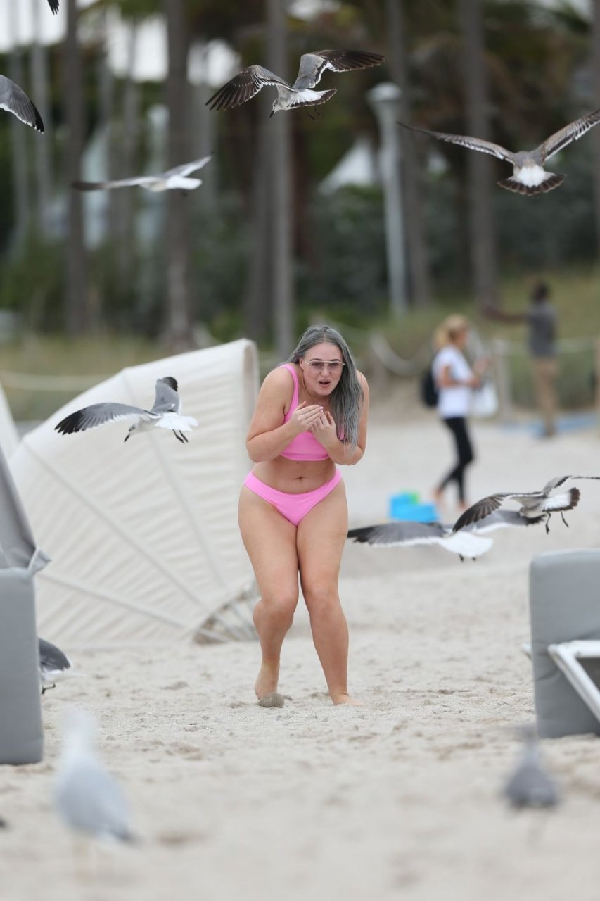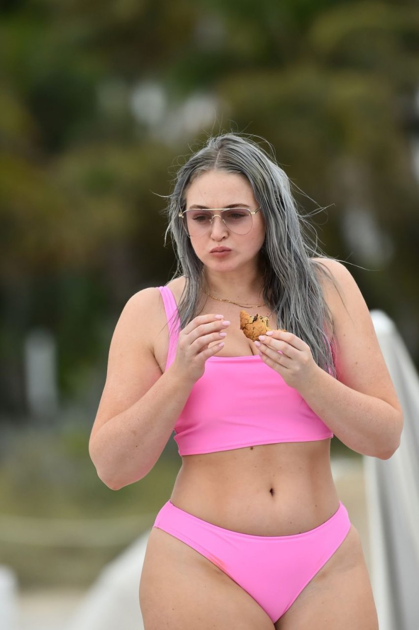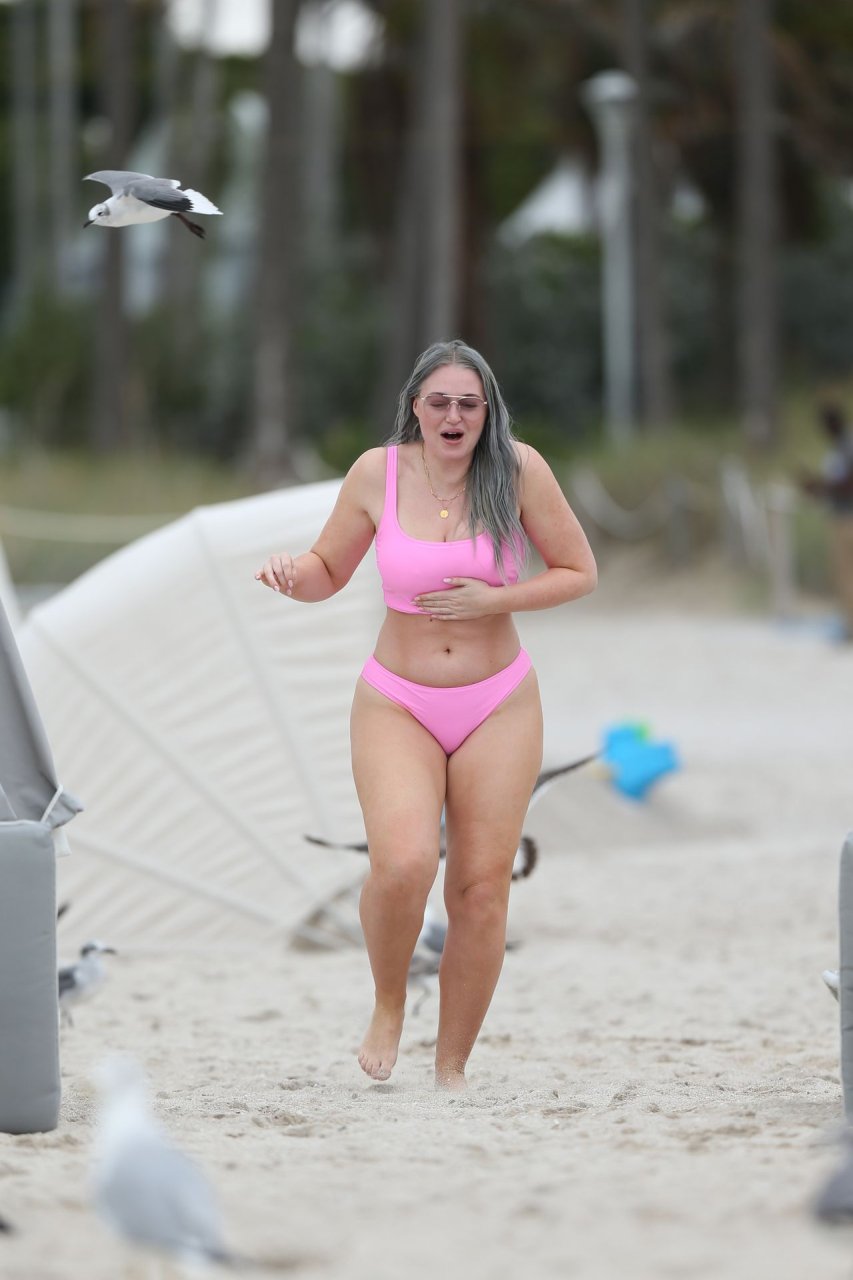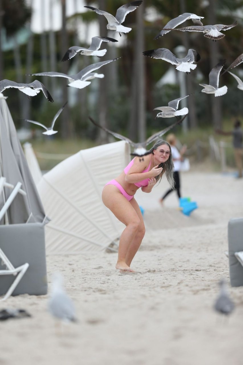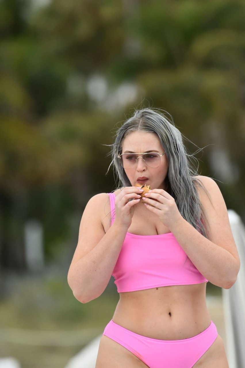 Mostrando sus curvas con un bikini rosa bebé de Aerie y su nuevo cabello plateado, Iskra intentó comer una galleta en la playa, sin saber que enfrentaría la furia de una hambrienta bandada de gaviotas. Afortunadamente, la modelo la comió rápidamente y pudo reírse de ello y disfrutar el resto de su día en la playa.