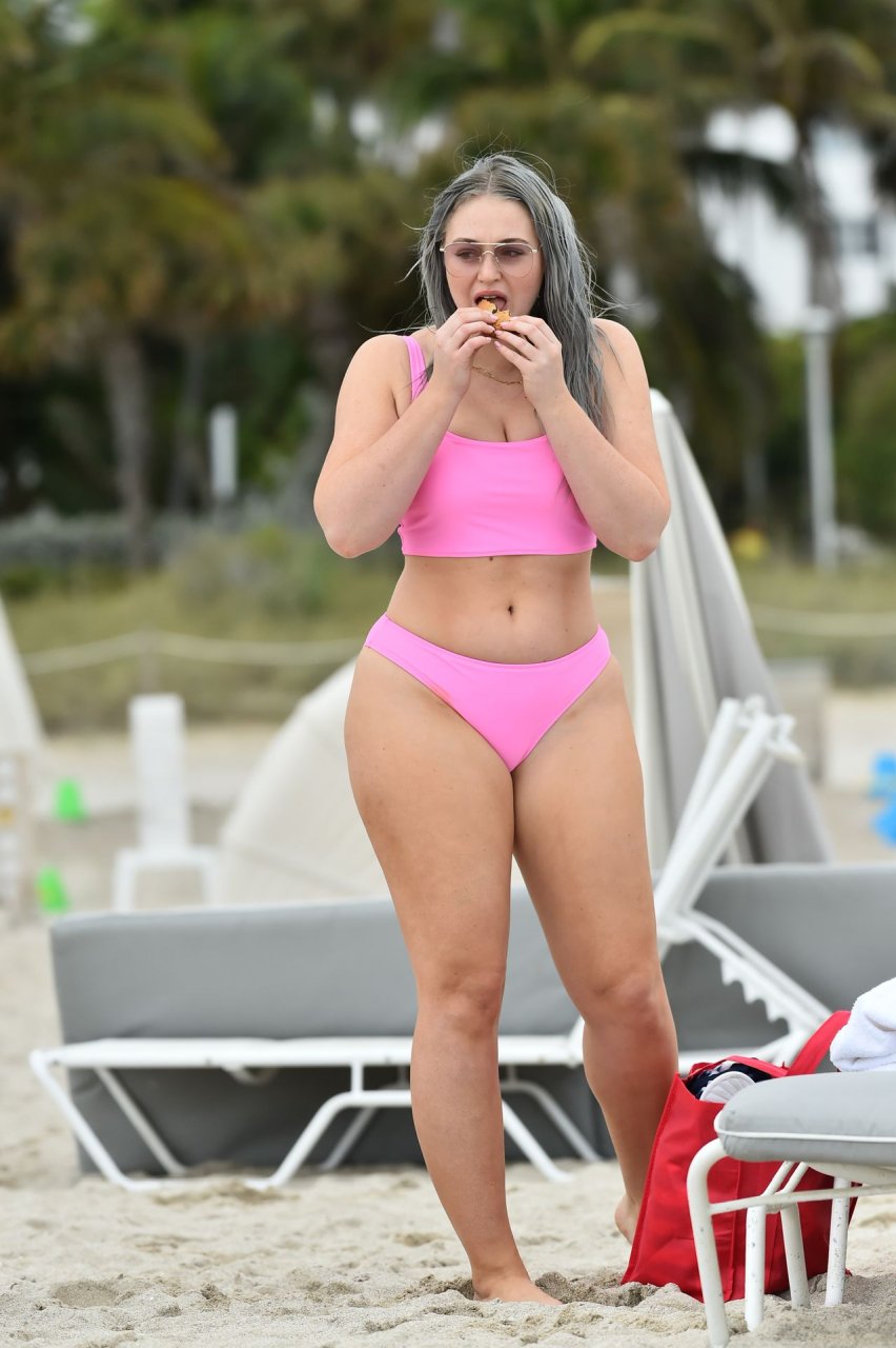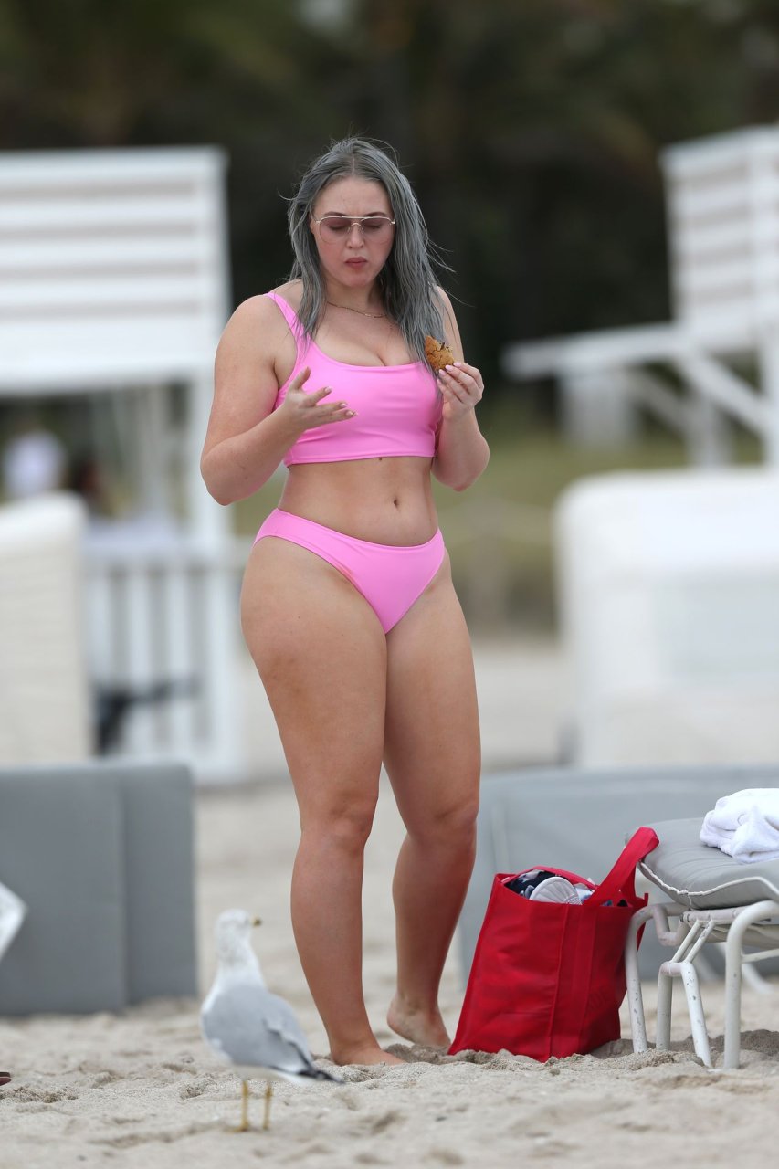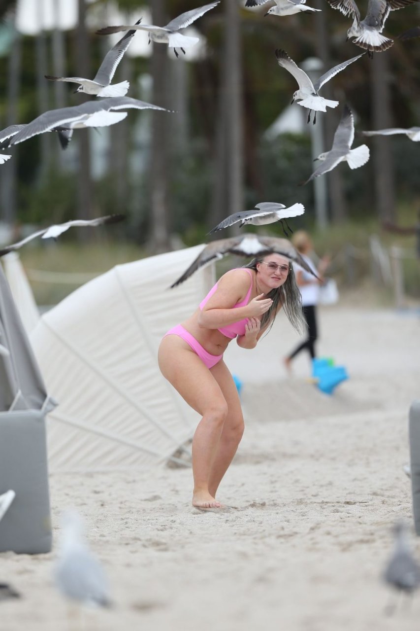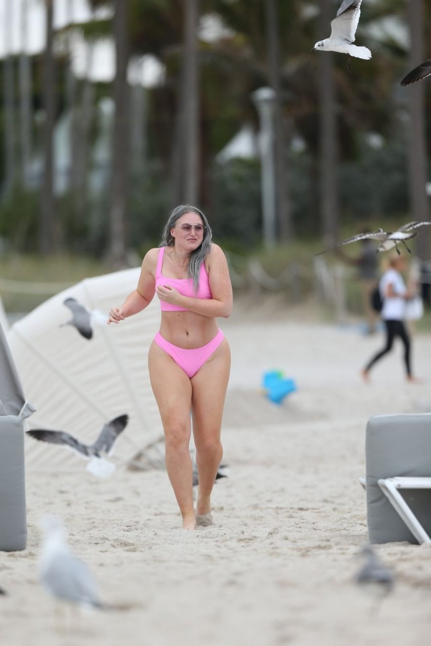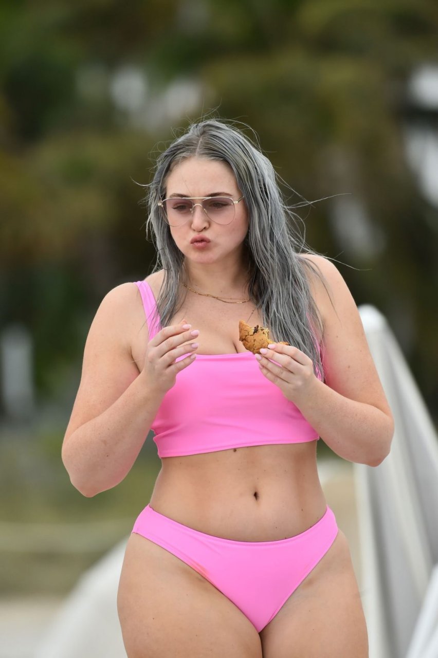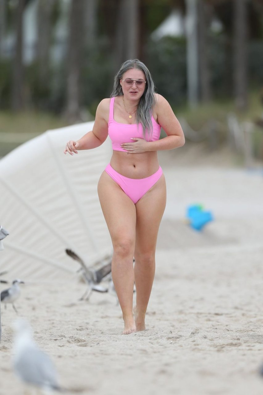 Mostrando sus curvas con un bikini rosa bebé de Aerie y su nuevo cabello plateado, Iskra intentó comer una galleta en la playa, sin saber que enfrentaría la furia de una hambrienta bandada de gaviotas. Afortunadamente, la modelo la comió rápidamente y pudo reírse de ello y disfrutar el resto de su día en la playa.