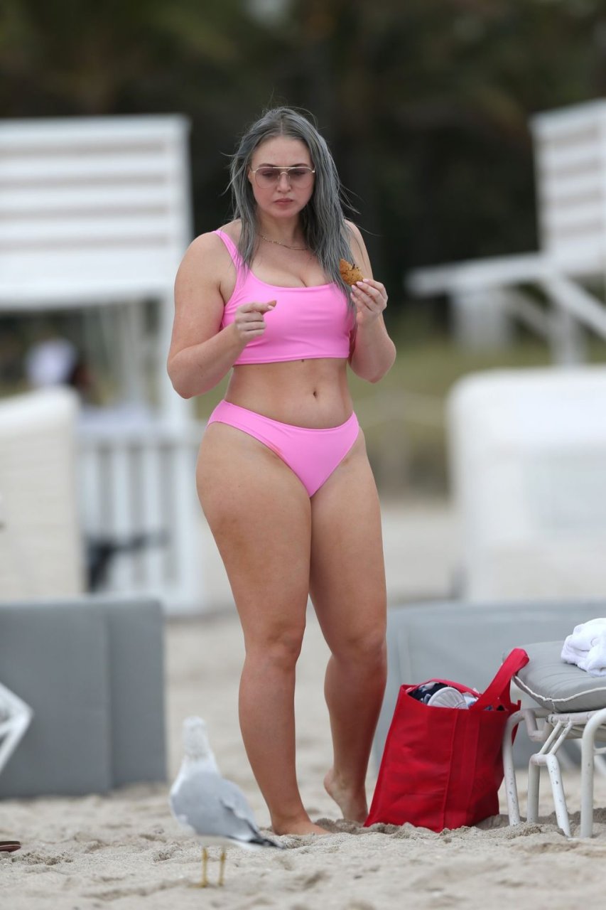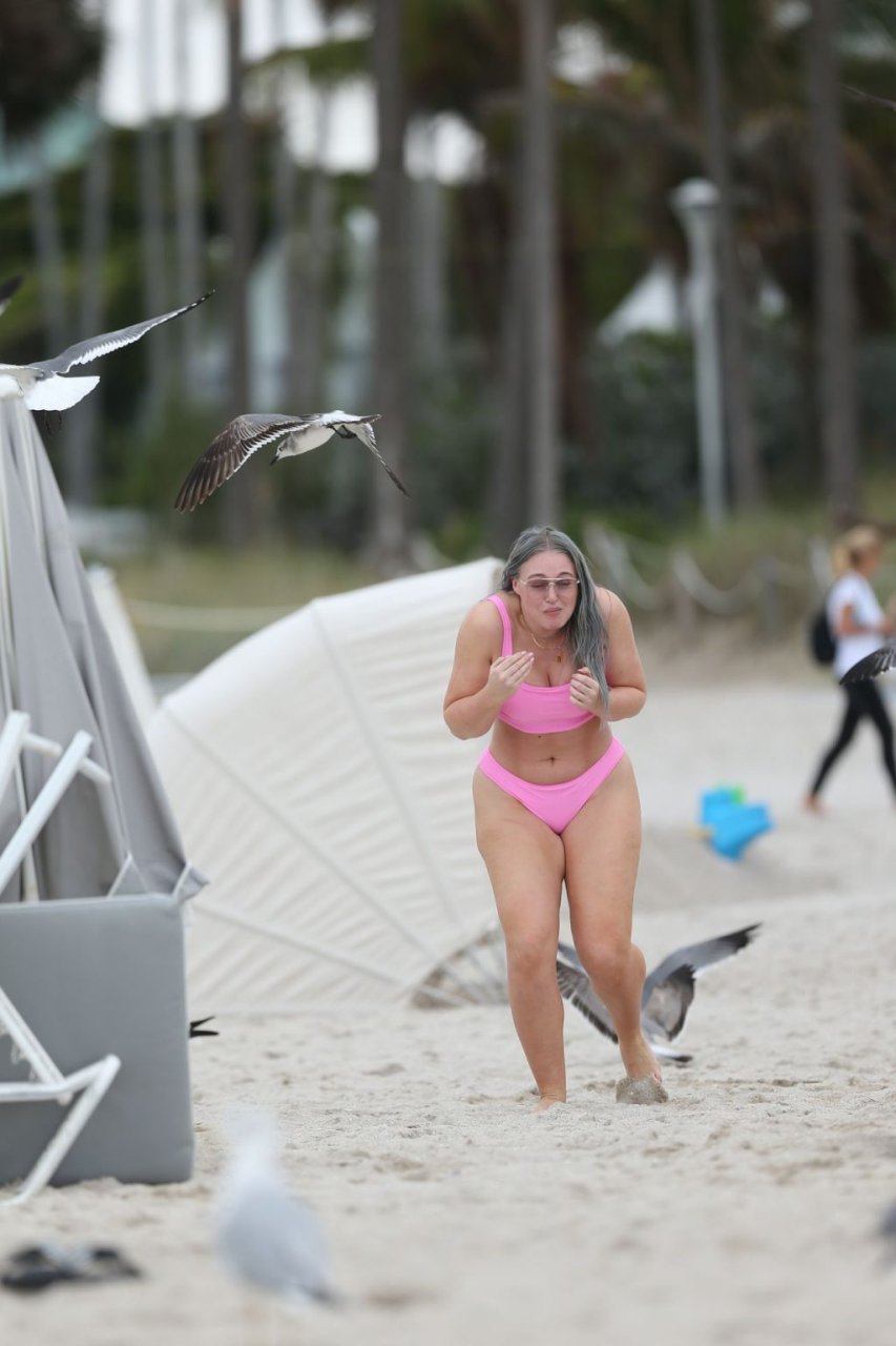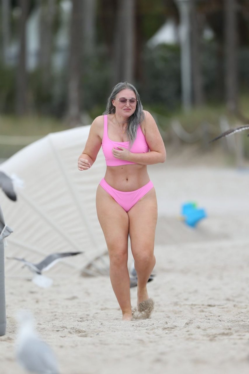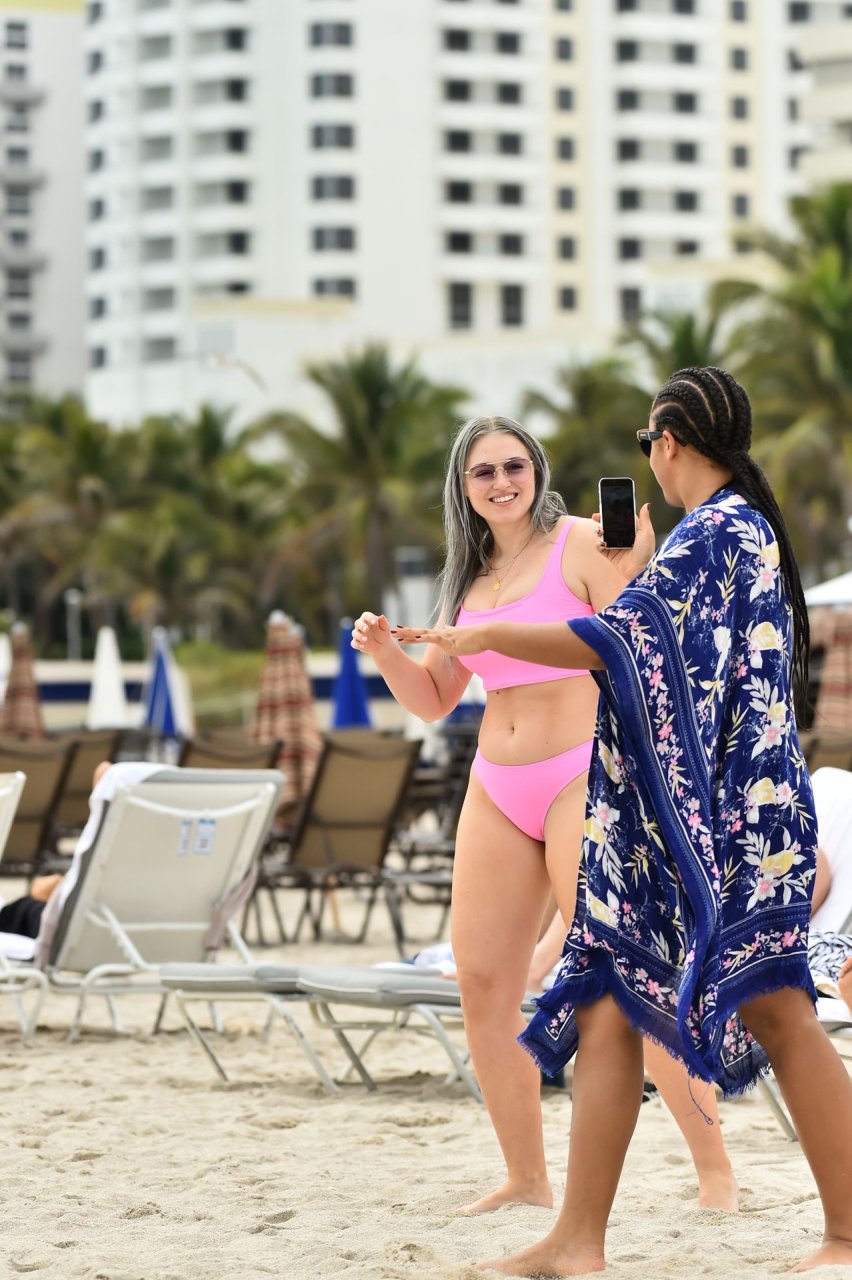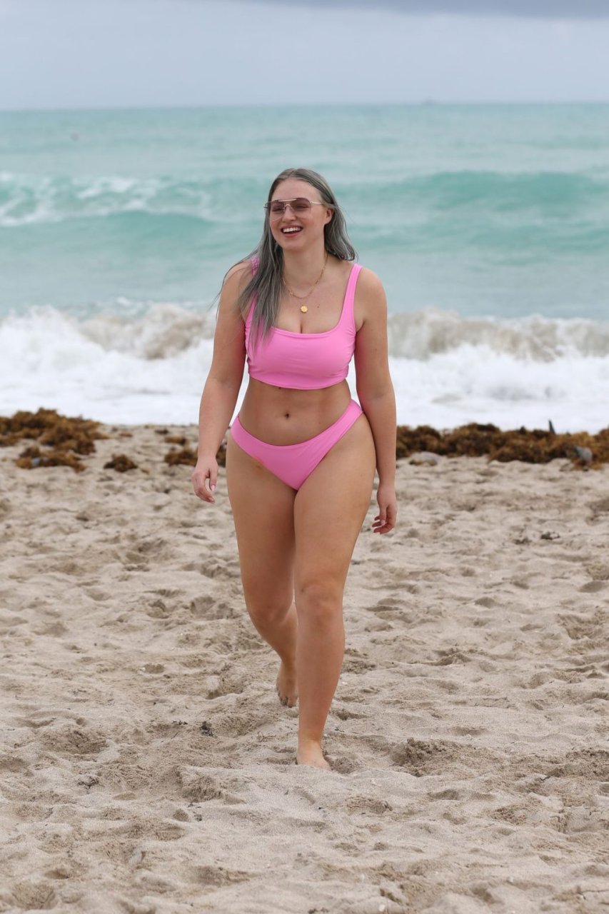 Mostrando sus curvas con un bikini rosa bebé de Aerie y su nuevo cabello plateado, Iskra intentó comer una galleta en la playa, sin saber que enfrentaría la furia de una hambrienta bandada de gaviotas. Afortunadamente, la modelo la comió rápidamente y pudo reírse de ello y disfrutar el resto de su día en la playa.