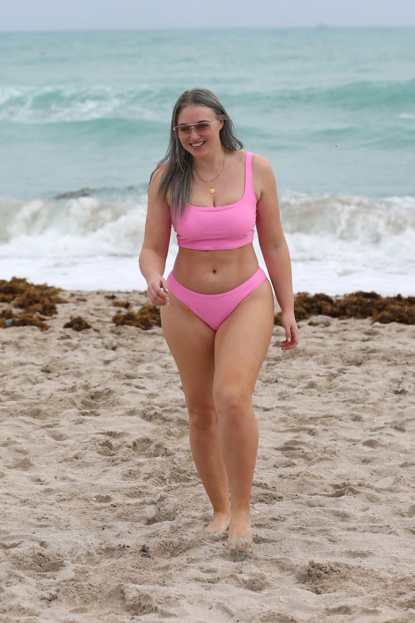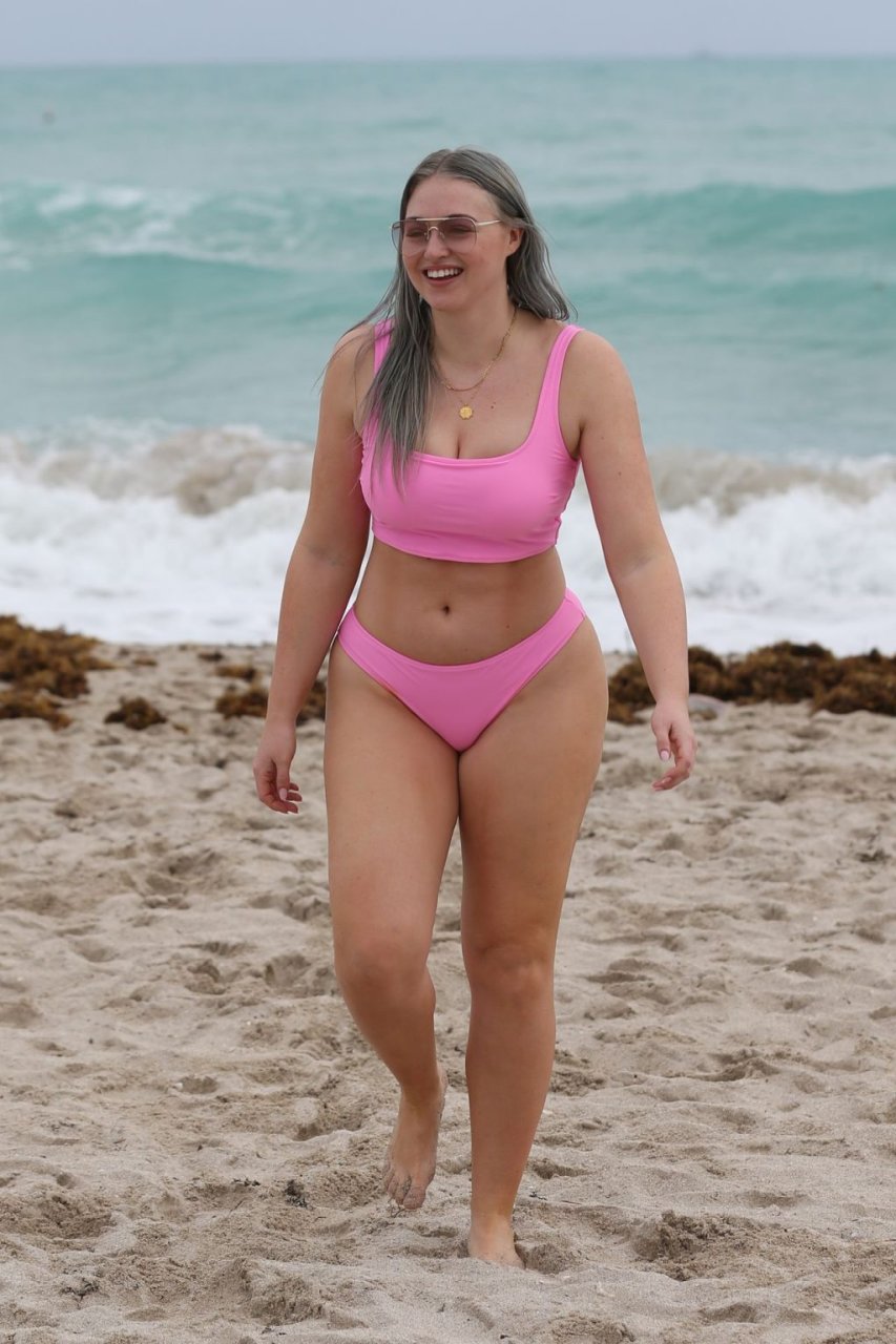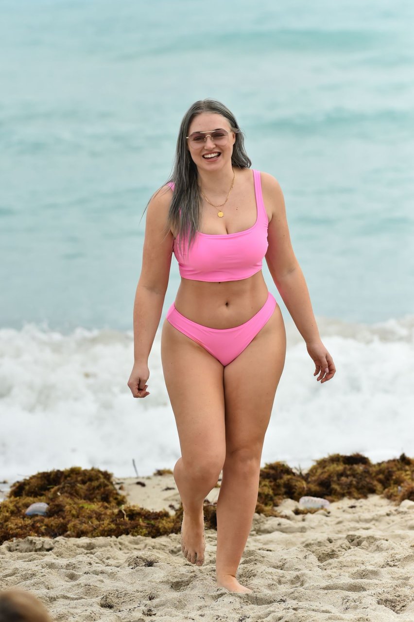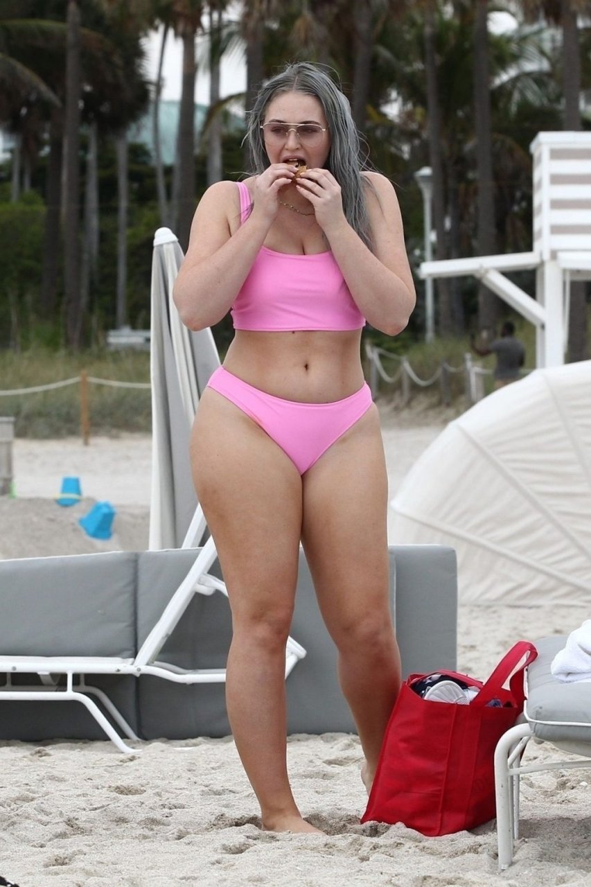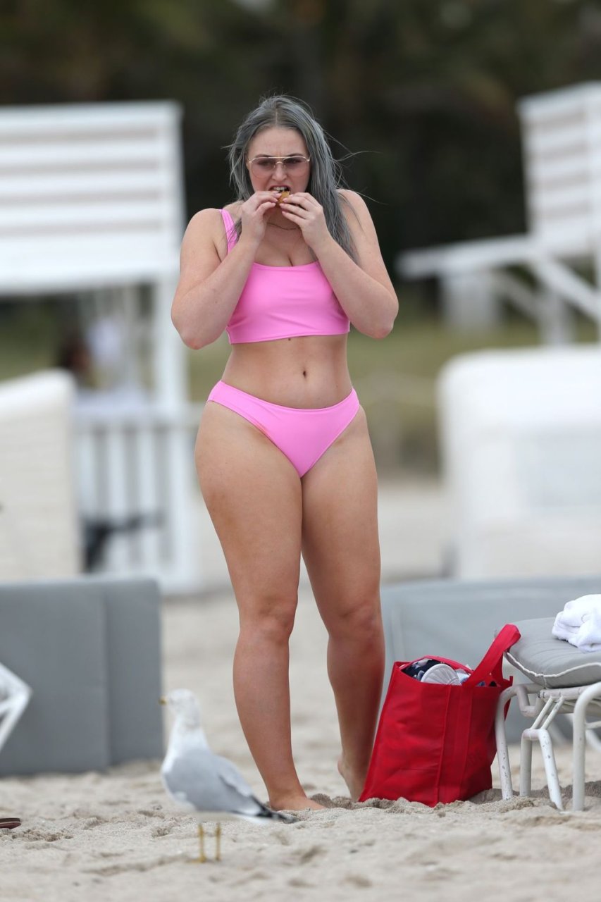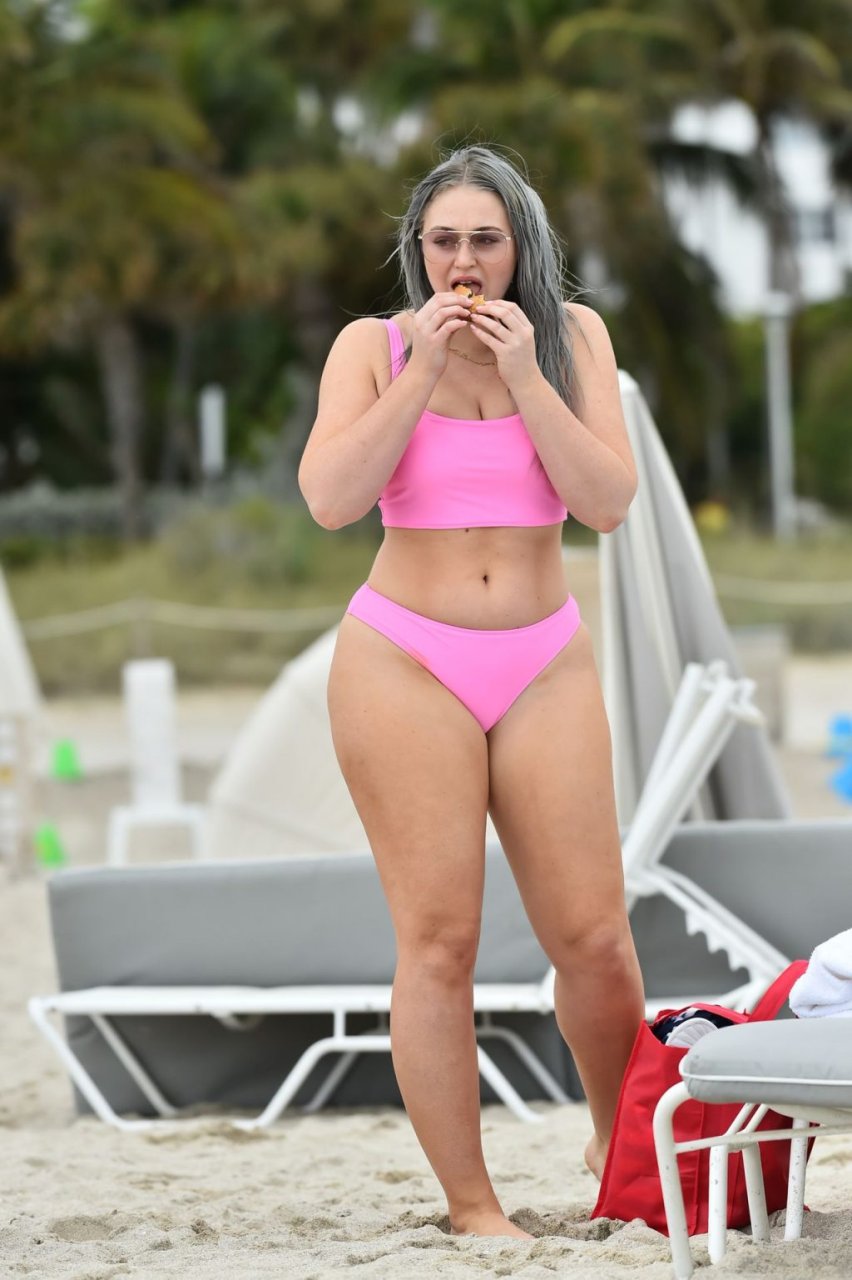 Mostrando sus curvas con un bikini rosa bebé de Aerie y su nuevo cabello plateado, Iskra intentó comer una galleta en la playa, sin saber que enfrentaría la furia de una hambrienta bandada de gaviotas. Afortunadamente, la modelo la comió rápidamente y pudo reírse de ello y disfrutar el resto de su día en la playa.