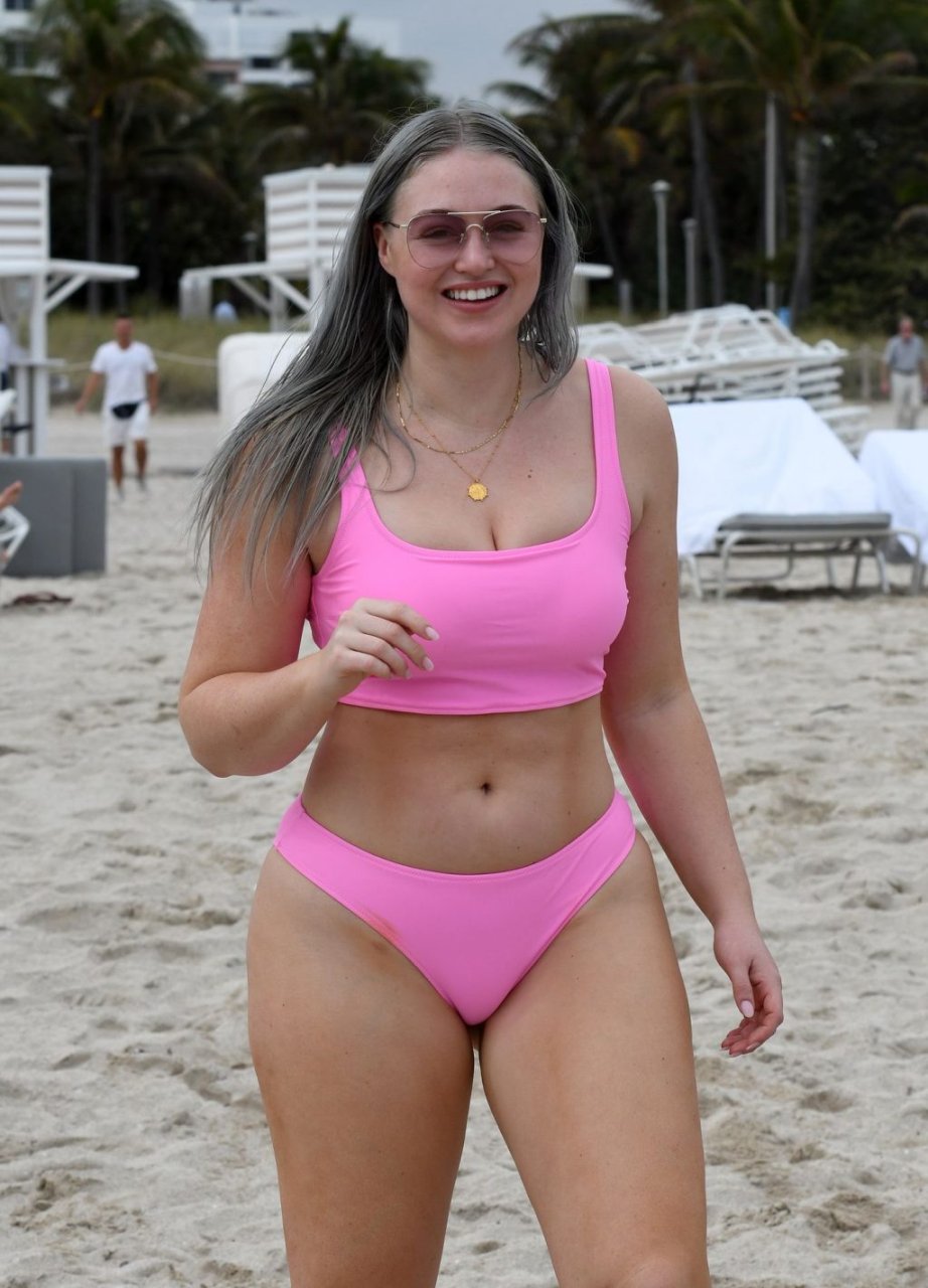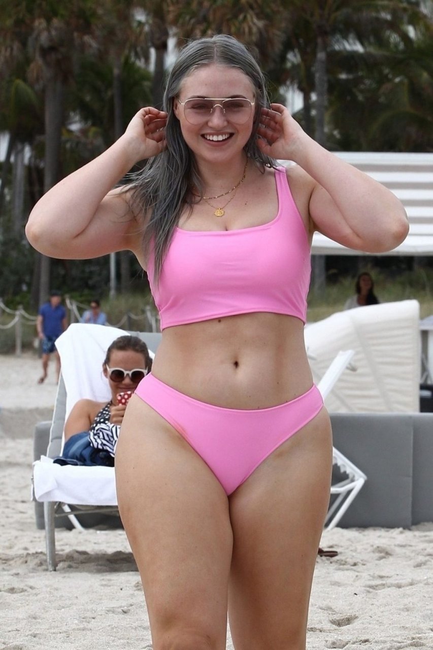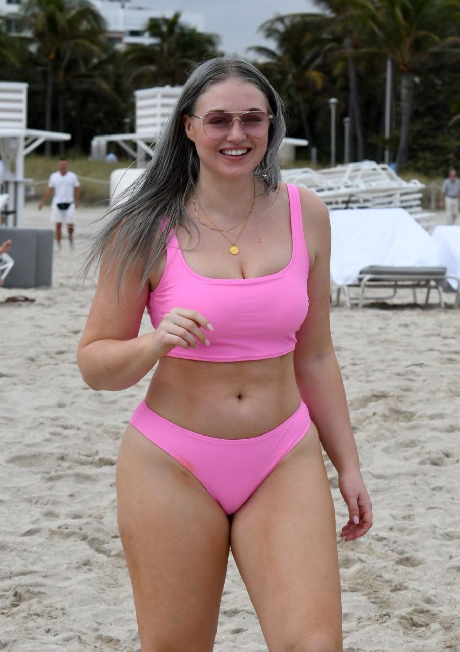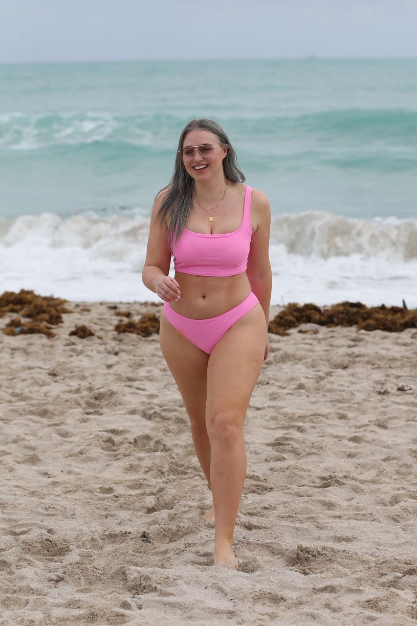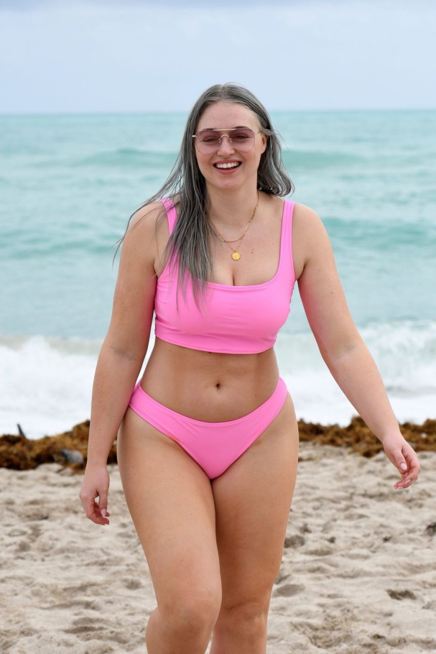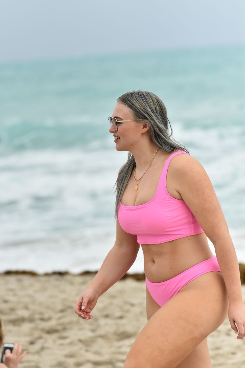 Mostrando sus curvas con un bikini rosa bebé de Aerie y su nuevo cabello plateado, Iskra intentó comer una galleta en la playa, sin saber que enfrentaría la furia de una hambrienta bandada de gaviotas. Afortunadamente, la modelo la comió rápidamente y pudo reírse de ello y disfrutar el resto de su día en la playa.