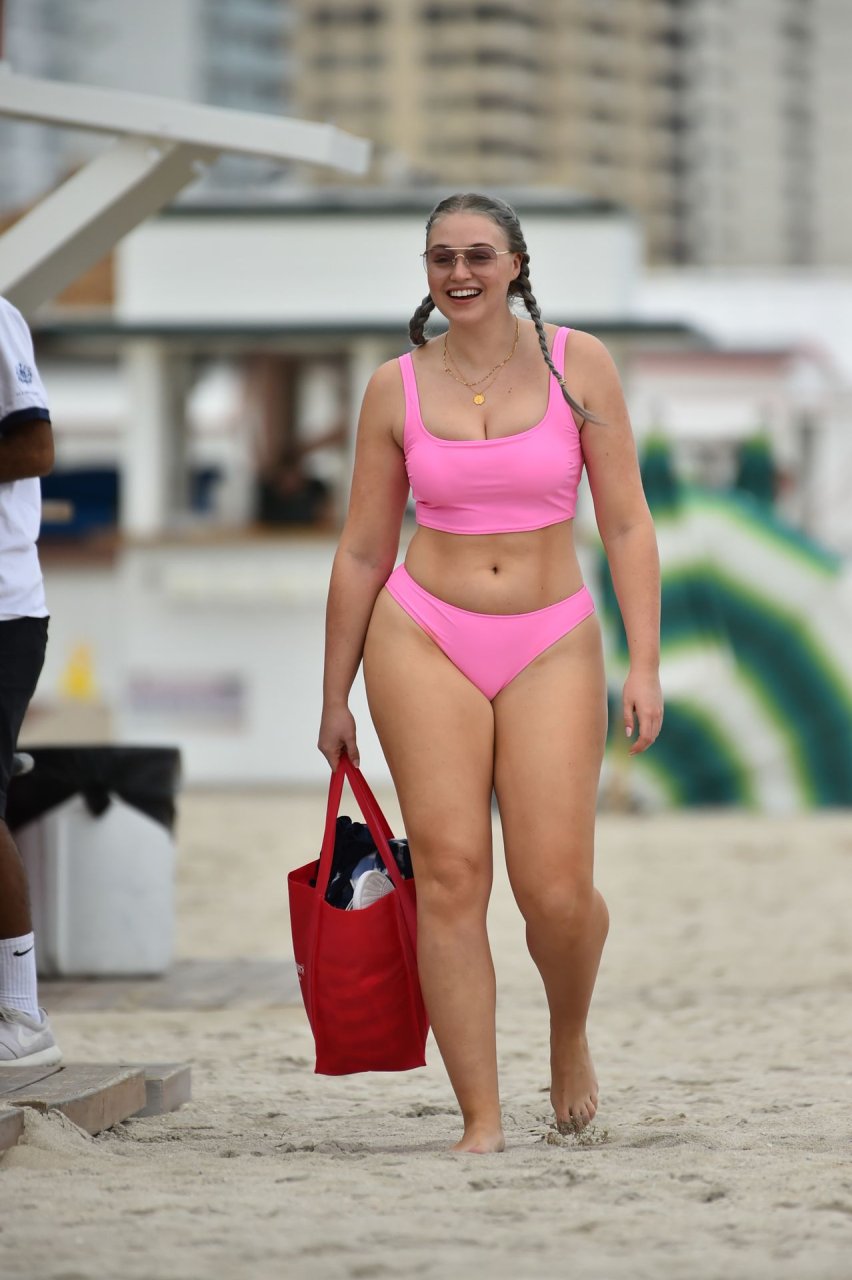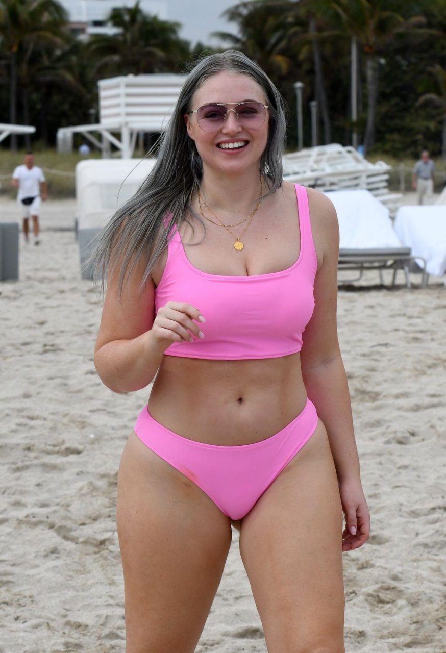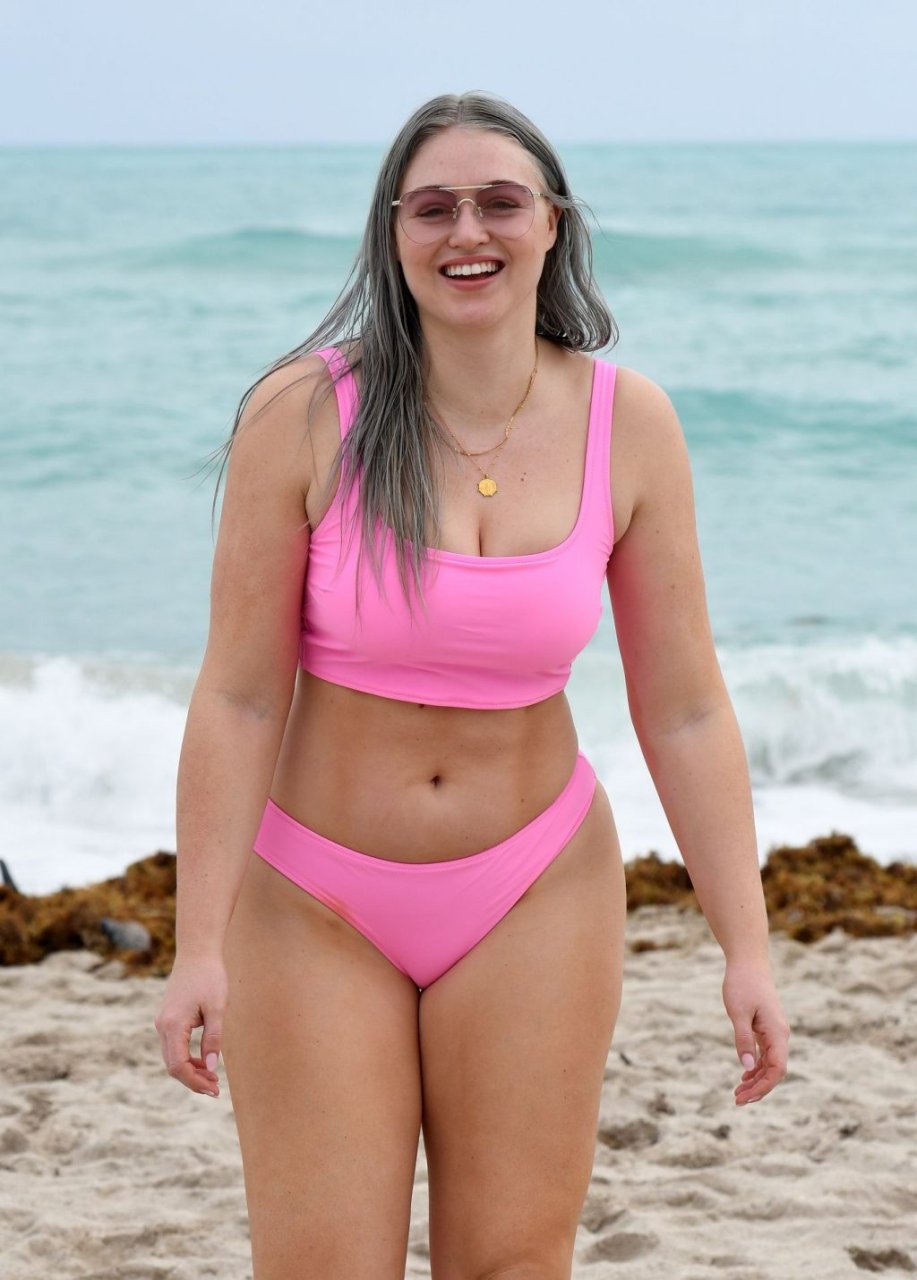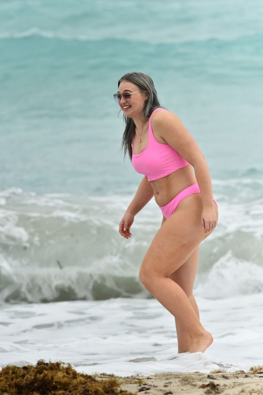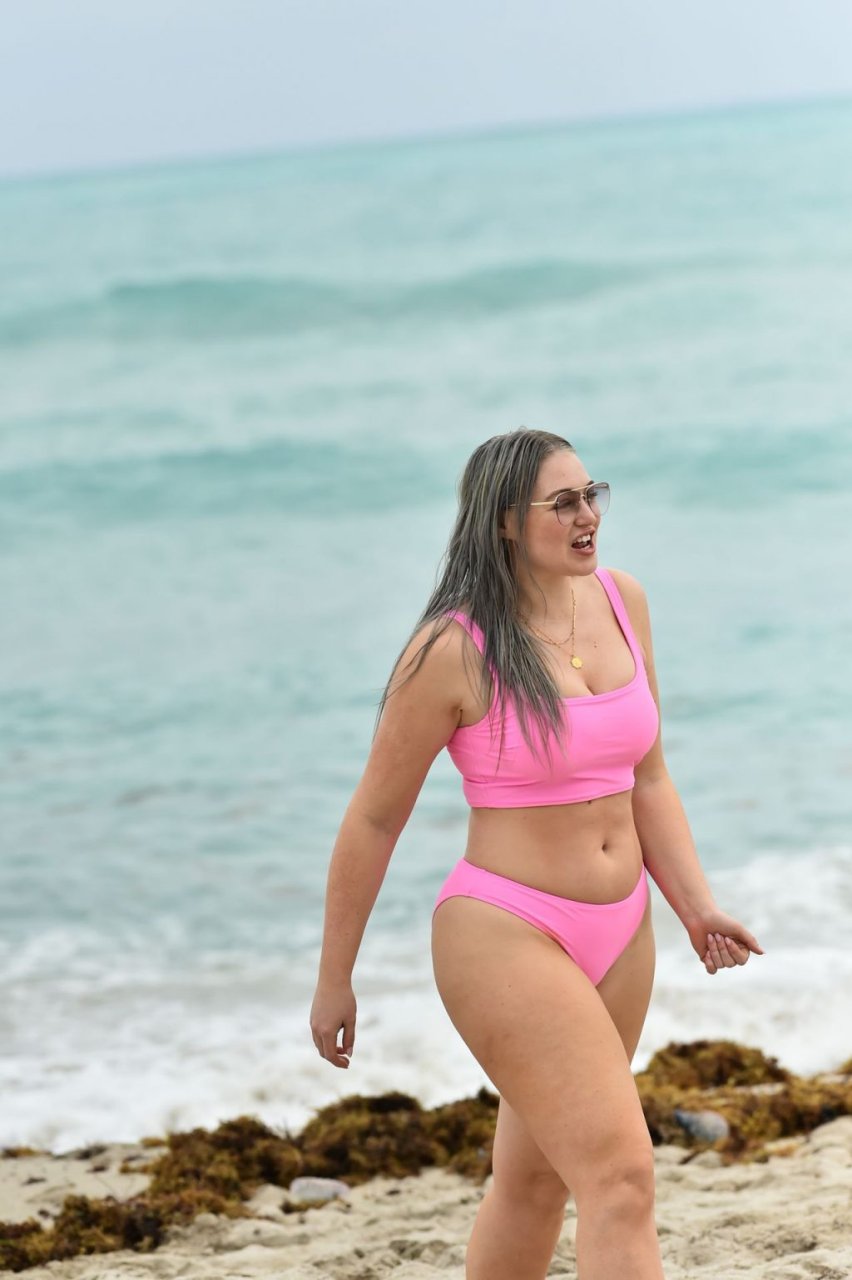 Mostrando sus curvas con un bikini rosa bebé de Aerie y su nuevo cabello plateado, Iskra intentó comer una galleta en la playa, sin saber que enfrentaría la furia de una hambrienta bandada de gaviotas. Afortunadamente, la modelo la comió rápidamente y pudo reírse de ello y disfrutar el resto de su día en la playa.